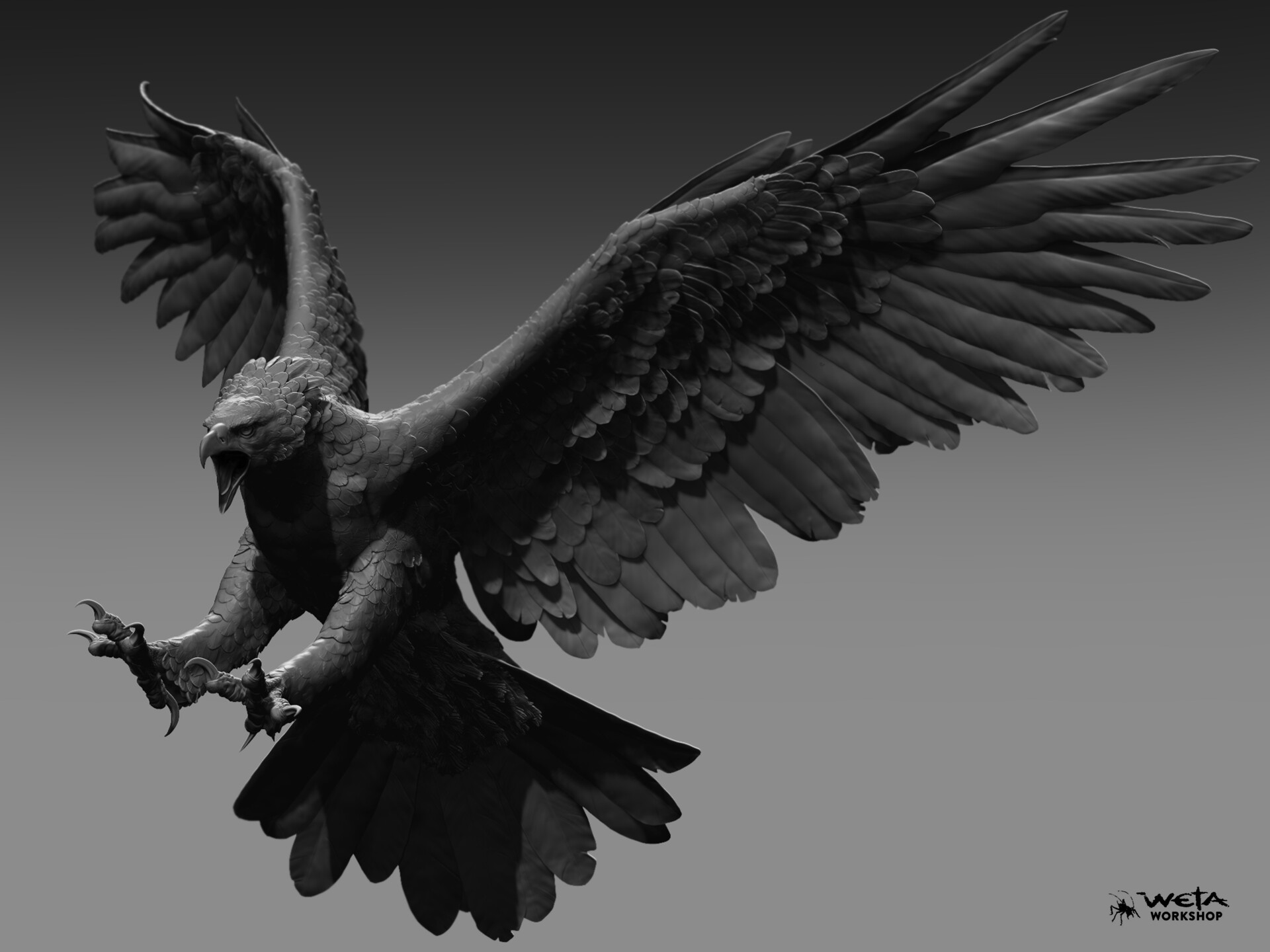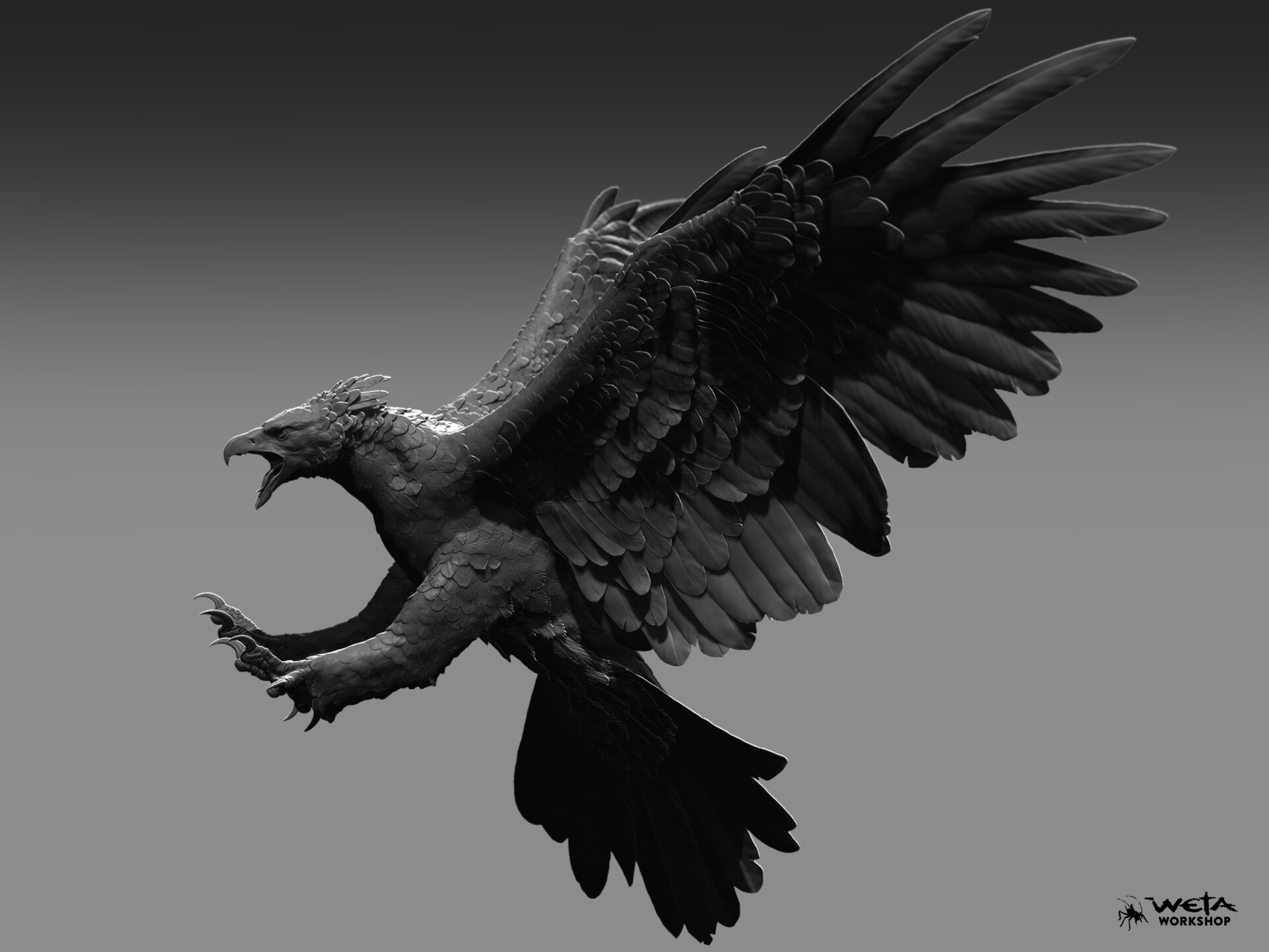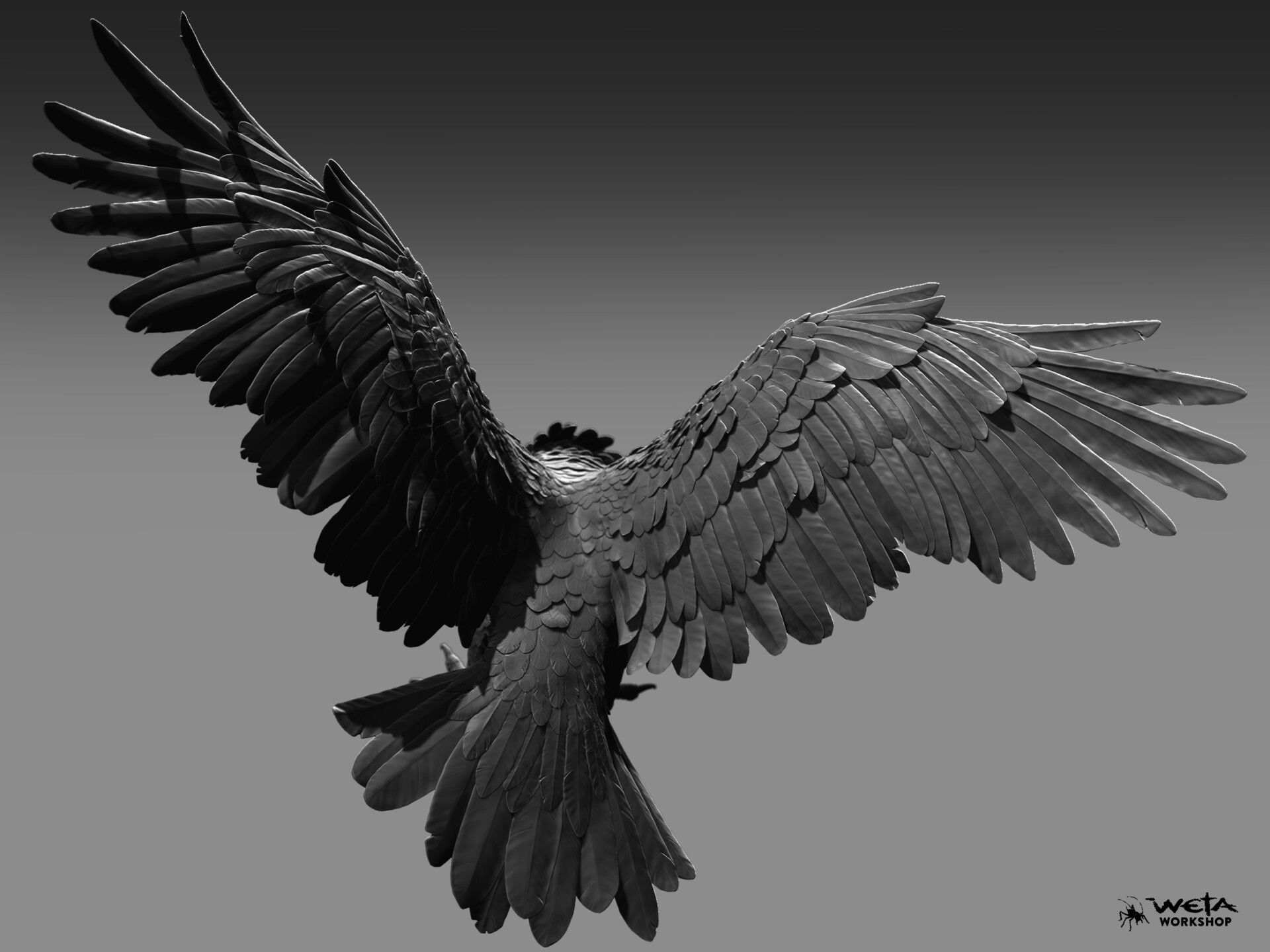 Here are some quick ZBrush renders of the Haast Eagle, so you can see some of the details. The project was for a private commission which was sculpted at Weta Workshop. The end result was a large bronze sculpture of a Haast Eagle attacking a Giant Moa. Tarn Greenlaw and Ryan Serrano worked together to sculpt the Giant Moa.