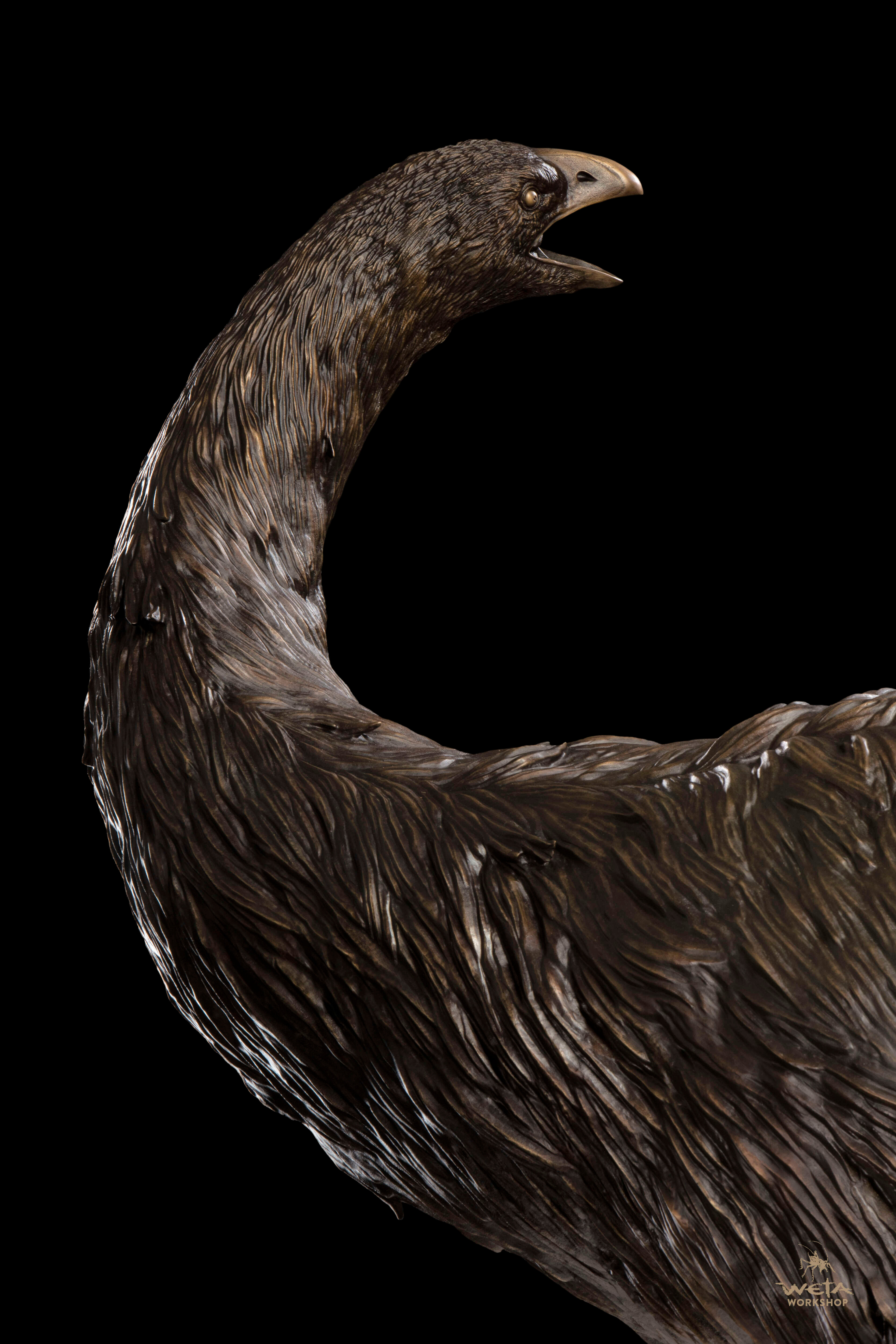 This beautiful piece of art was created through collaboration between Weta's sculpting, 3D, and manufacturing crews. This was one of the first jobs I had the pleasure to work on at Weta, I spent months sculpting the Moa and prepping the sculpture for print. I worked under the direction and guidance of Sculptor Daniel Cockersell and worked with other 3D artists (Ryan Serrano and James Doyle) to produce a digital model of the sculpt. The birds were then 3D printed in wax and cast in bronze. The workshop crew assembled the giant structure around a steel armature before hand-tooling and finishing the surface.