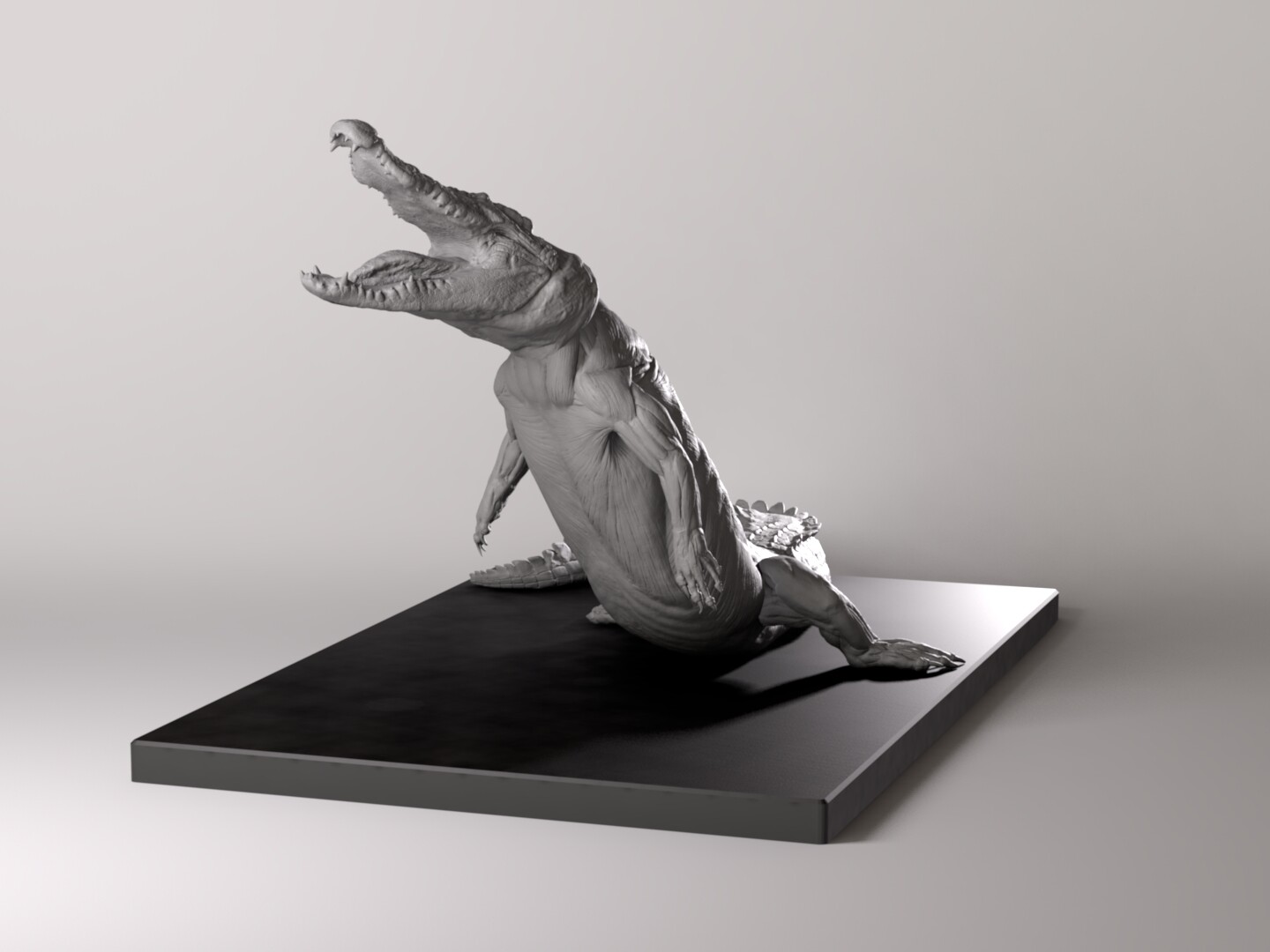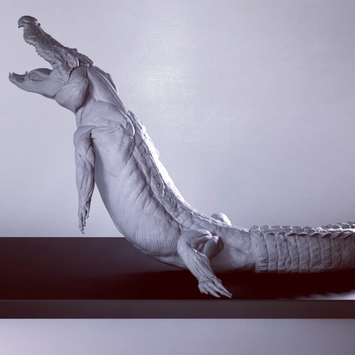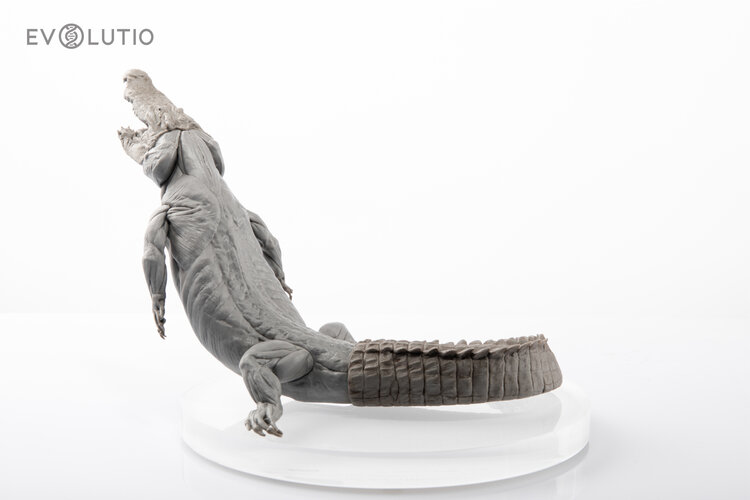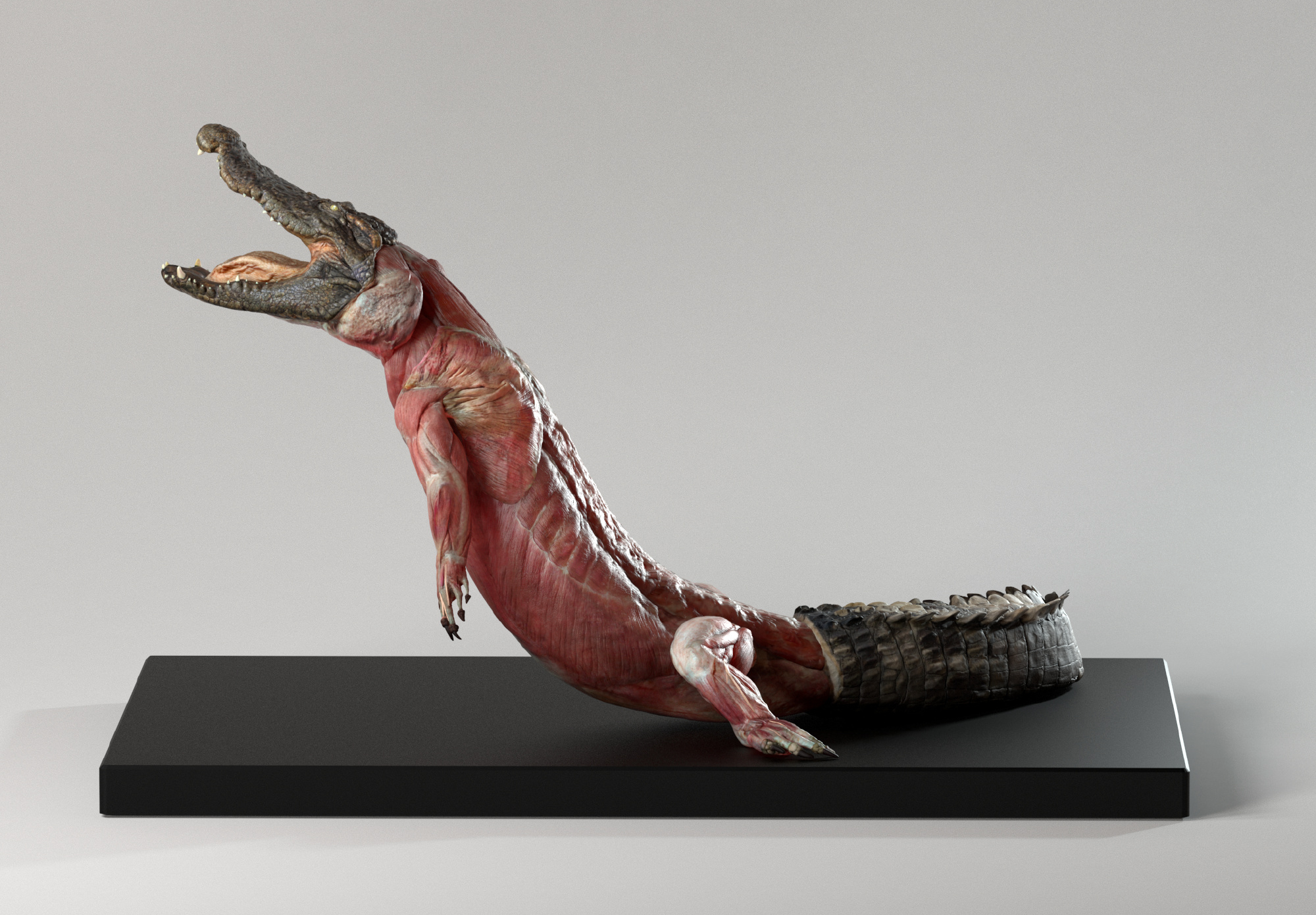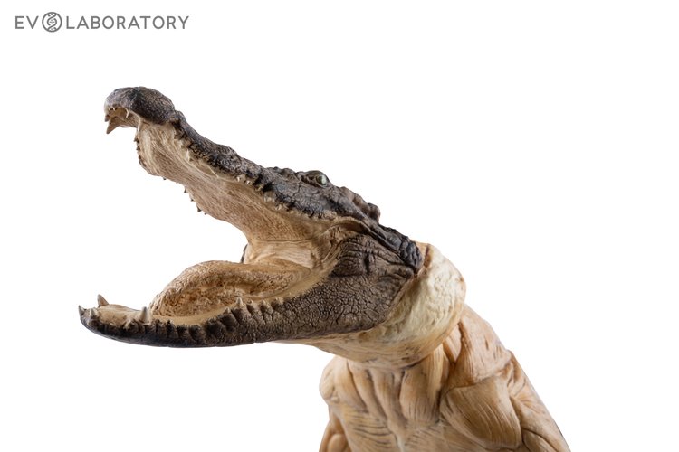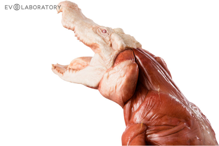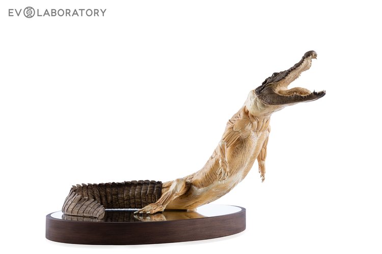 Recreated at 1:8 life-size, from an actual crocodile, this desktop sized model, shows different anatomy systems, proportions, superficial & deeper anatomy & influence of underlying muscle & bone. Cast in neutral grey it is ideal for display of form & ideally suited for artistic reference, educational & student purposes. Includes high quality base & stand.