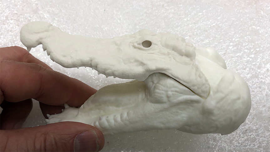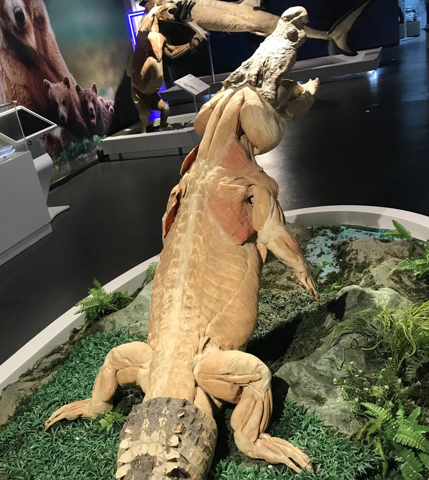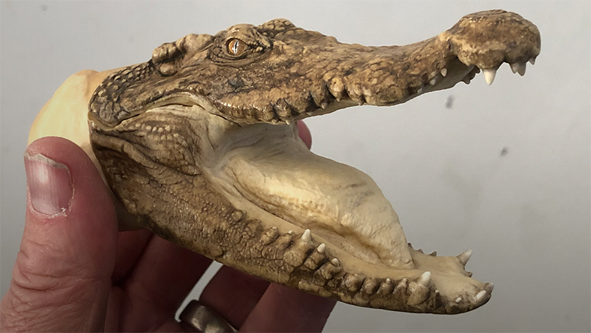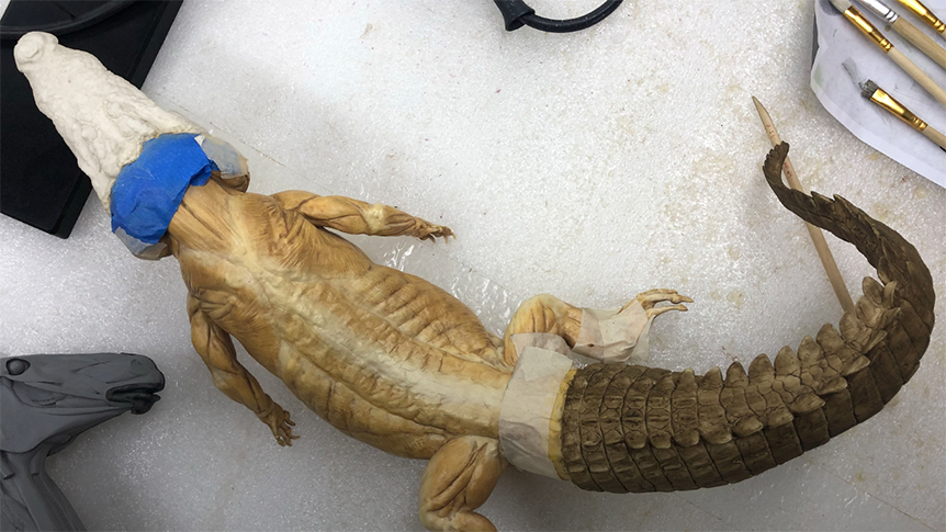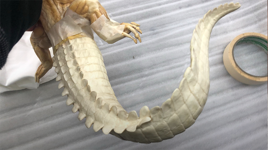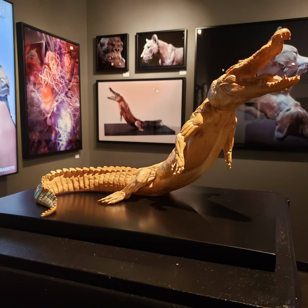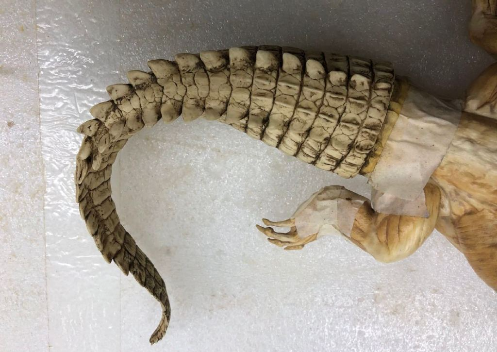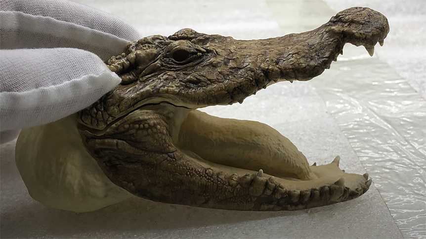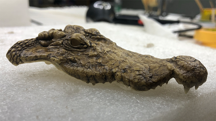 Recreated at 1:8 life-size, from an actual crocodile, this desktop sized model, shows different anatomy systems, proportions, superficial & deeper anatomy & influence of underlying muscle & bone. Cast in neutral grey it is ideal for display of form & ideally suited for artistic reference, educational & student purposes. Includes high quality base & stand.