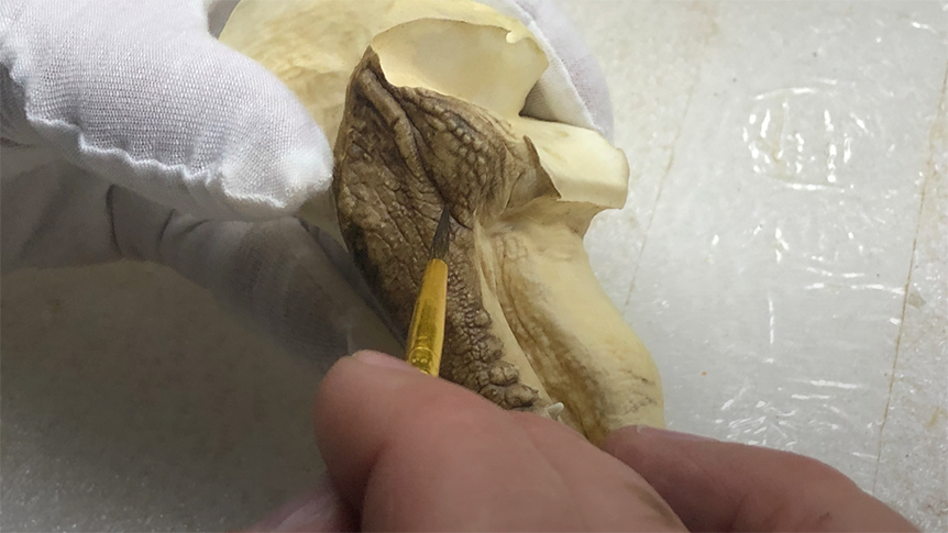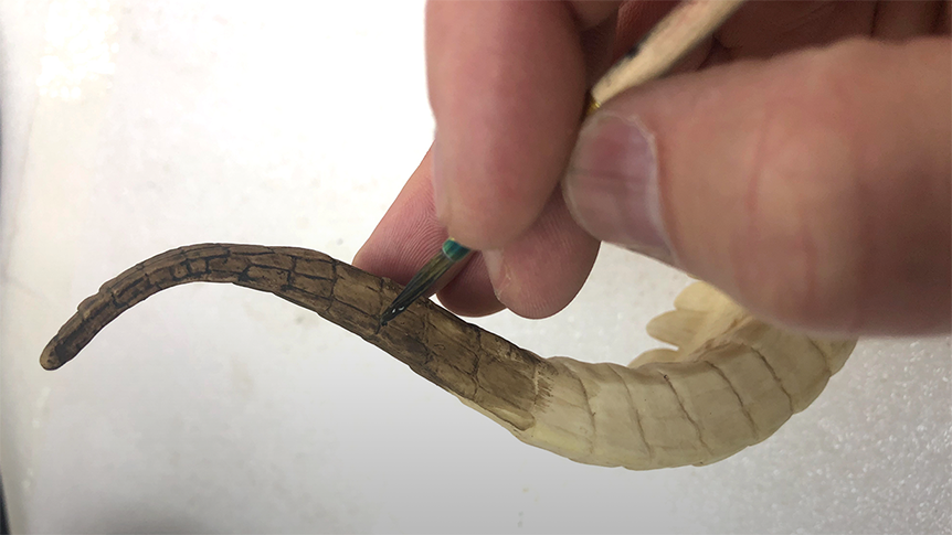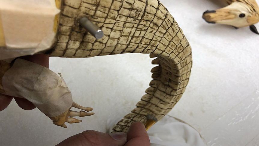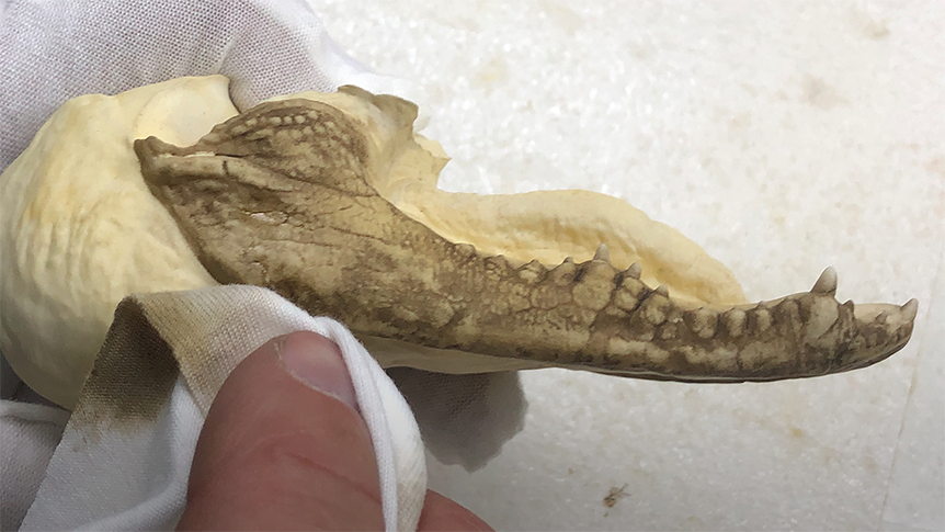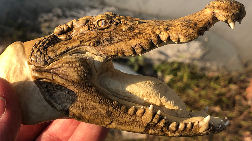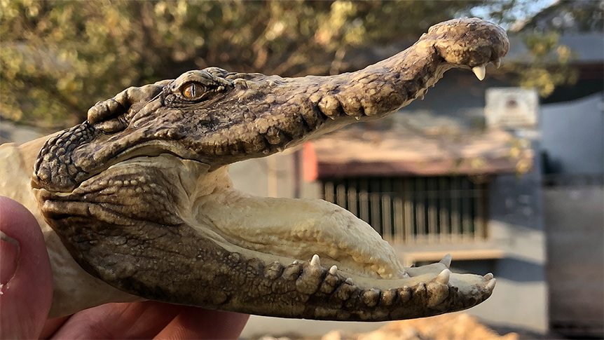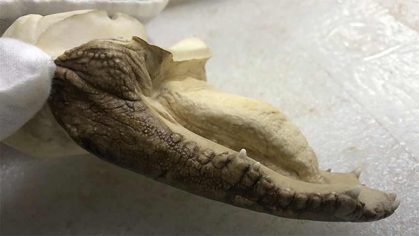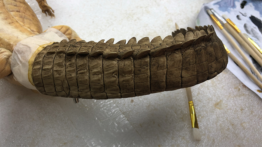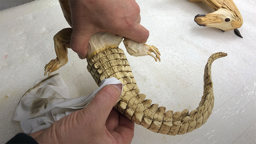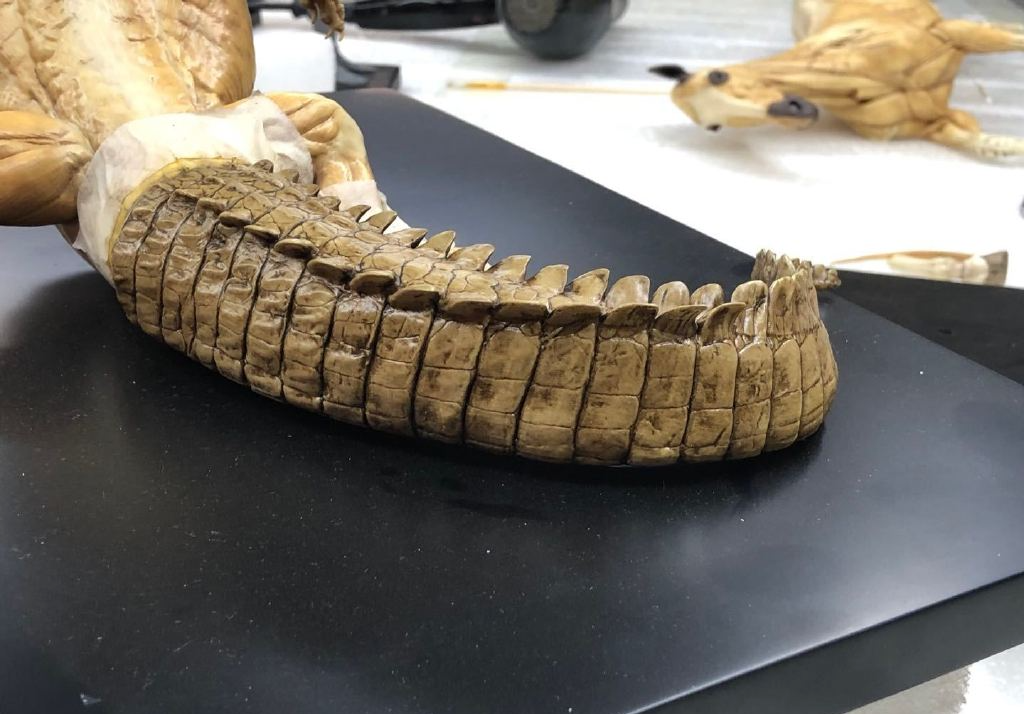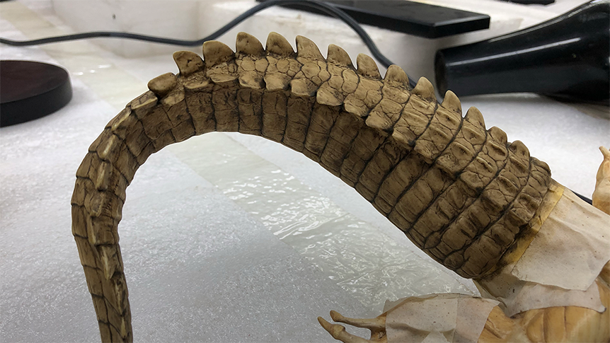 Recreated at 1:8 life-size, from an actual crocodile, this desktop sized model, shows different anatomy systems, proportions, superficial & deeper anatomy & influence of underlying muscle & bone. Cast in neutral grey it is ideal for display of form & ideally suited for artistic reference, educational & student purposes. Includes high quality base & stand.