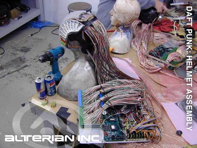 As far as the techinical process of creating the helmets goes, this short video with Alterian's Tony Gardner is pretty illuminating. As Gardner explains, compact light-up displays are much more common now, but in 2001, when Daft Punk started wearing the helms, the costumes were cutting edge.