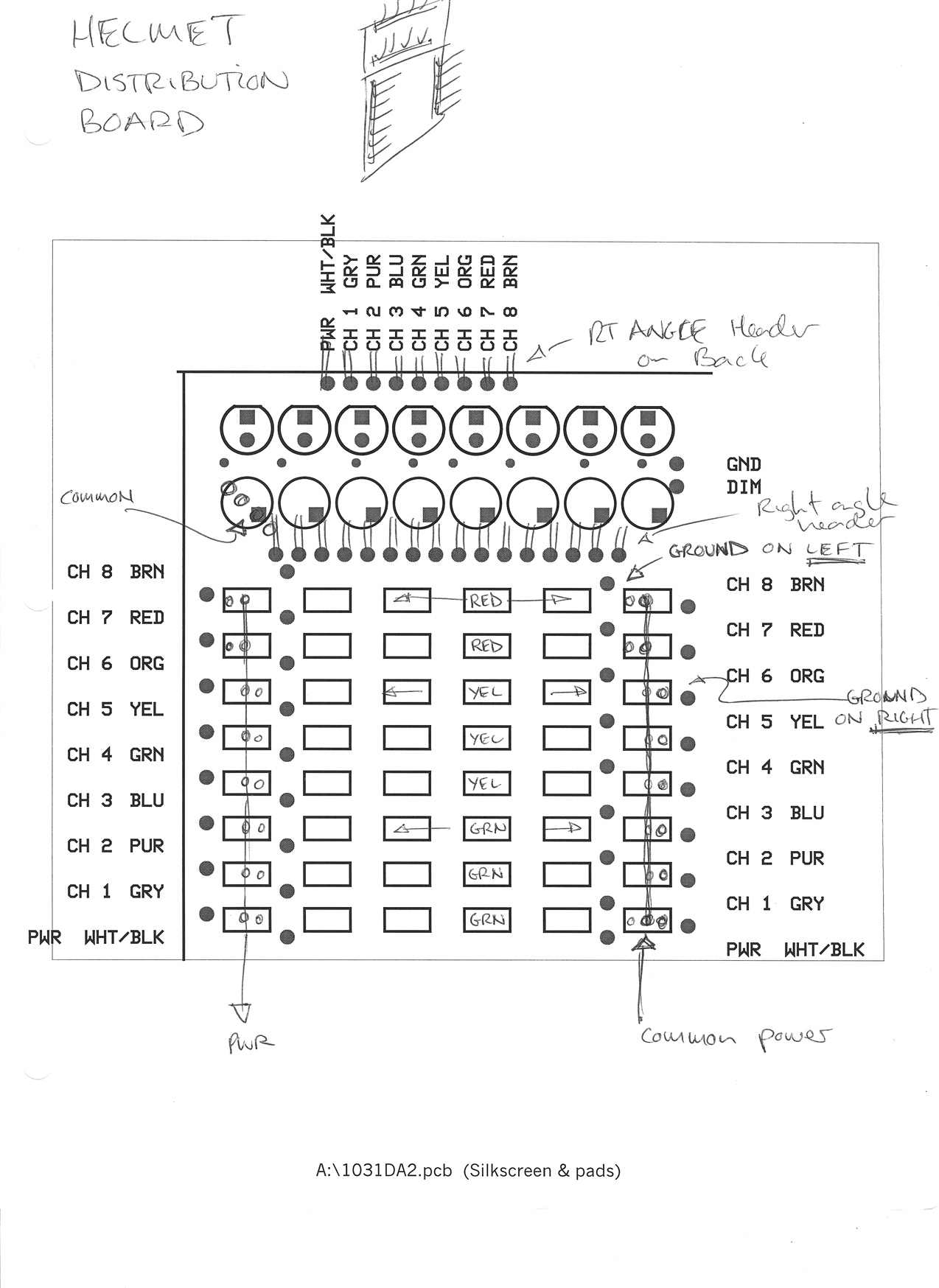 According to these schematics, the LED lights connected to the helmets are pretty complicated rat's nest of wiring.