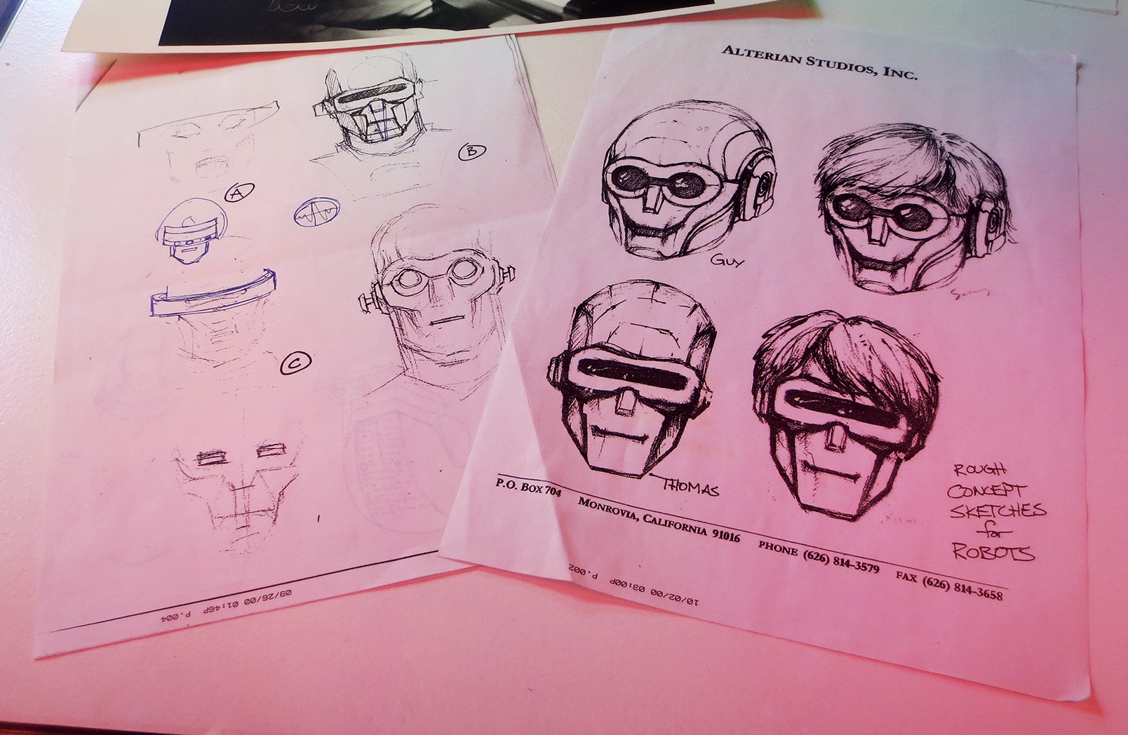 : These are initial sketches from designers, Alex and Martin, showing various helmet concepts before they were created