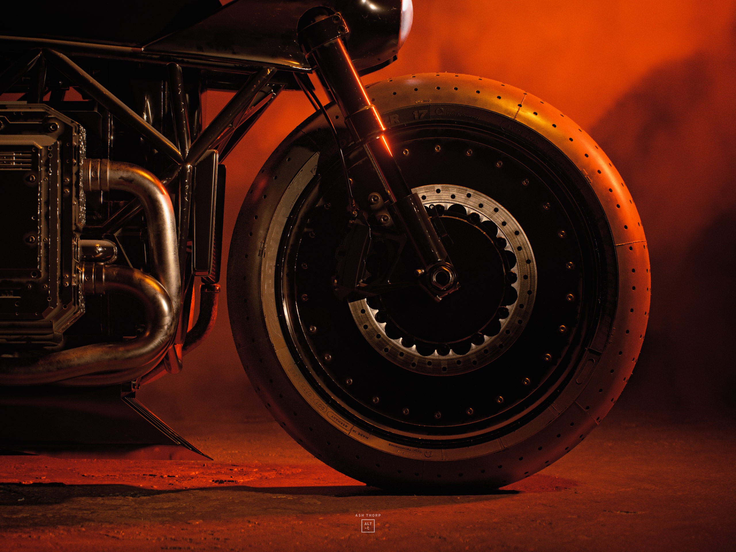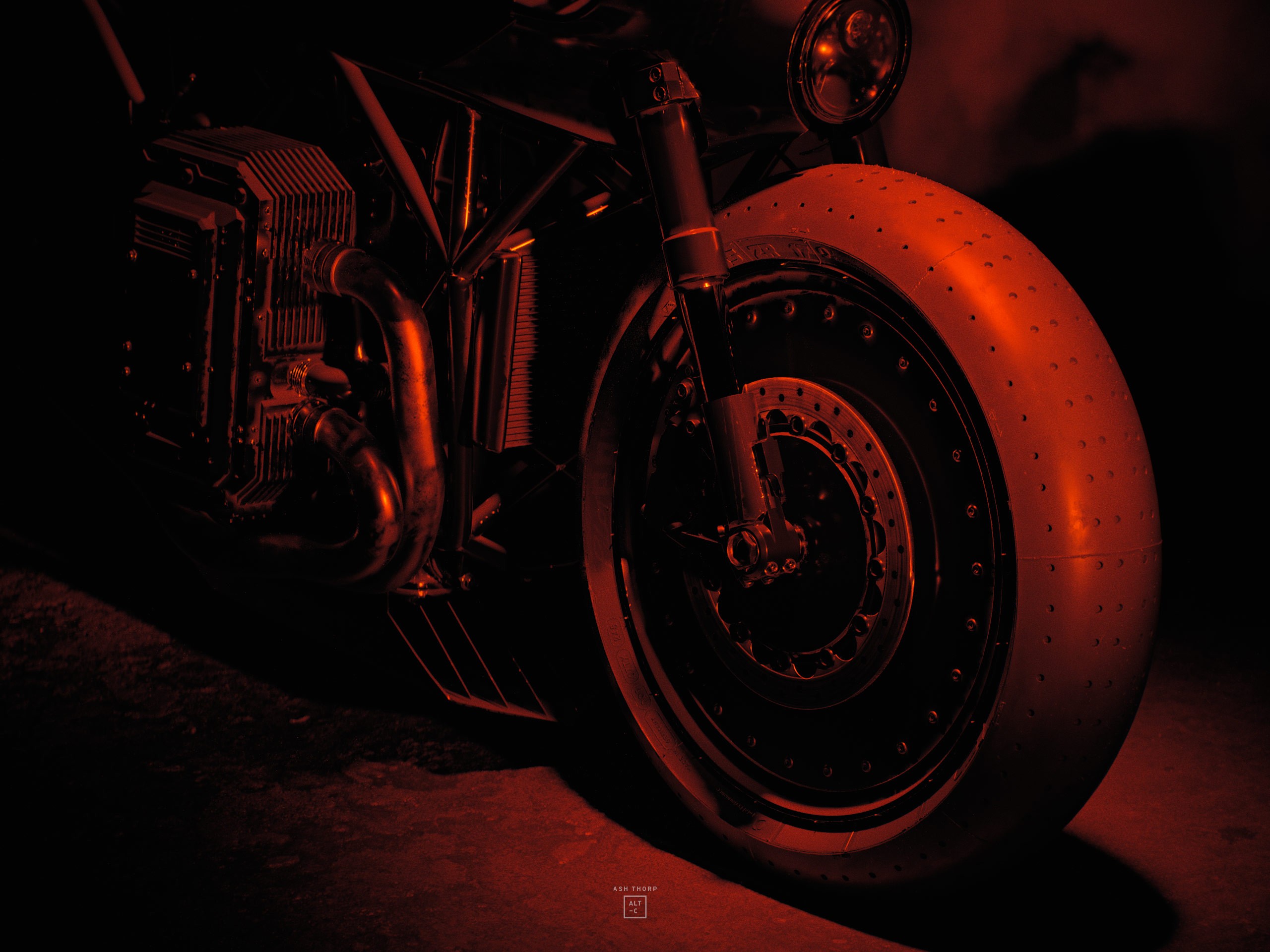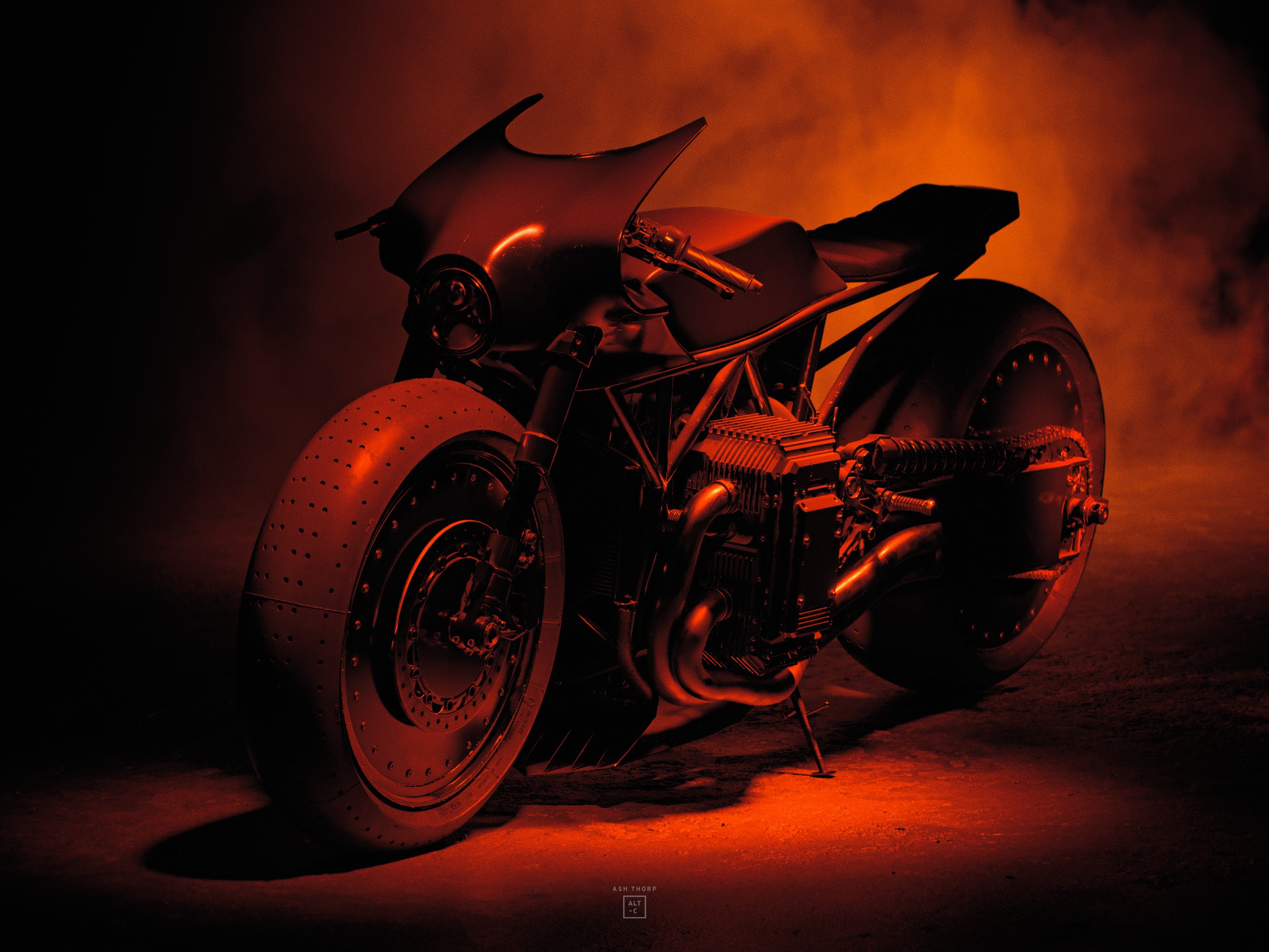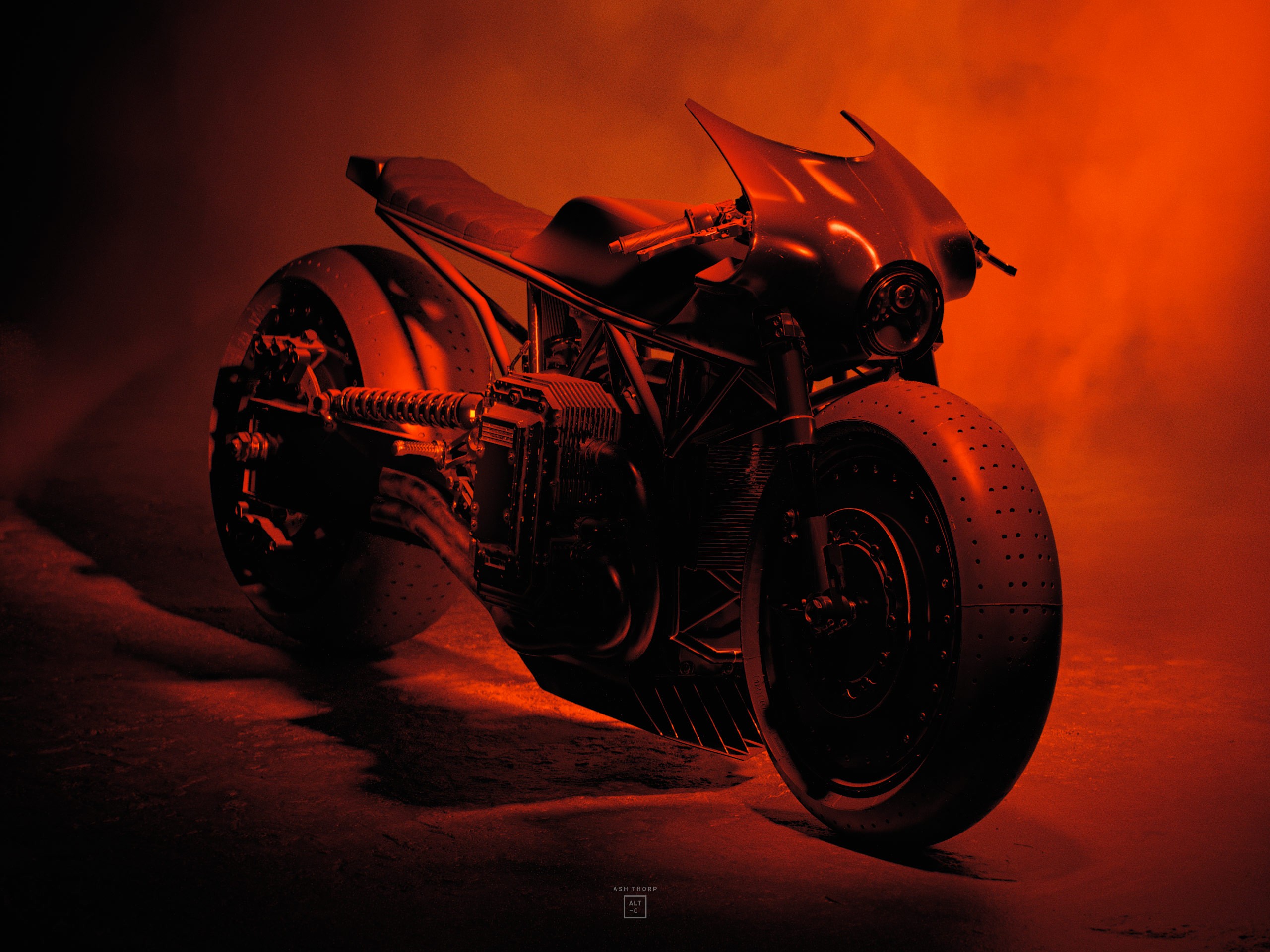 I also wanted to match the brutal and blunt designs from the Batmobile with a solid rear swing arm that would then connect to an exposed lattice type frame found in some of my favorite Ducati bikes.
