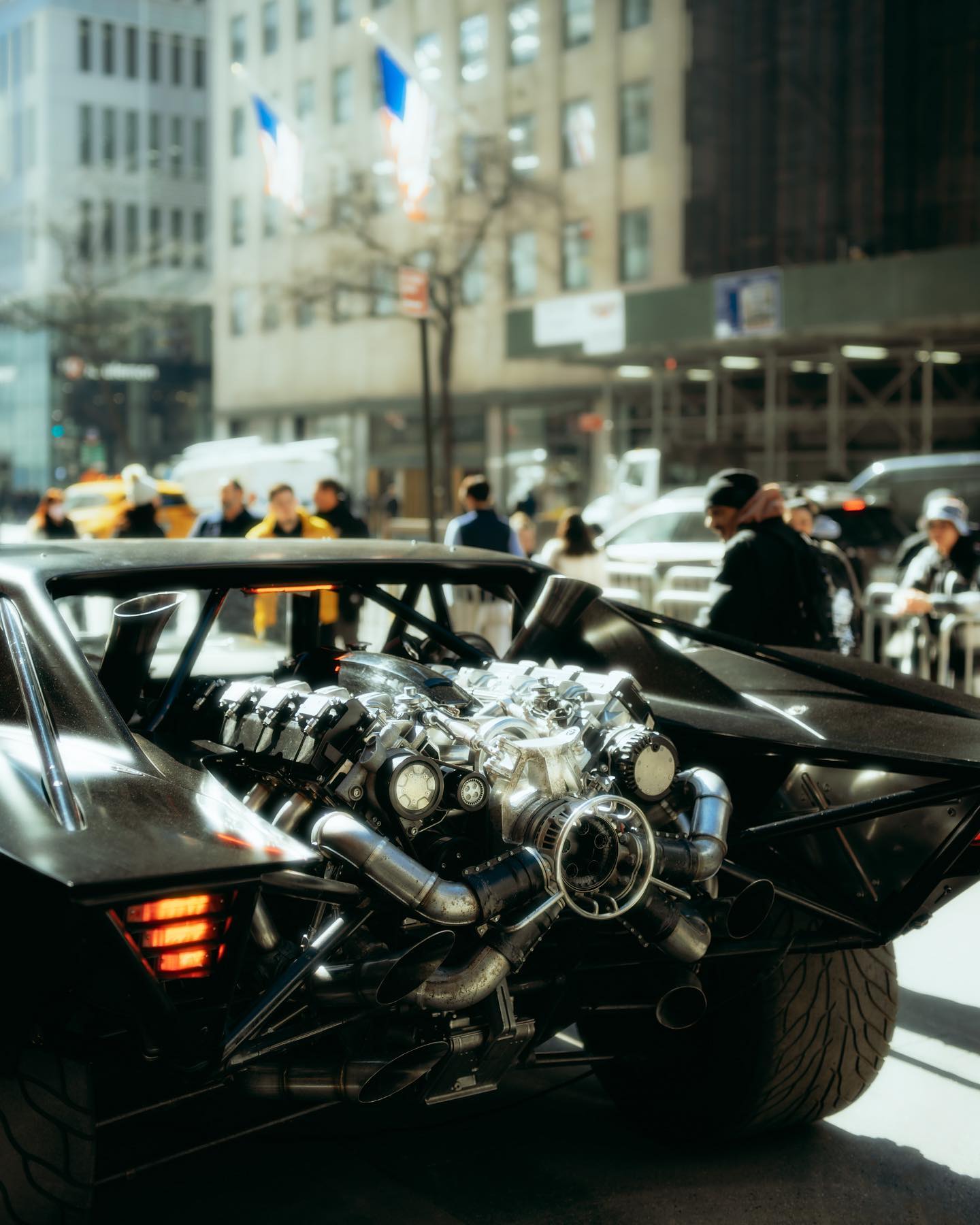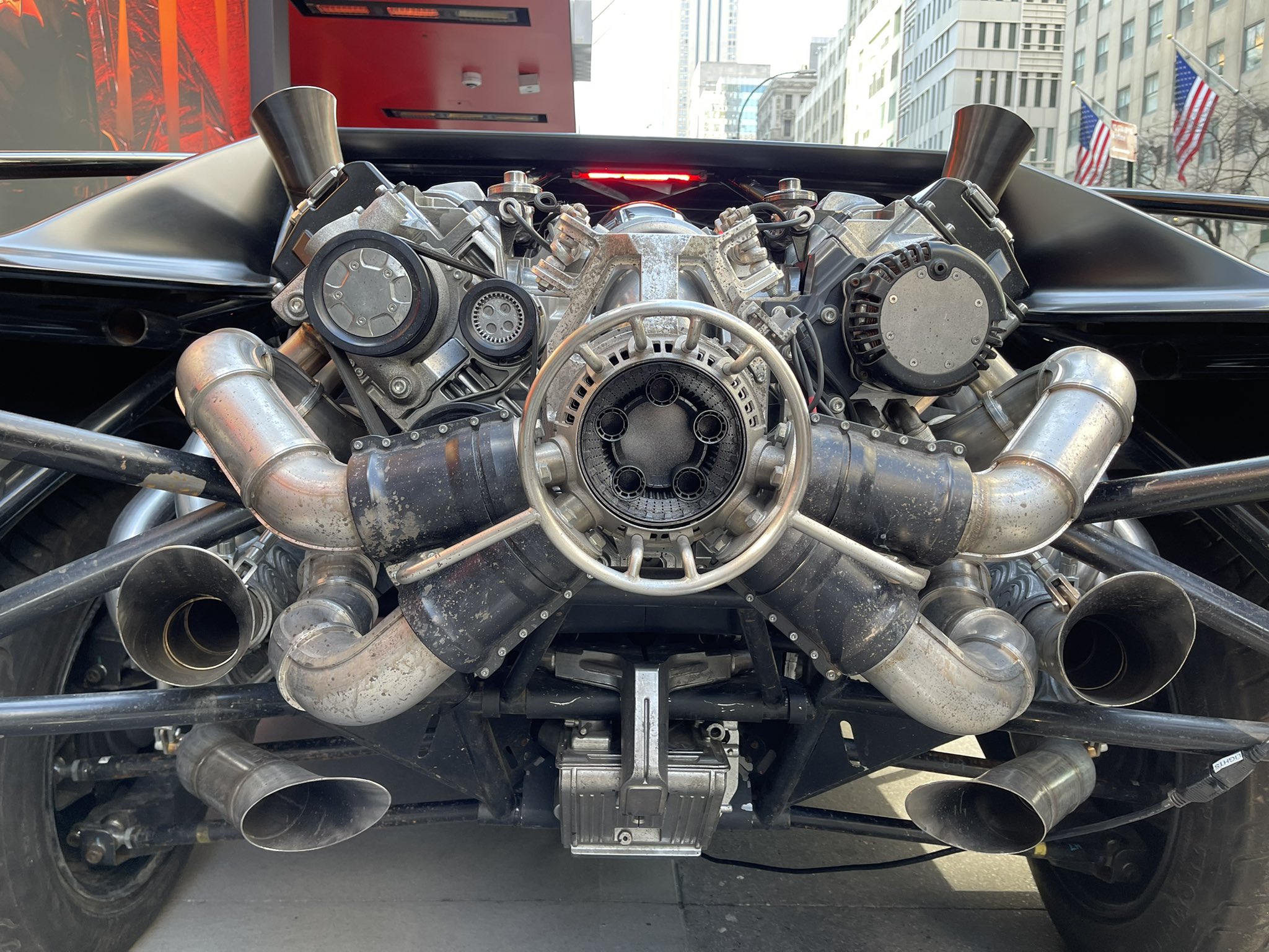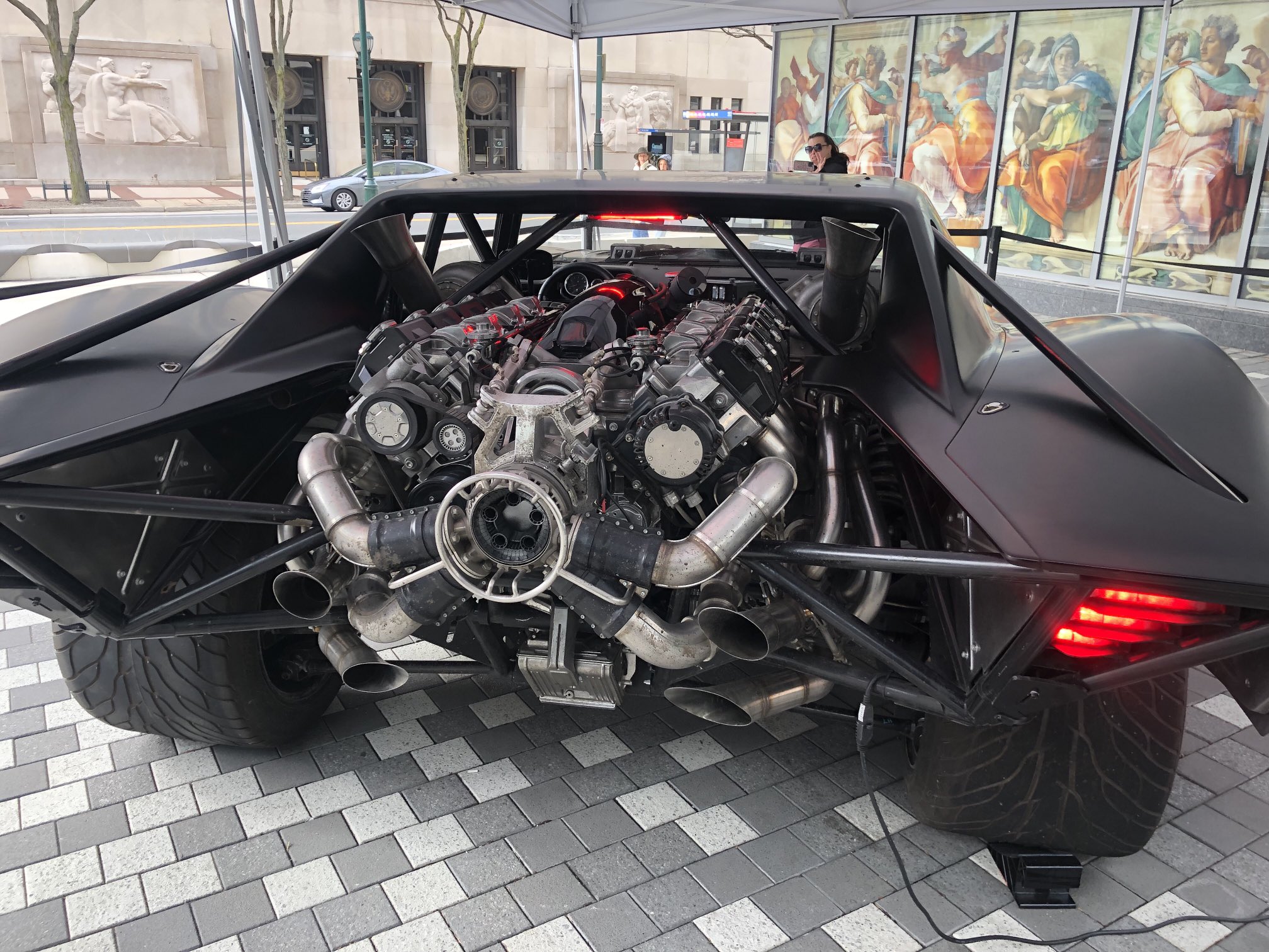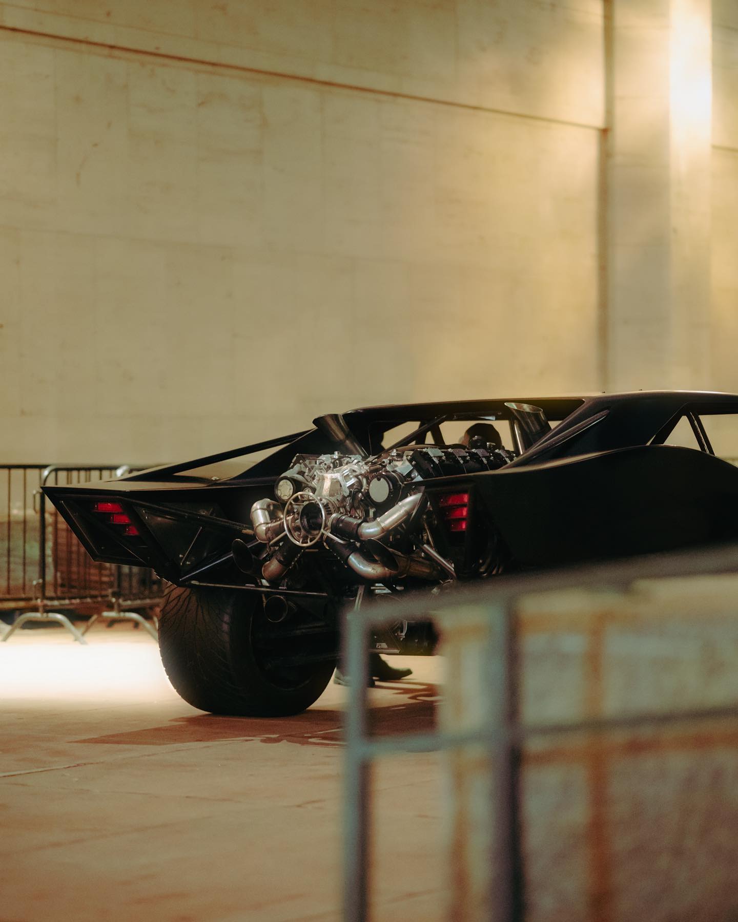 Now to talk about one of my favorite views and additions to the Batmobile design… the rear. If I recall, at about my third pass I had sent out a concept to @jchinlund and @mattreevesla of a fully exposed rear end with a large twin turbo V8 tucked a bit further down almost like a Ford GT40 (it sits higher up in the film for theatrics), this large powerplant would be held together by a lattice of structural components outlining the bat symbol when seen from the right vantage points. This was one of the first times I can recall being really overwhelmed with excitement as it struck a cord with Matt and James and we were getting closer to finding the soul of this beast. We wanted to create a monster akin to the 89’ Plymouth Fury in the film Christine… something that had a life and soul of its own and really took on the persona of Batman himself. As I mentioned in a previous post I really wanted to find a way to put as much symbolism into these design as possible. I get asked a lot about what was the base car used for this design and I love the iconic lines and look of the 70’s charger. It’s a timeless beauty and the way the rear inner window pulls back into the body really captured the shape language that was in the cowl and iconography of batman so we went with that and built onwards. From there I treated building this in 3D like I would if I was building it with my hands in my garage and really tried to consider how Bruce would actually construct it himself. Form followed function until you got something that really became iconic and my goodness if you have seen the film already you know how impactful the Batmobile is.
