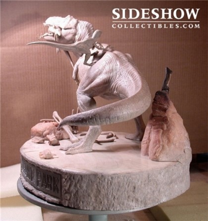 "Sideshow Collectibles is proud to bring you the T-Rex VS Raptor diorama, launching the line of Jurassic Park collectibles. In this dynamic diorama, the prehistoric creatures clash in a visceral tear-down fight, perfectly capturing every detail of the final battle scene. Each piece is cast in high quality polystone, hand-finished, and hand-painted to exacting standards. The T-Rex VS Raptor Diorama is complete with a hand-numbered individual edition number on the bottom side of the base. Don't miss this chance to own the premier piece in the Jurassic Park line of collectibles!"