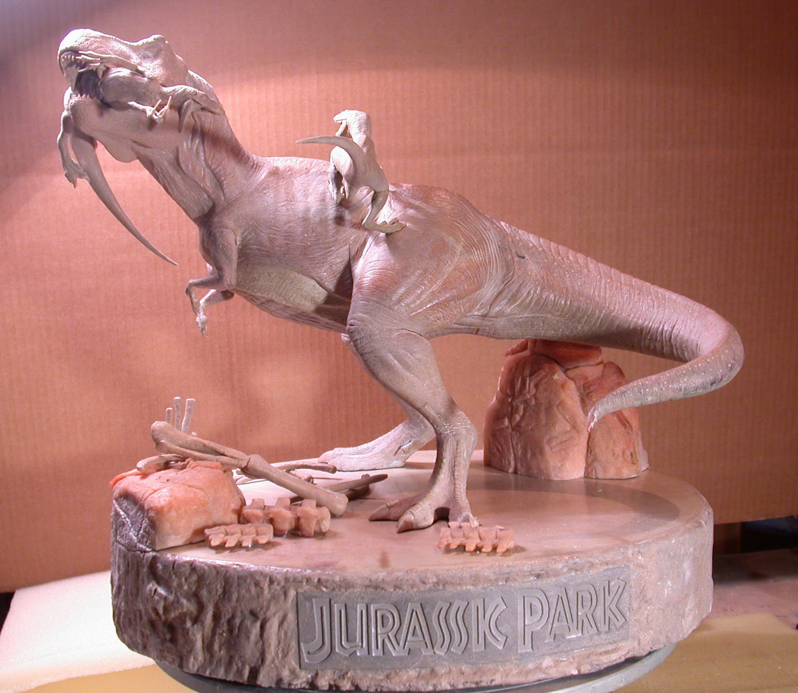 This statue is a thrilling monument to the climactic battle of Jurassic Park.