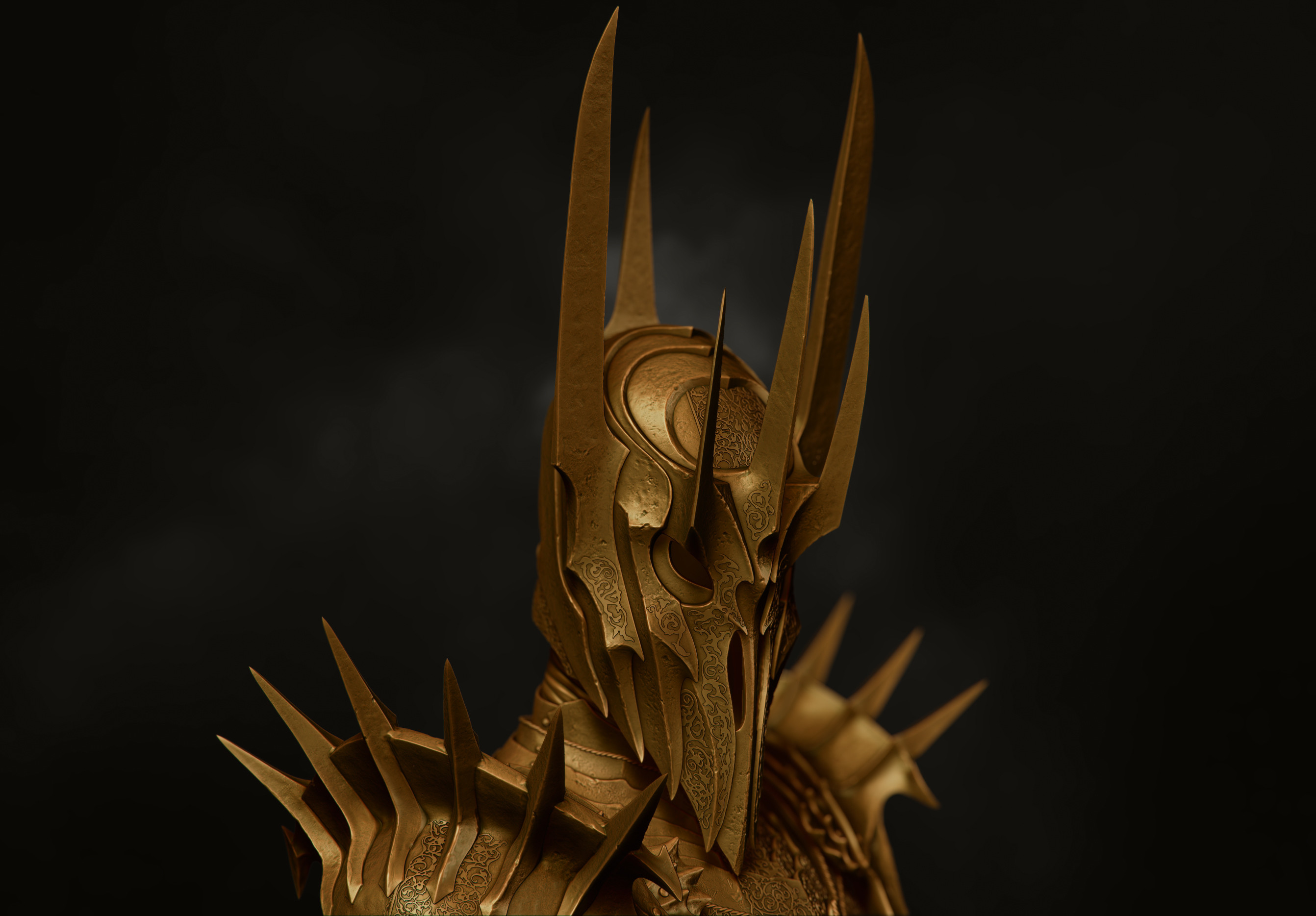 Only after working for such a long time on this character was I able to see how the original movie design, with all its details and beautiful forms, was a superb depiction of Sauron the Dark Lord.