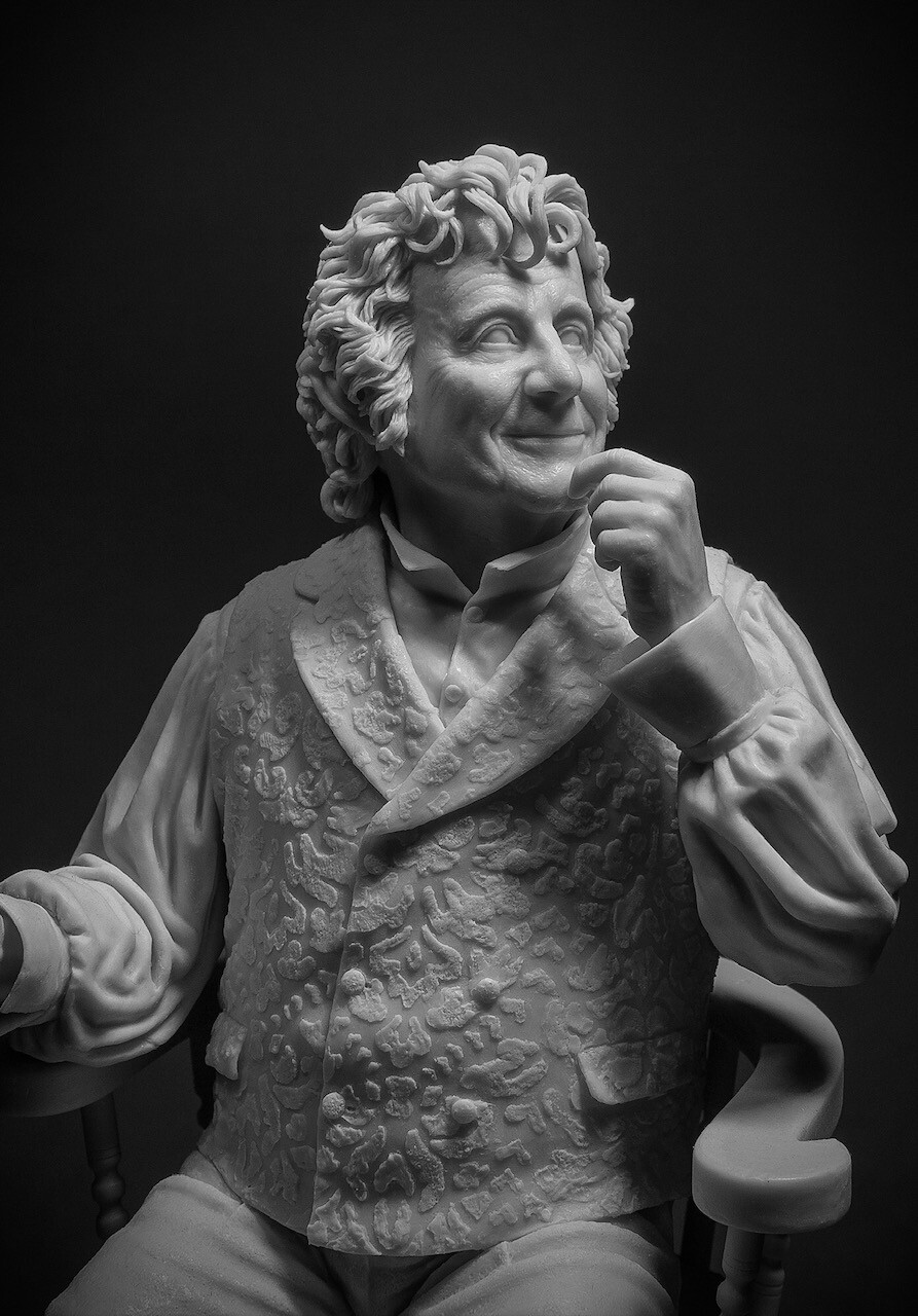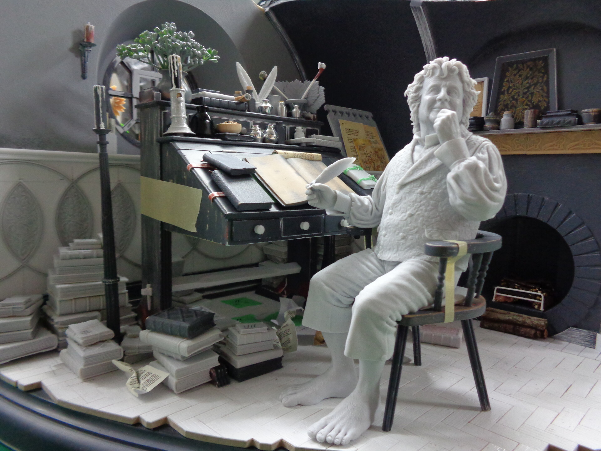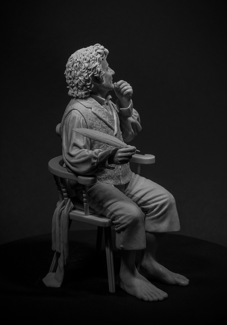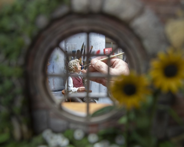 It’s Bilbo Baggins at Bag End, from Lord of The Rings. Whist working on this piece we heard of the sad passing of Sir Ian Holm, so the sculpture took on a poignant meaning. The collectible was officially released recently, so I thought I’d show some close ups of a resin cast so you can see some of the details. The chair was made by David Tremont.