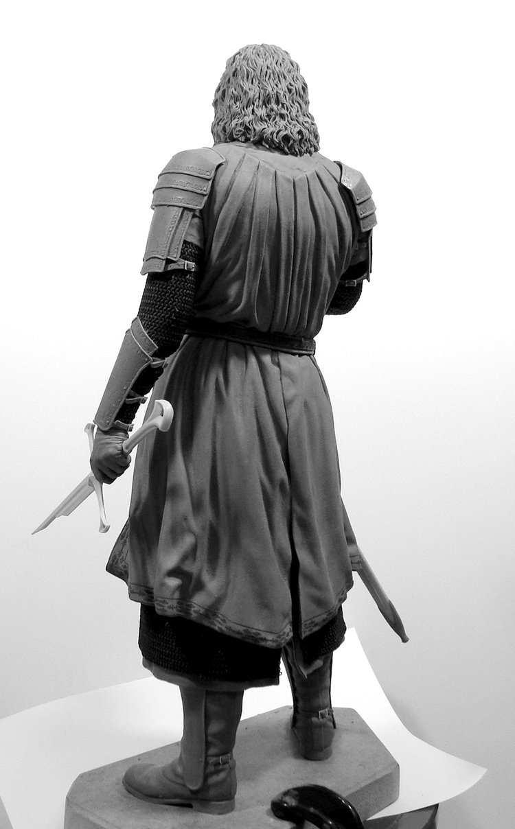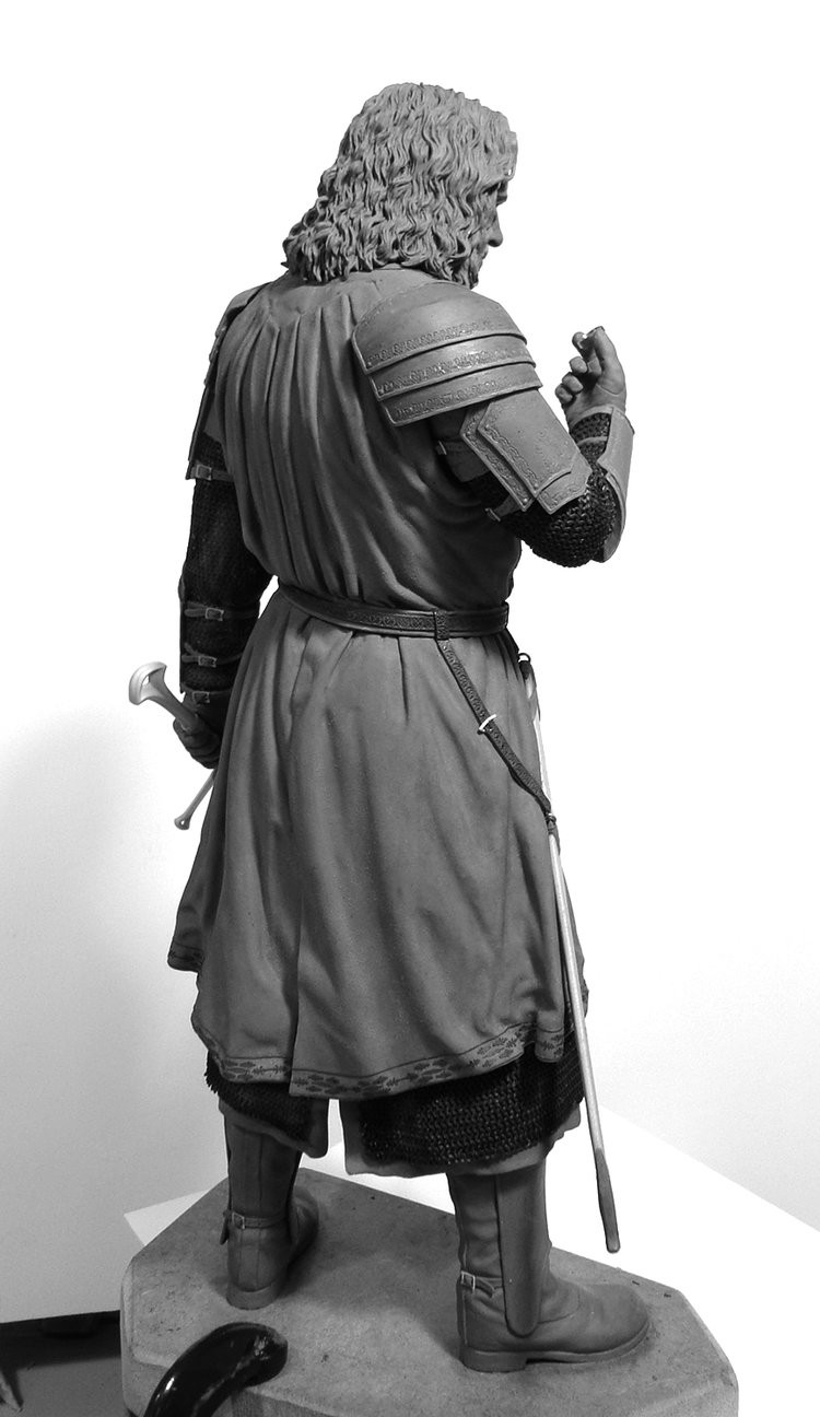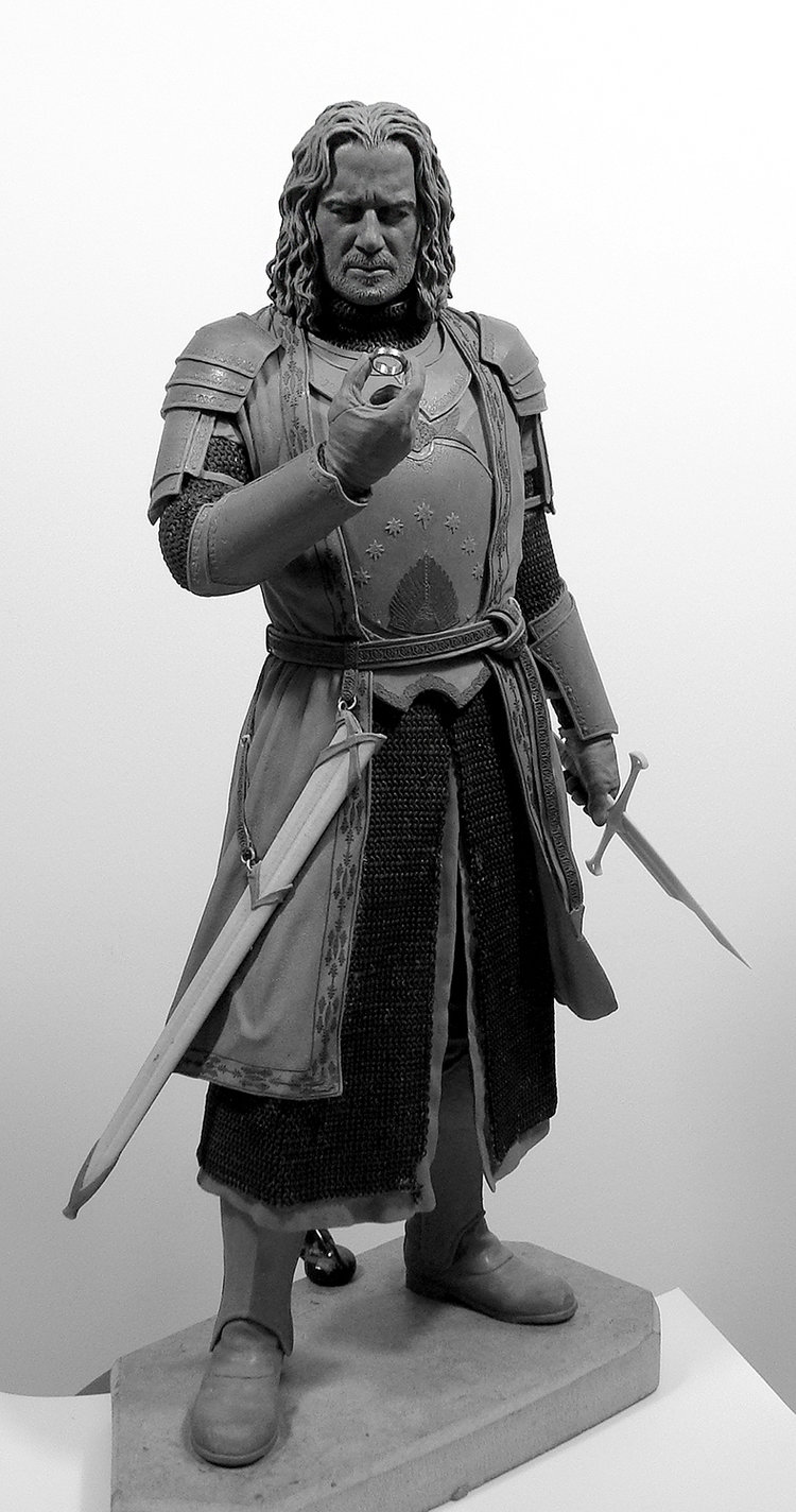 This 1:6 scale collectible I made a while ago at Weta Workshop. It depicts the moment when Isildur has destroyed Sauron and stands gazing at his prize, the One Ring. Hand sculpted in an oil based clay.