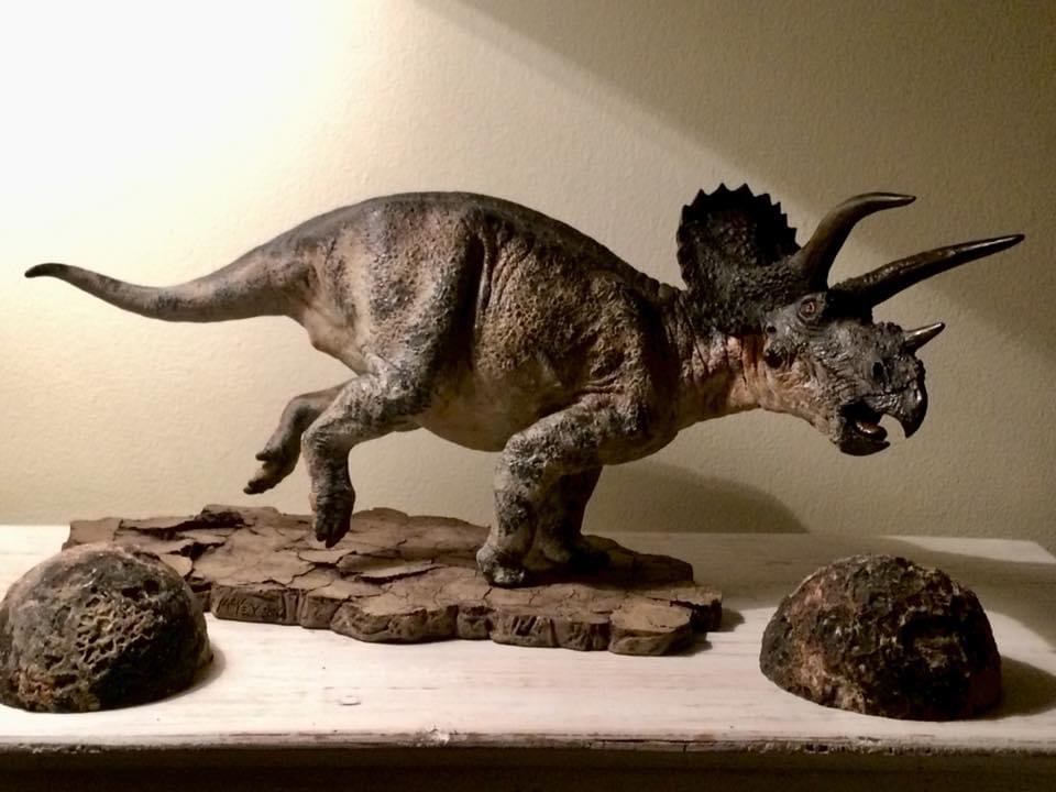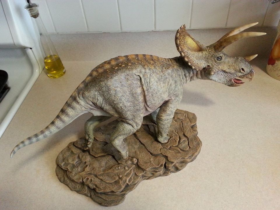 Acclaimed paleoartist Tony McVey was well known to the prehistoric model "garage kit" market throughout the nineties, and provided the Sideshow Dinosauria line with his superb Spinosaurus sculpt in 2009. McVey joined Dan's Dinosaurs in 2013 to release a new line of resin models. In 2014, McVey also offered this limited reissue of his massive galloping Triceratops sculpt. The sculpt has been updated with additional texture details in the head, and includes a base for display.