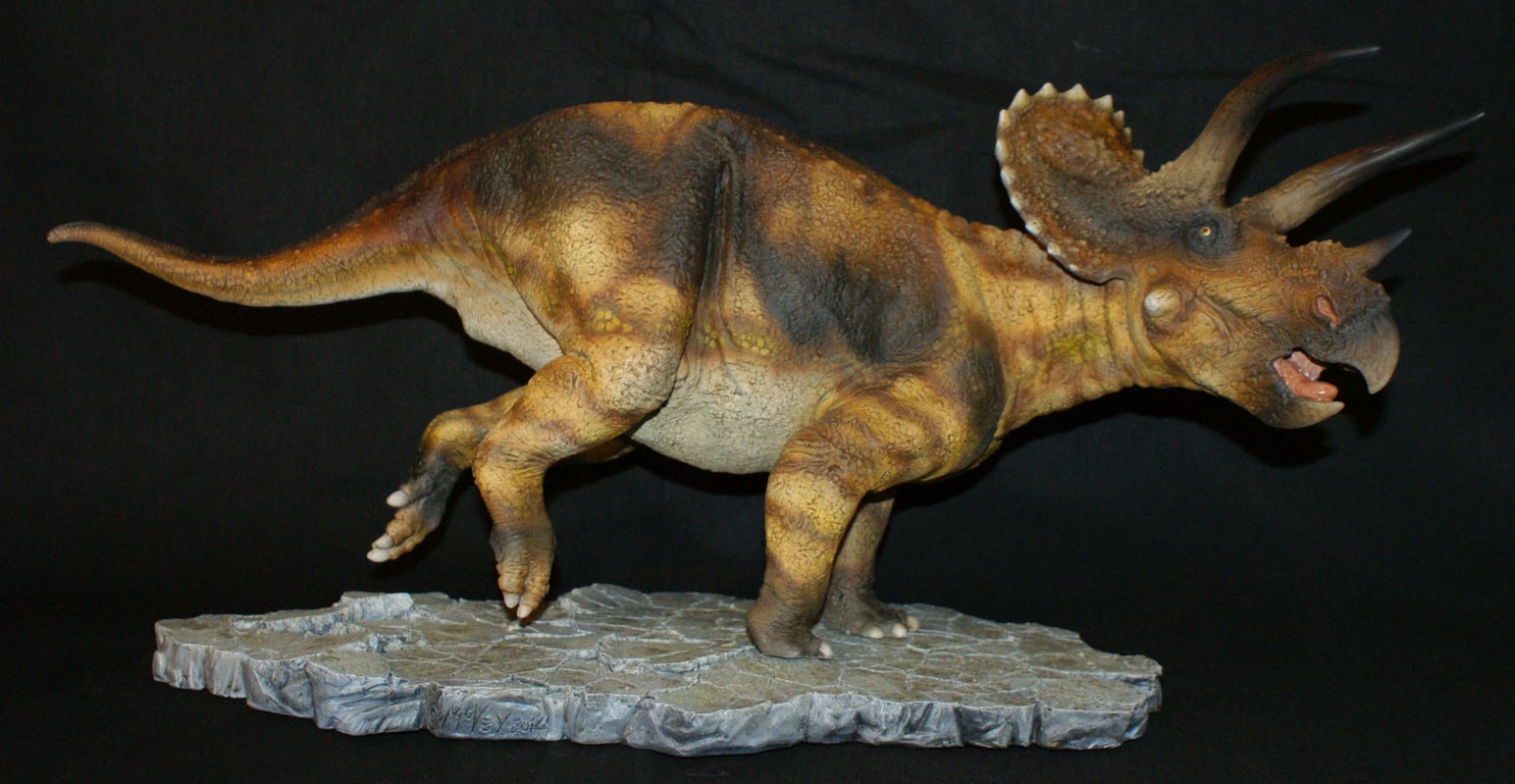 In 2014, famed paleoartist Tony McVey reissued his classic galloping Triceratops resin kit, along with a new base and stunning new details to enhance the ceratopsian's iconic head. Like his Deinonychus, McVey is releasing this kit in very limited quantities.