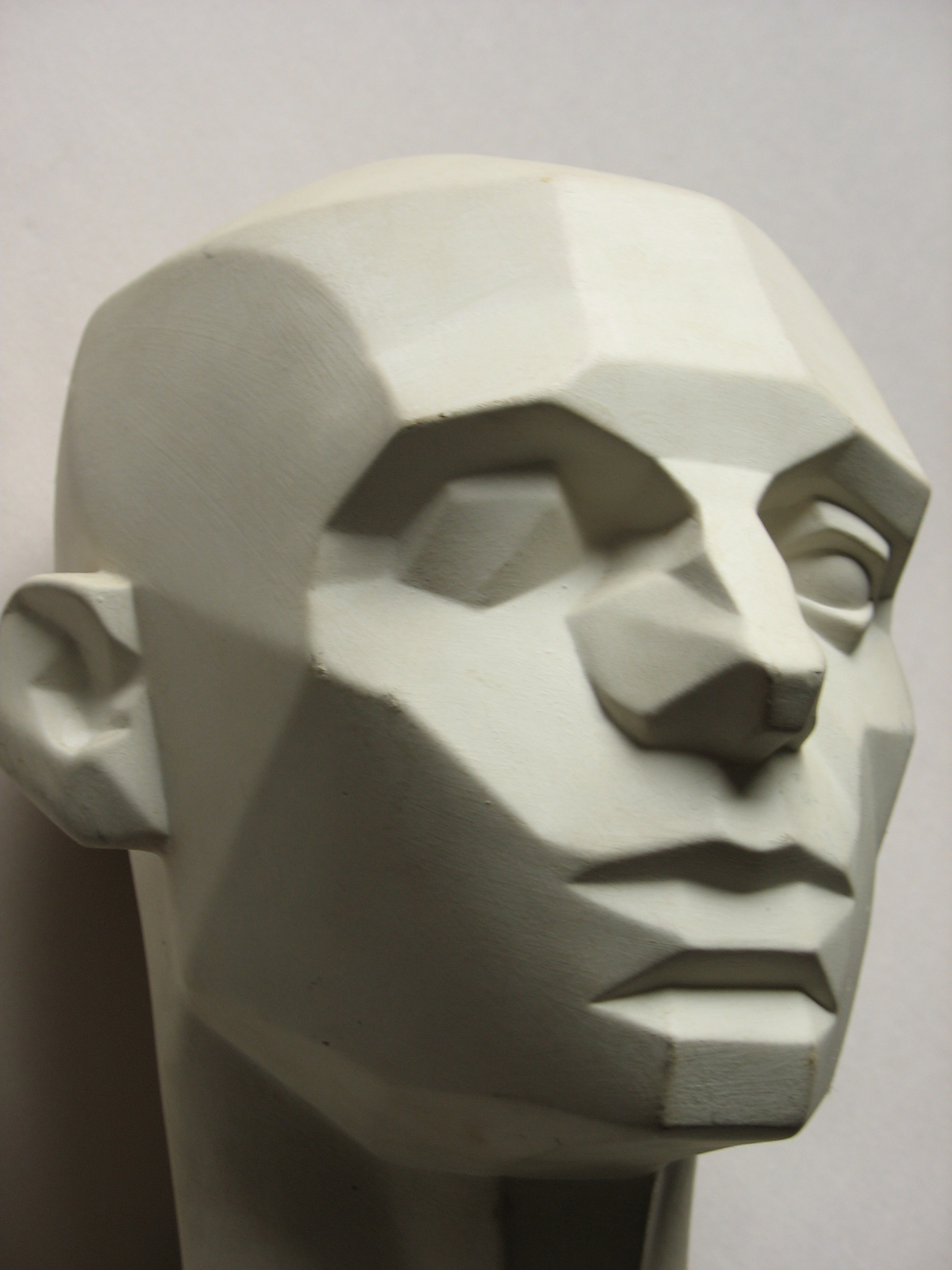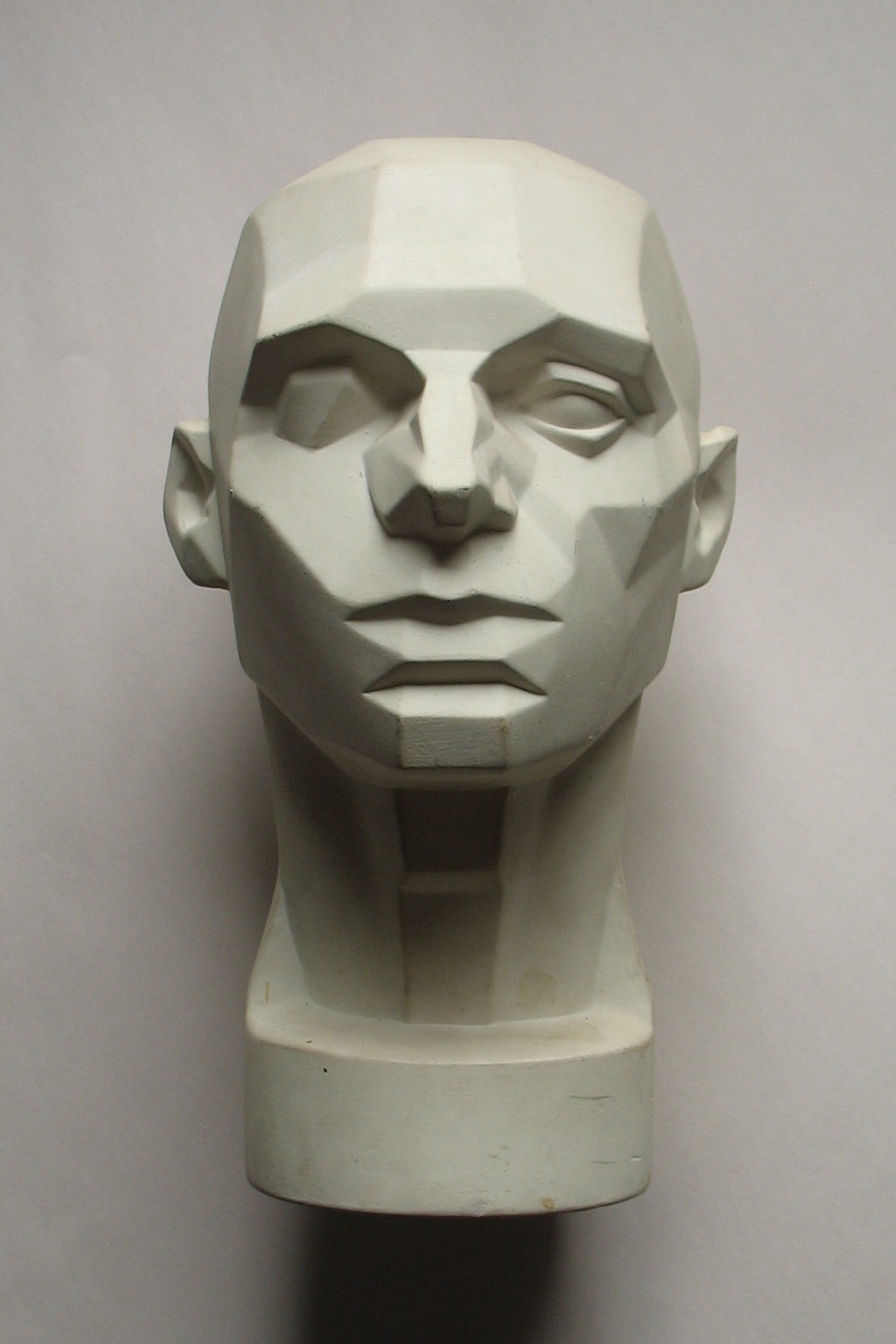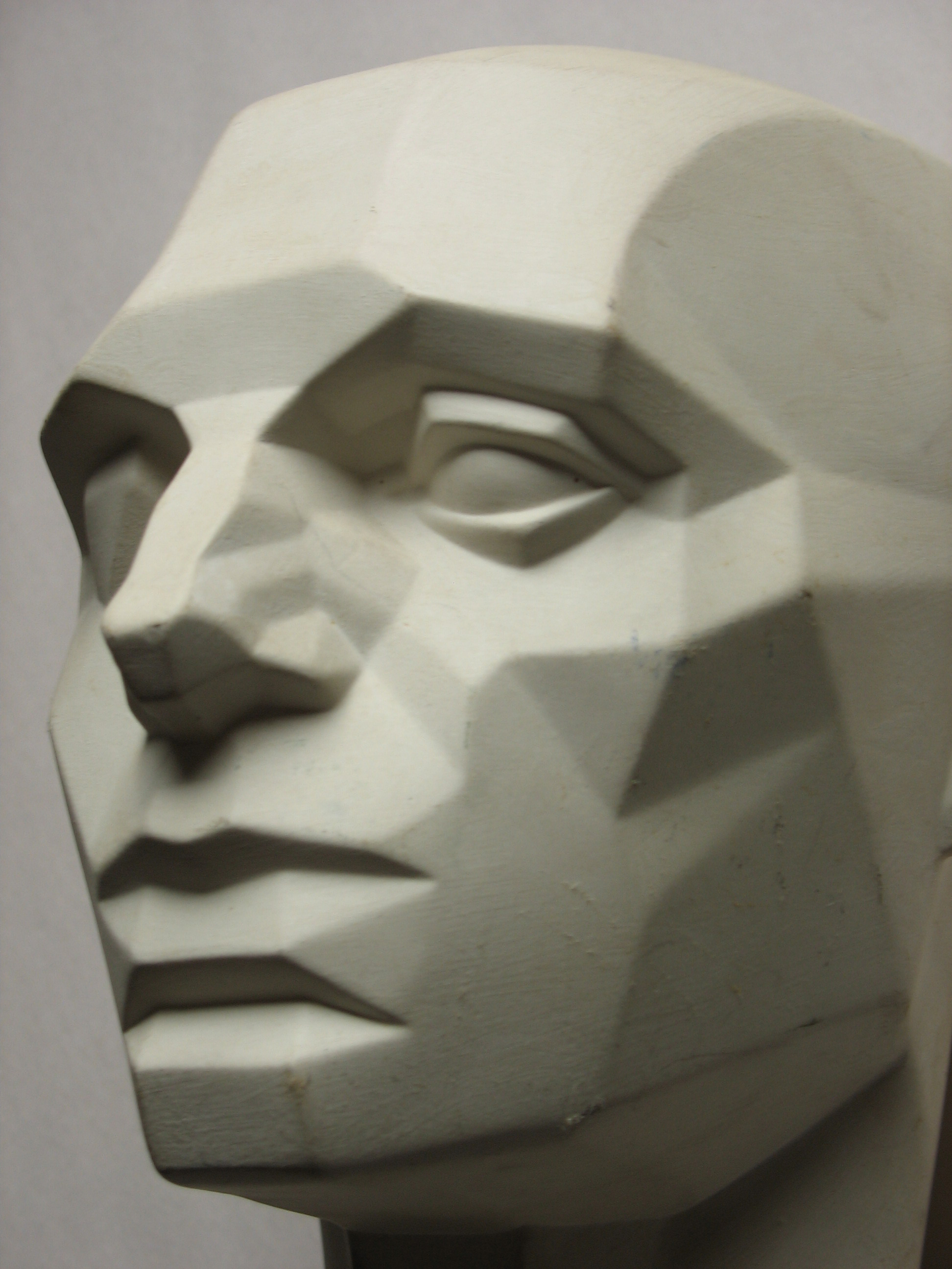 : This is a 3D model of the head created by John Asaro and helps our overall understanding of how light is reflected on the surfaces of the head. When we study portraiture, we are learning the exaggerated planes and angles of an object that we often think of as round or spherical.