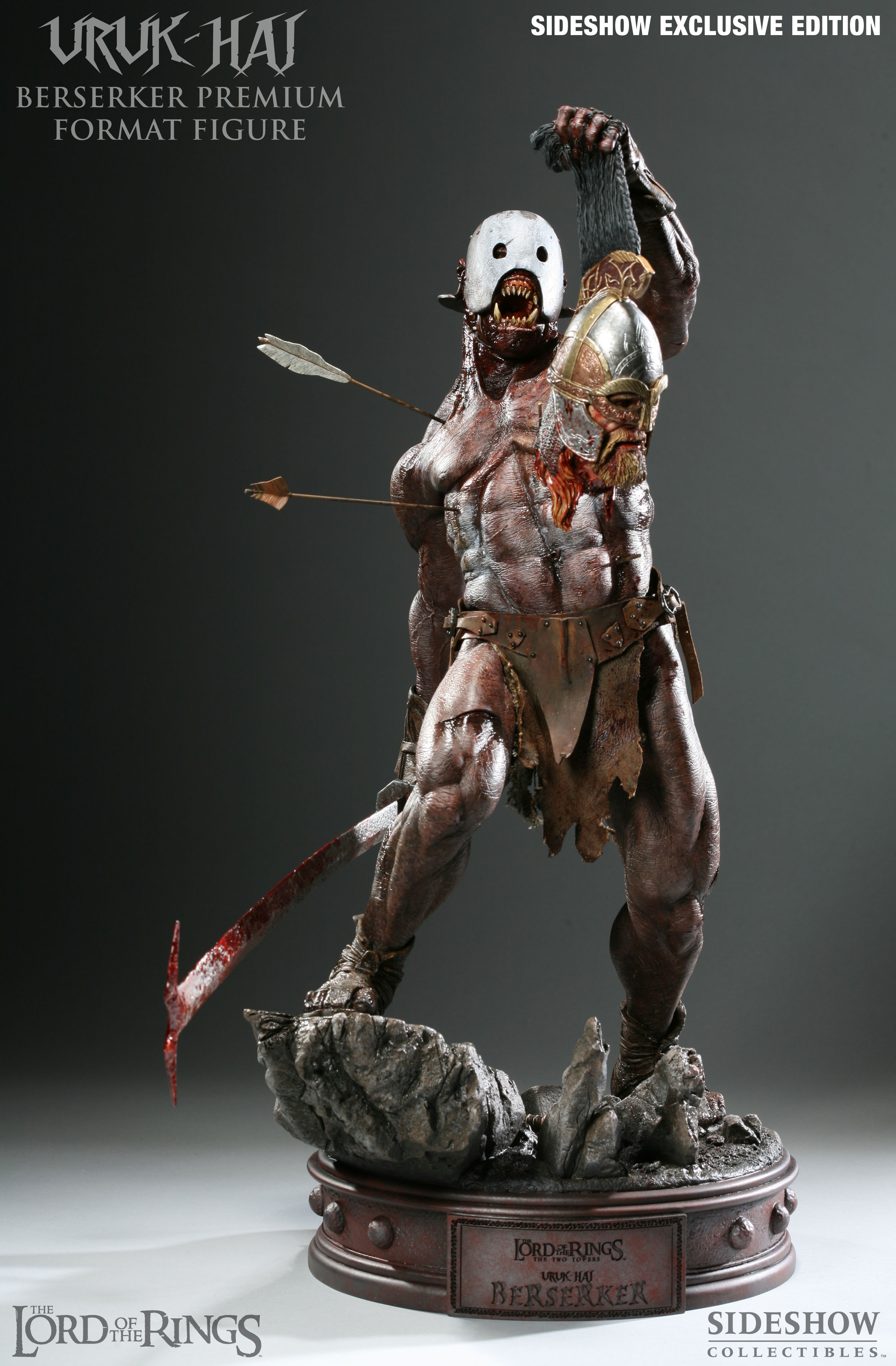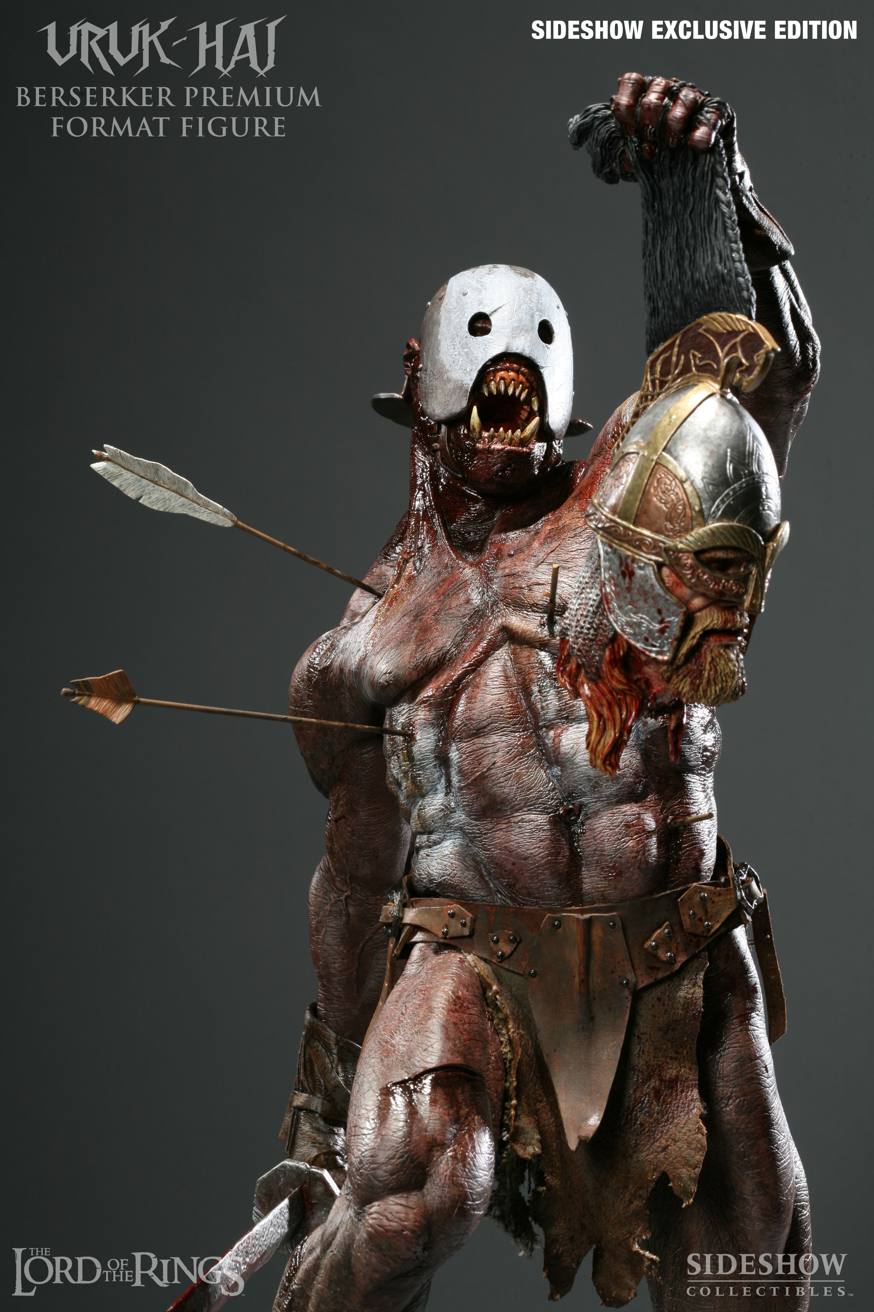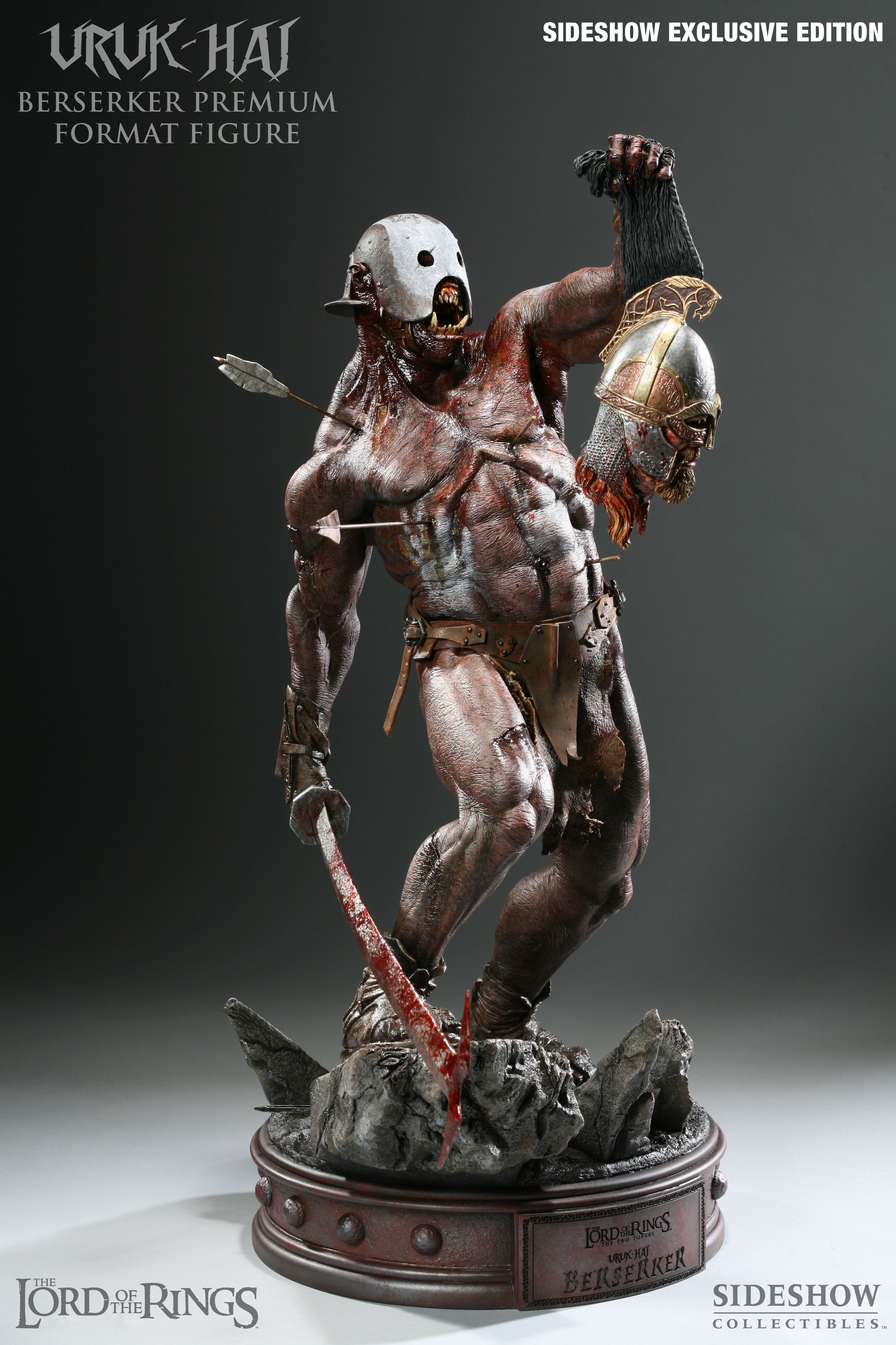 The Sideshow Exclusive version of the Uruk-hai Berserker Premium Format Figure includes a unique feature available nowhere else: Switch-out left hand with severed head