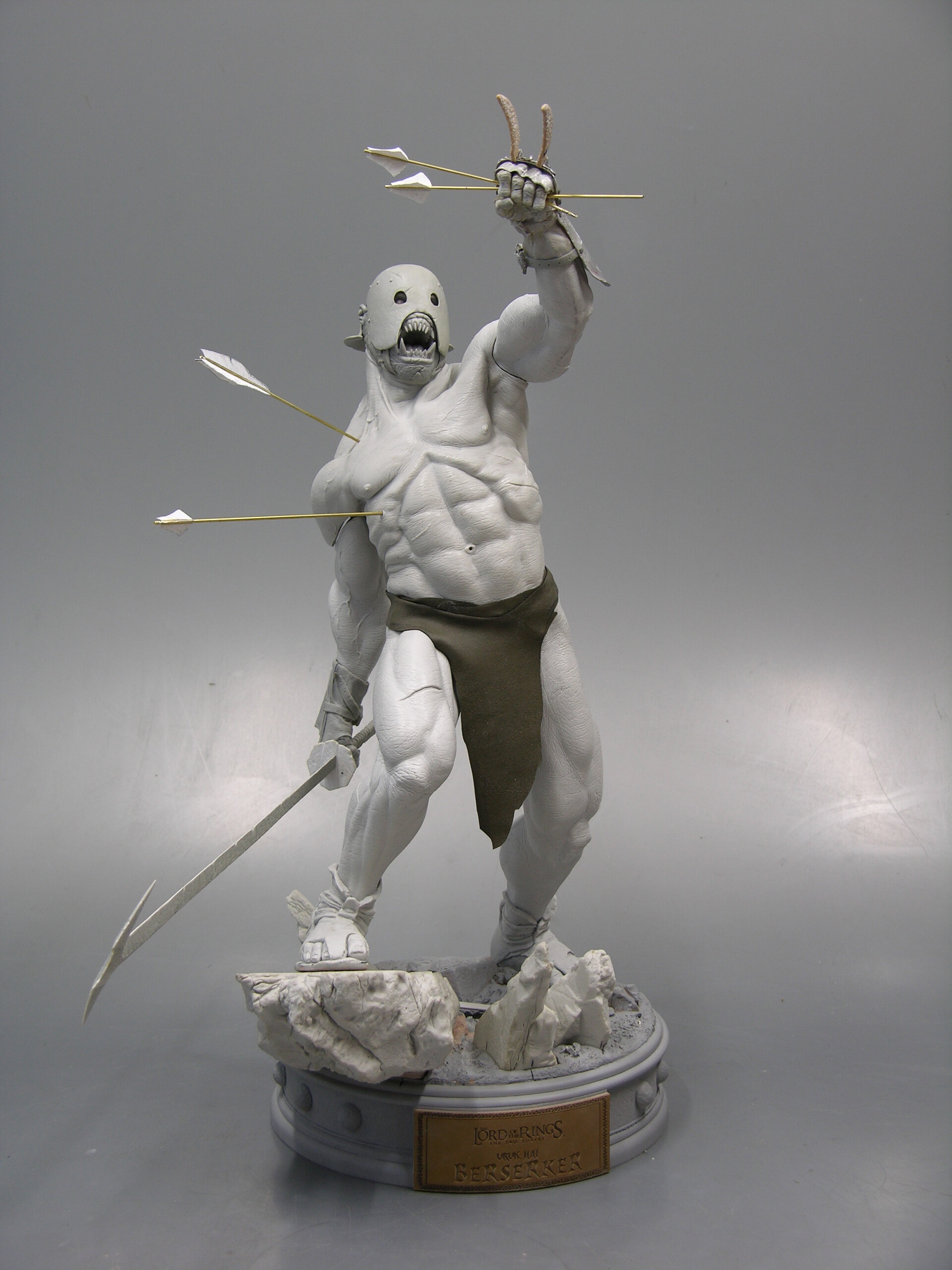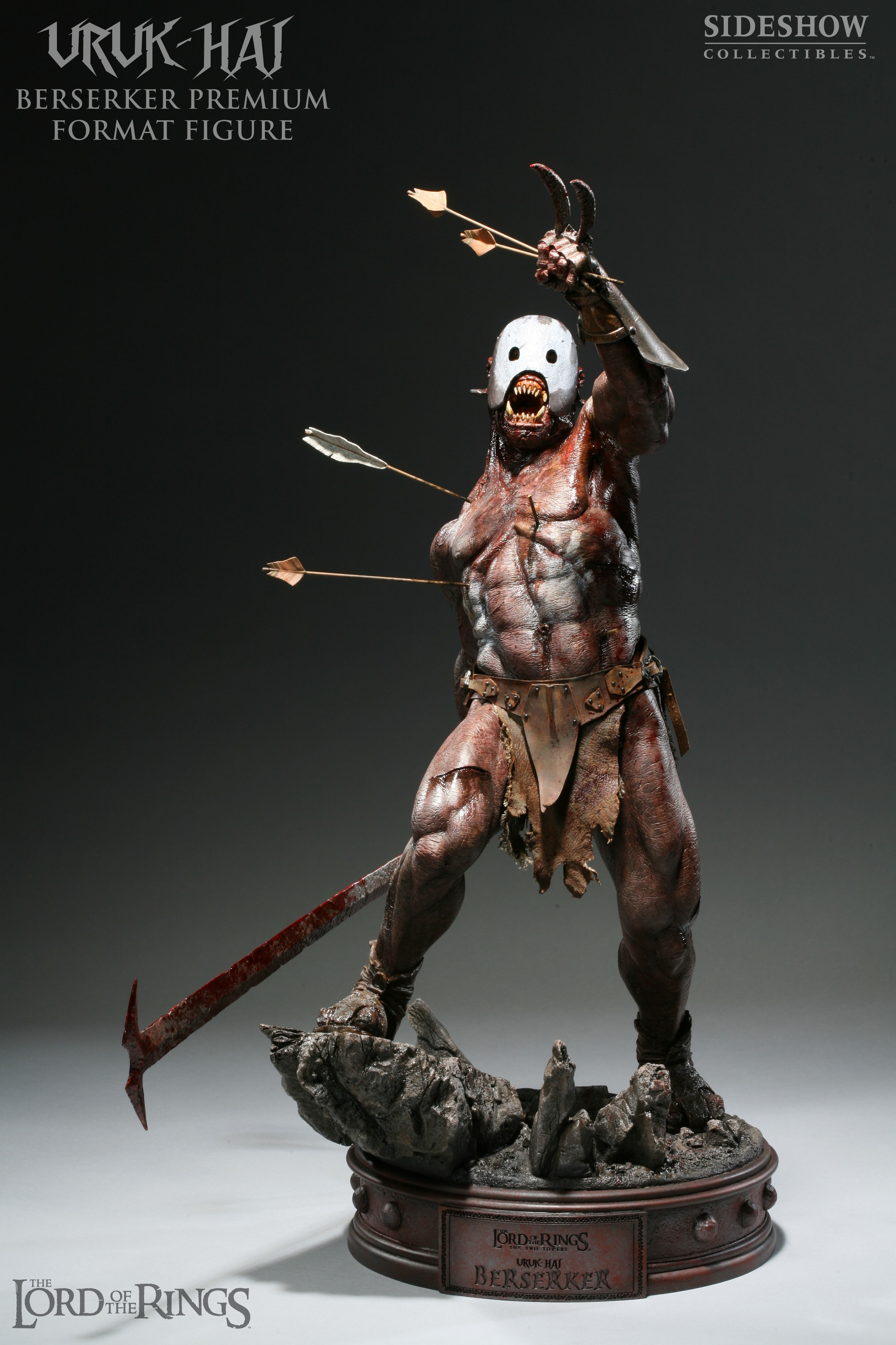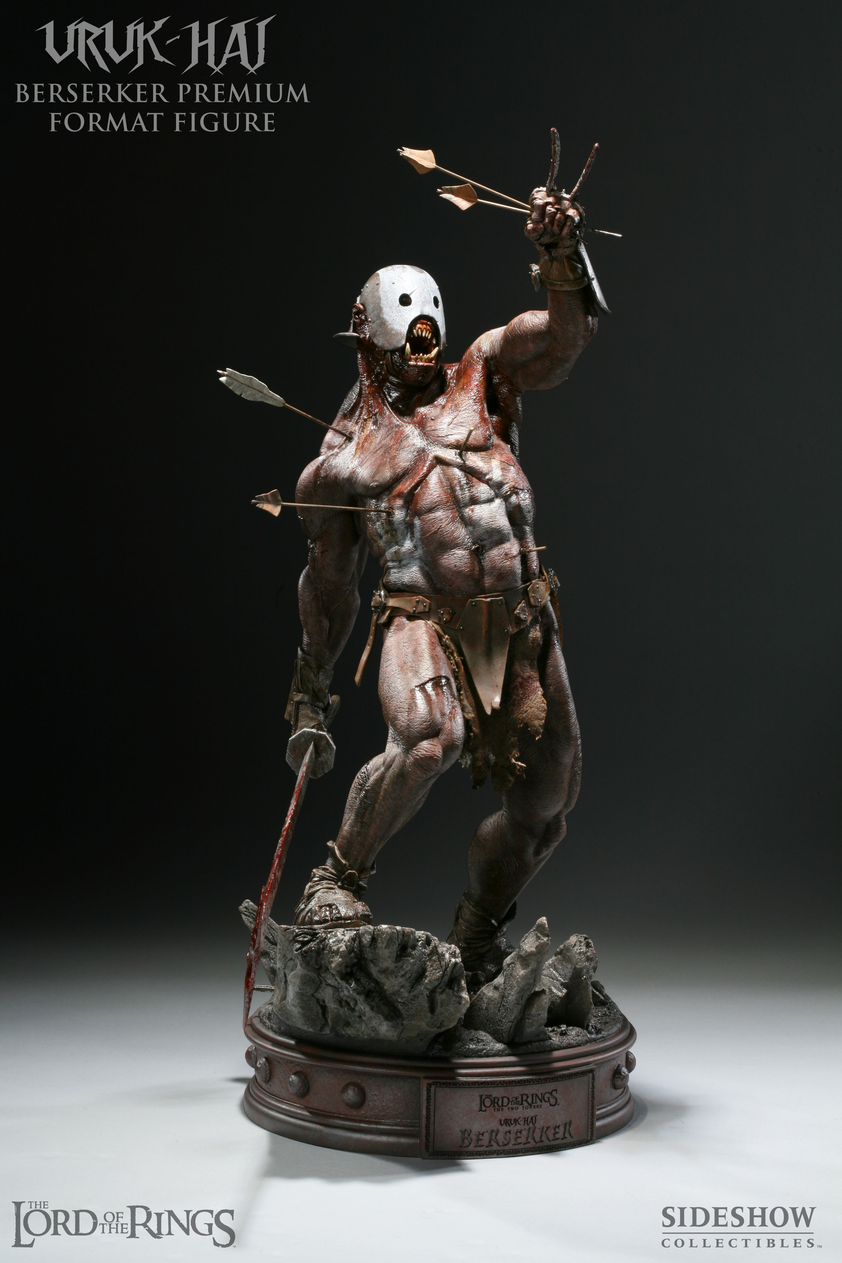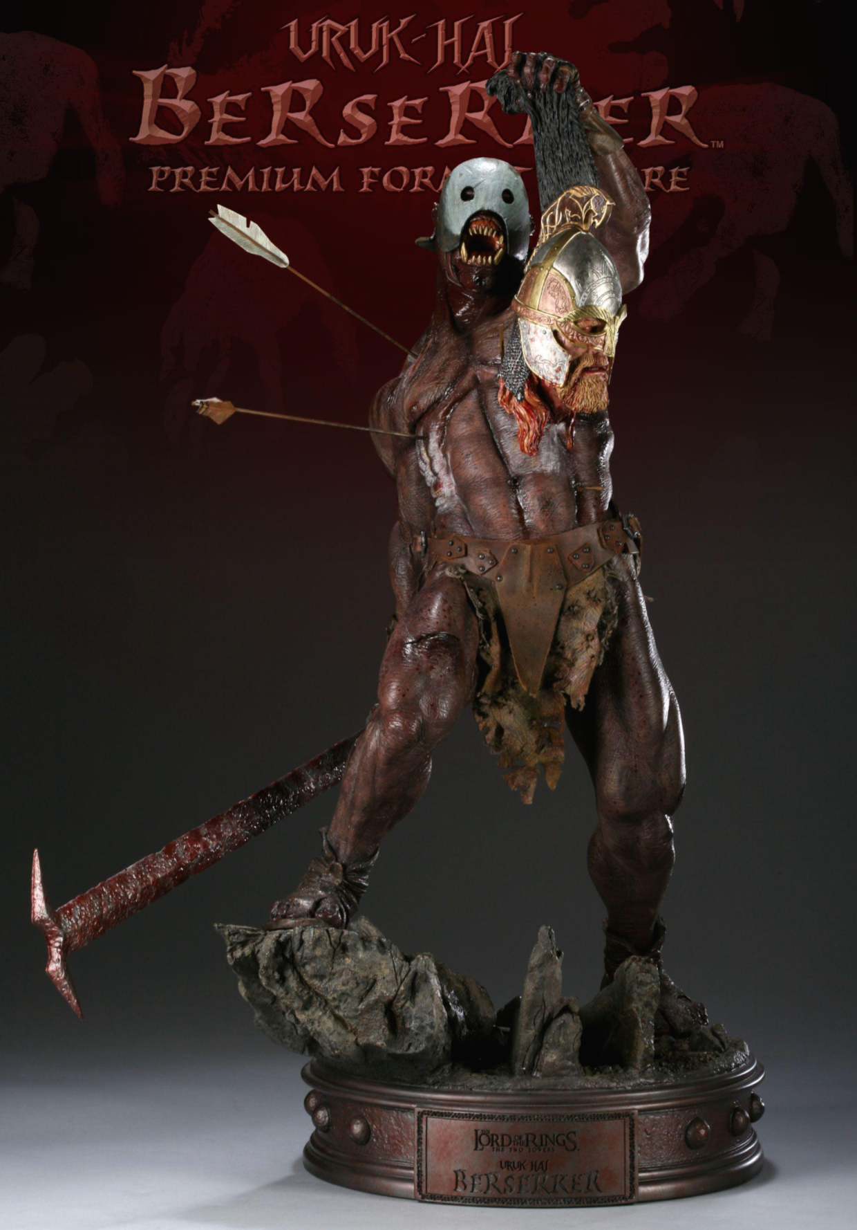 The Uruk-Hai Berserker Premium Format figure is a stunning 1:4 scale museum quality piece. Sword in hand and riddled with arrows, the Uruk-Hai Berserker stands 23 inches tall atop the display base, captured in the heat of battle. Each figure is cast in high-quality polystone, hand-finished and hand-painted. Each base is then individually hand-numbered for authenticity. This stunning figure is an outstanding addition to any The Lord of the Rings collection.