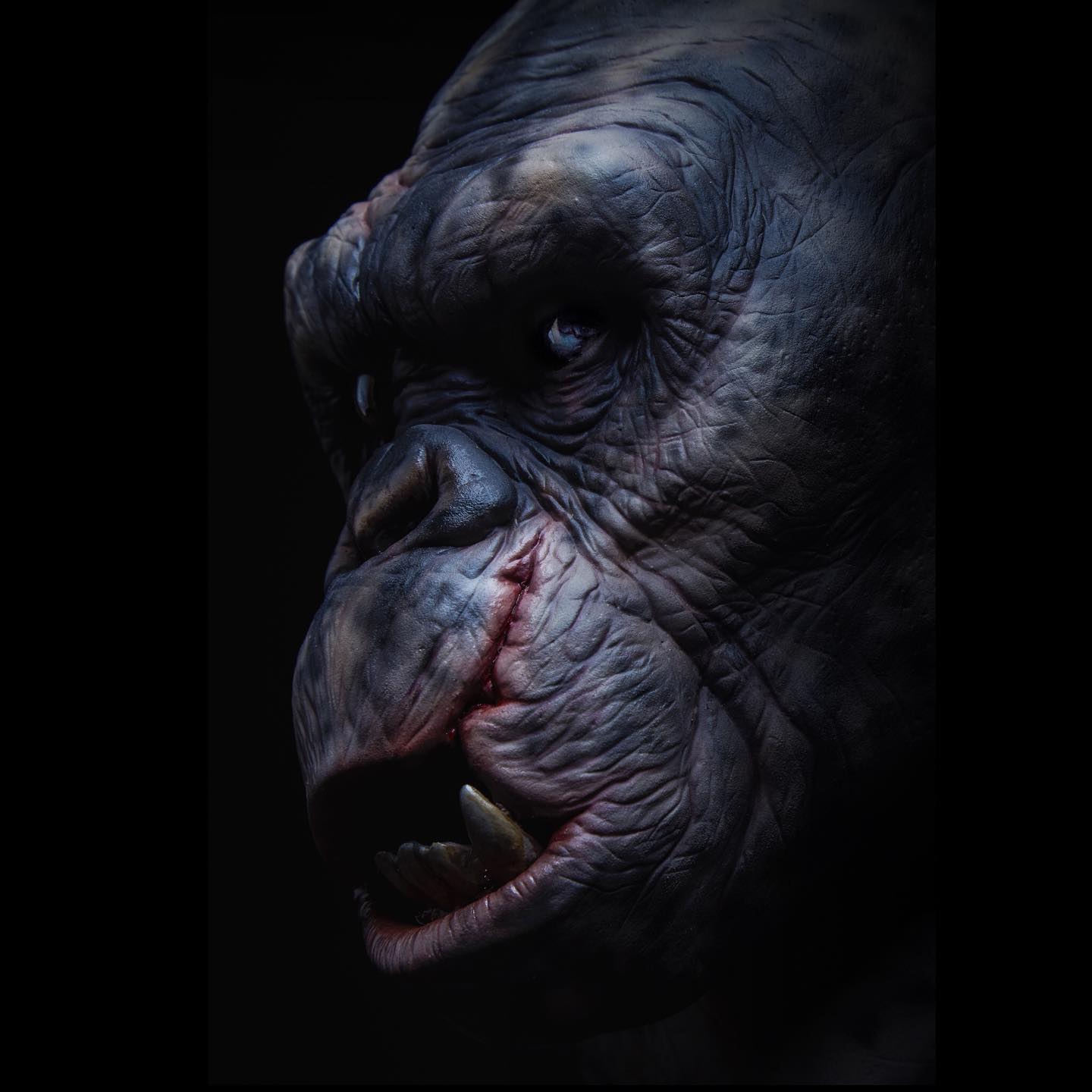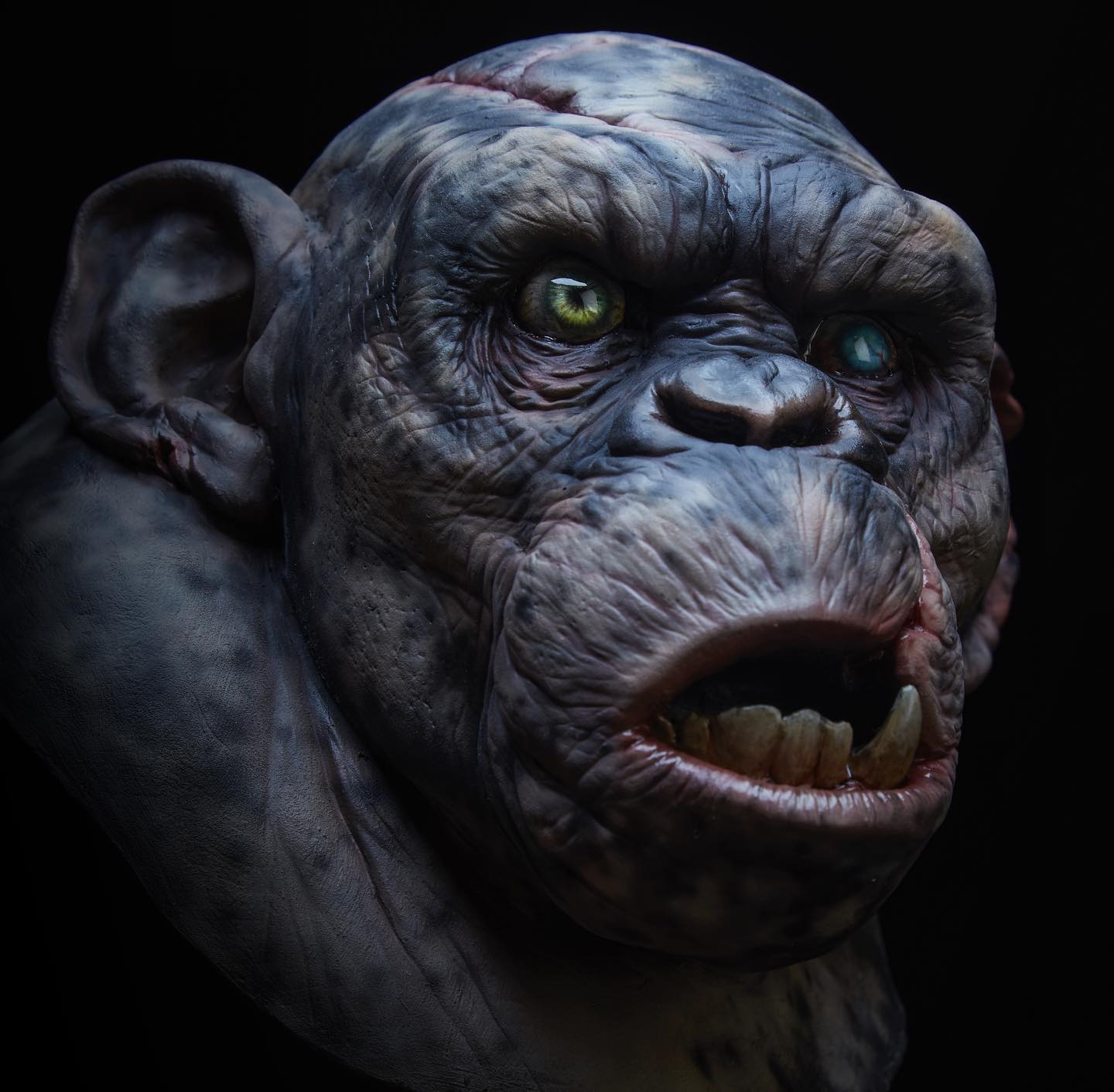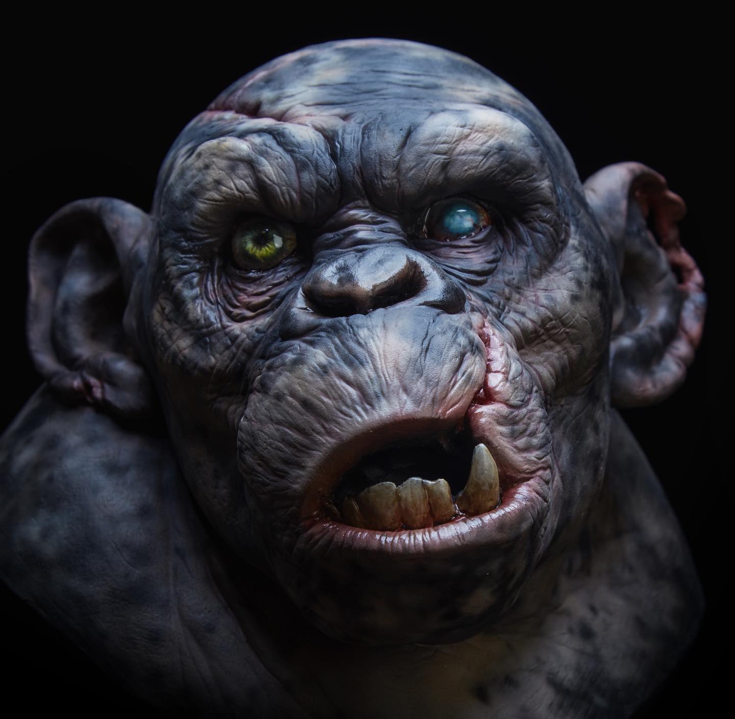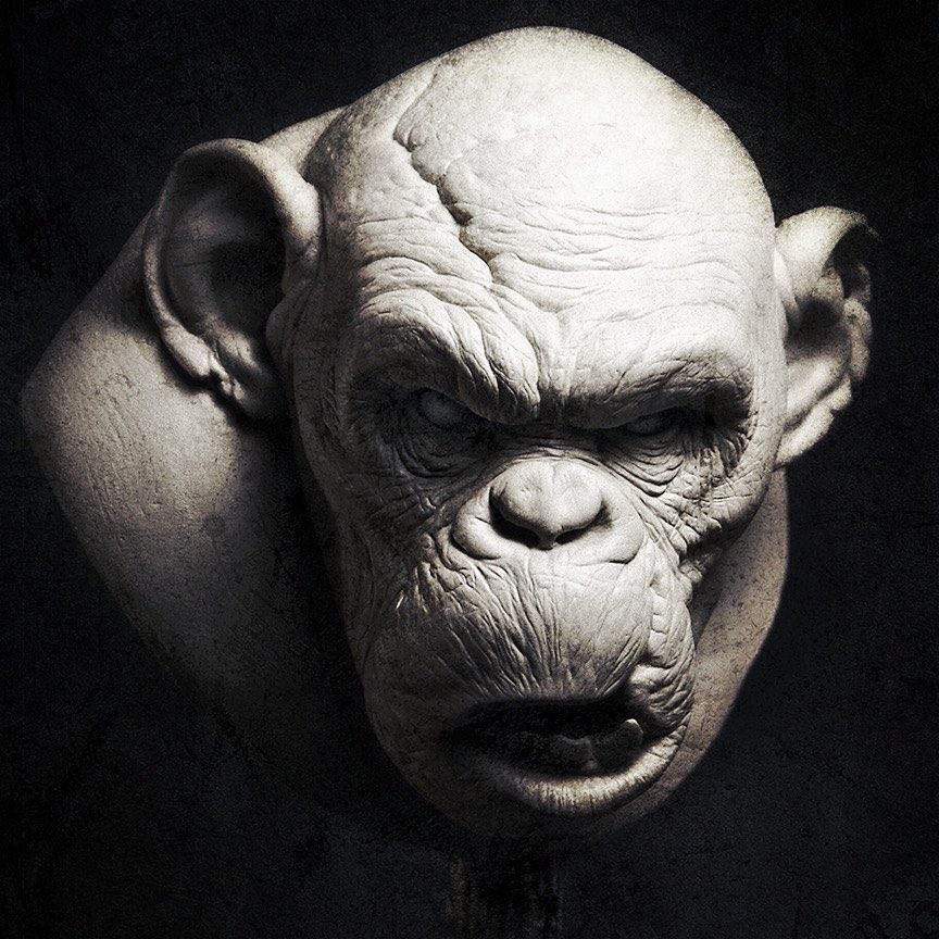More old monkeybusiness. We spent a day coming up with design ideas and this was my entry, a zombie chimp. Painted/finished by the one and only Zombie chimp! Old sketch.