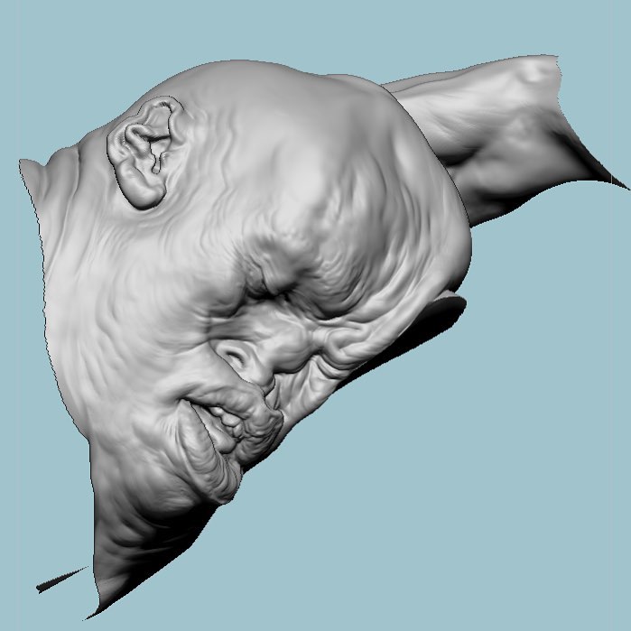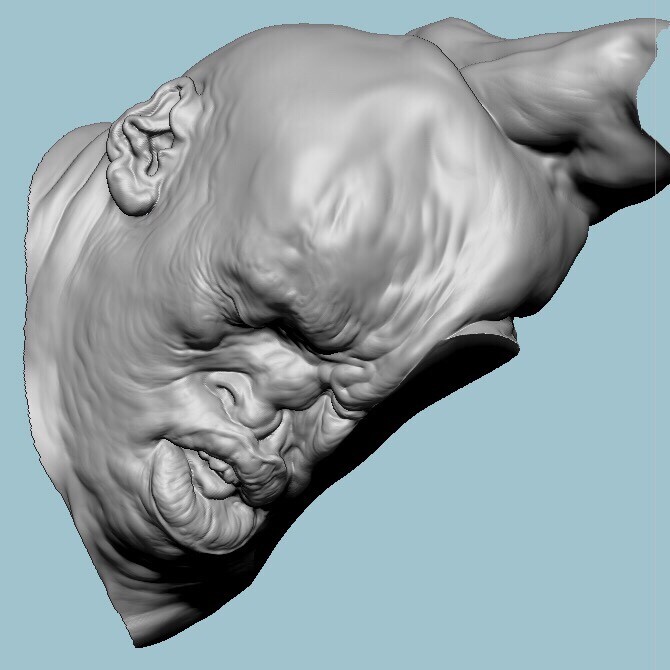 i just sculpt with basic material... my rule is if it looks like something between a gnarly high contrast tin type photo and concrete, you probably at normal flesh. For an old person face, itd be double that... like exploding wrinkled roping flesh blob... which seems weird, but you get used to it after a few prints. scale is also a thing... for smaller things you have to amp the detail too to make it look right. It usually takes a few prints to get to something successful