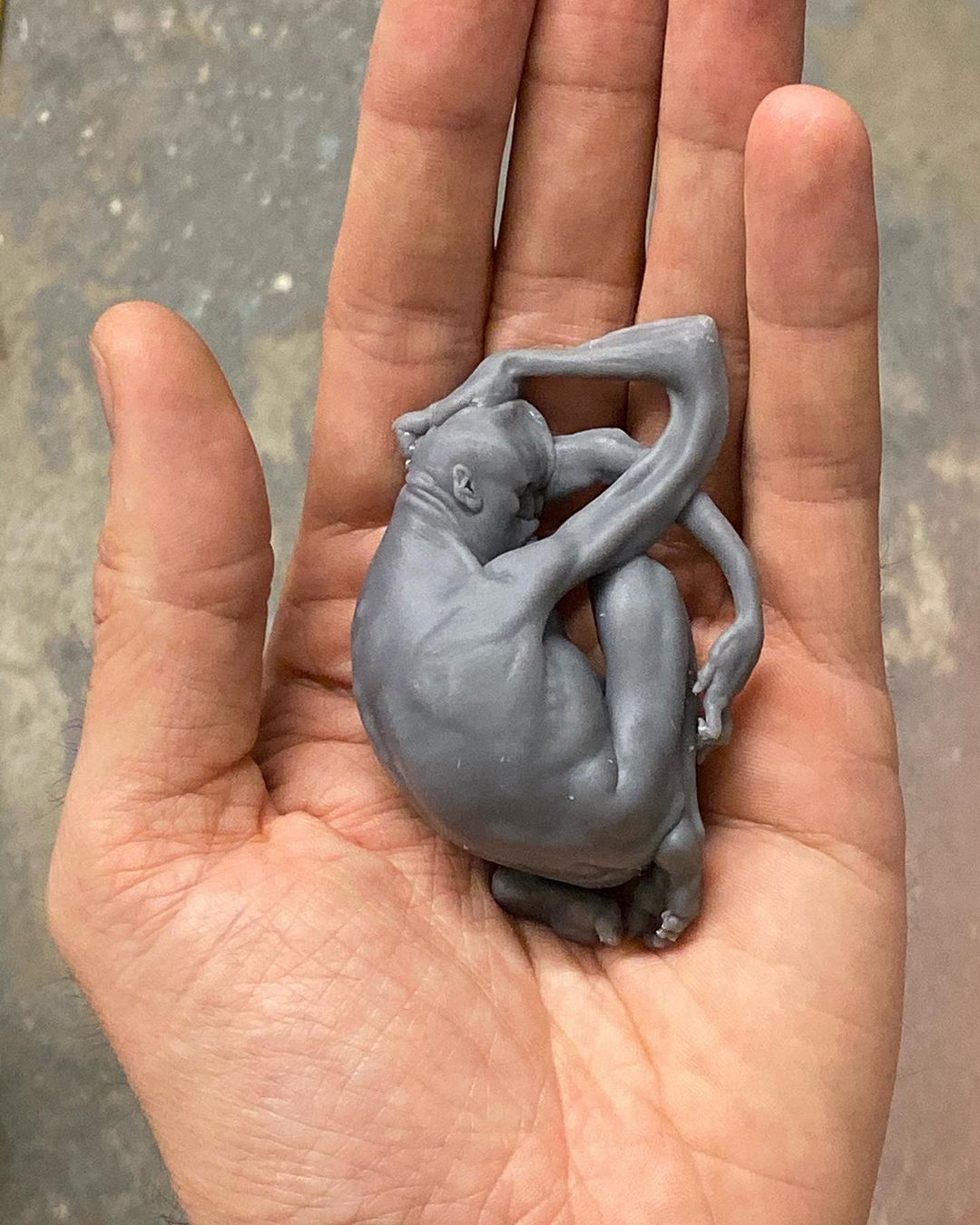 Clay Sculpt -> 3D Scan -> 3D develop -> Scale model printing test -> Painting Test