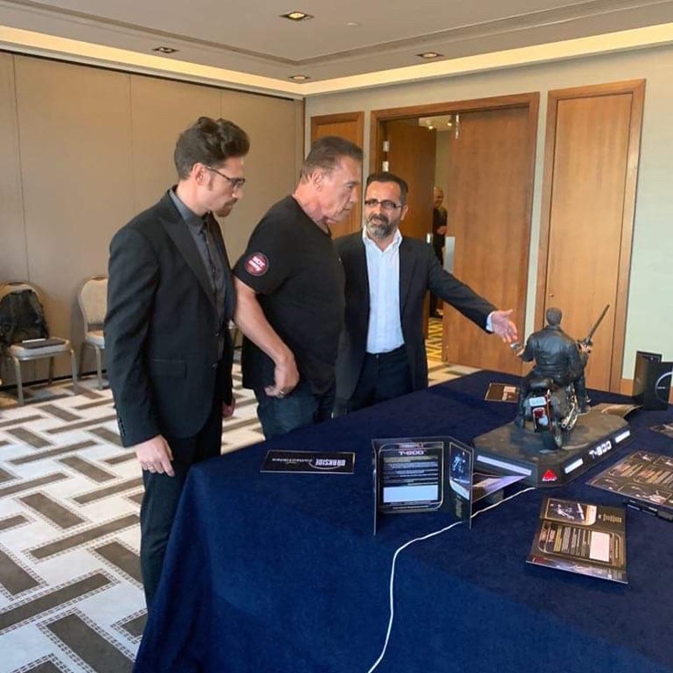 The Limited Signature Exclusive Edition features four interchangeable portraits of the T-800 with light-up features, one pair of sunglasses, a black metallic base with light-up functions, and comes with the Certificate of Authenticity signed by the Terminator himself Arnold Schwarzenegger.