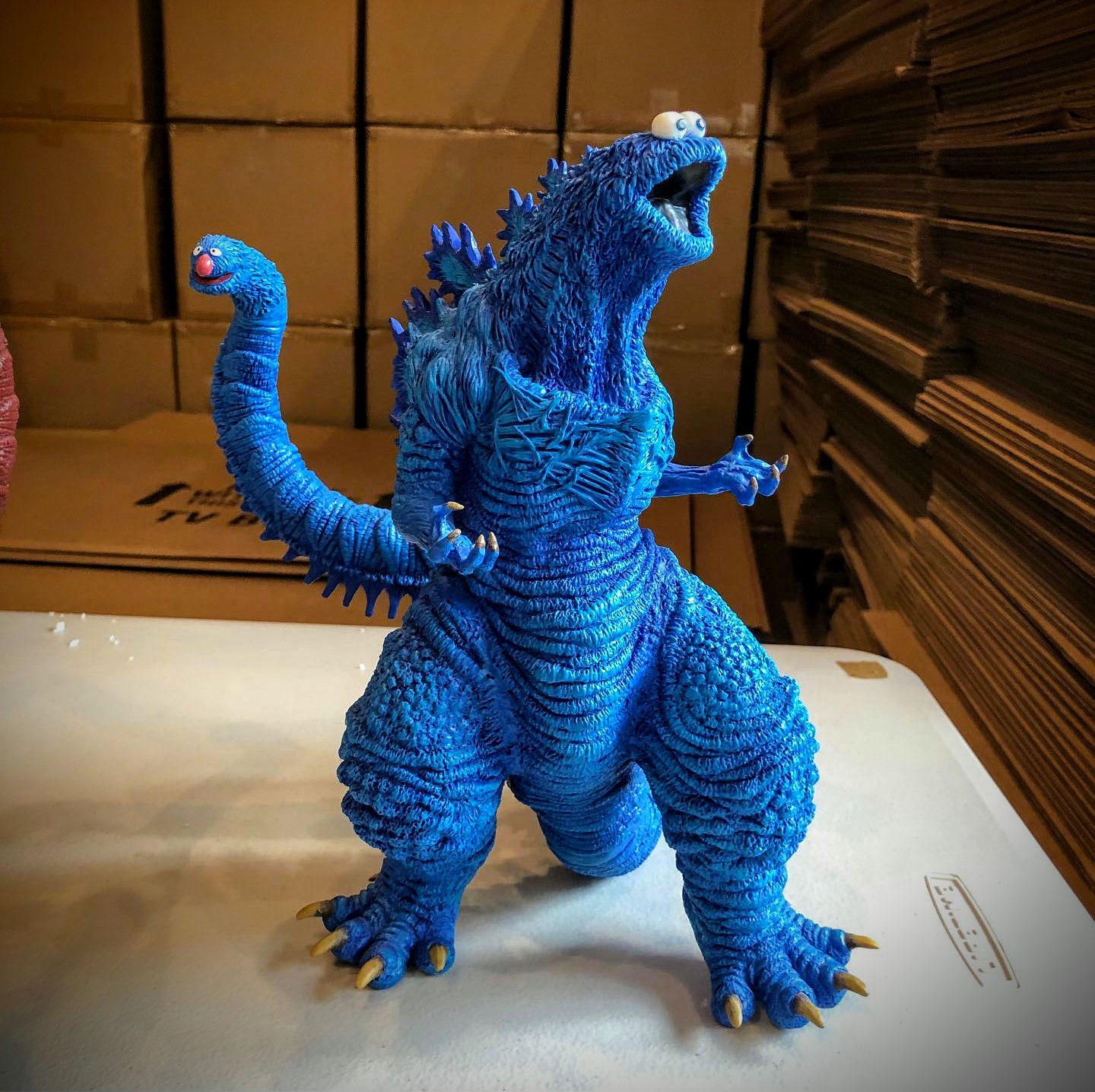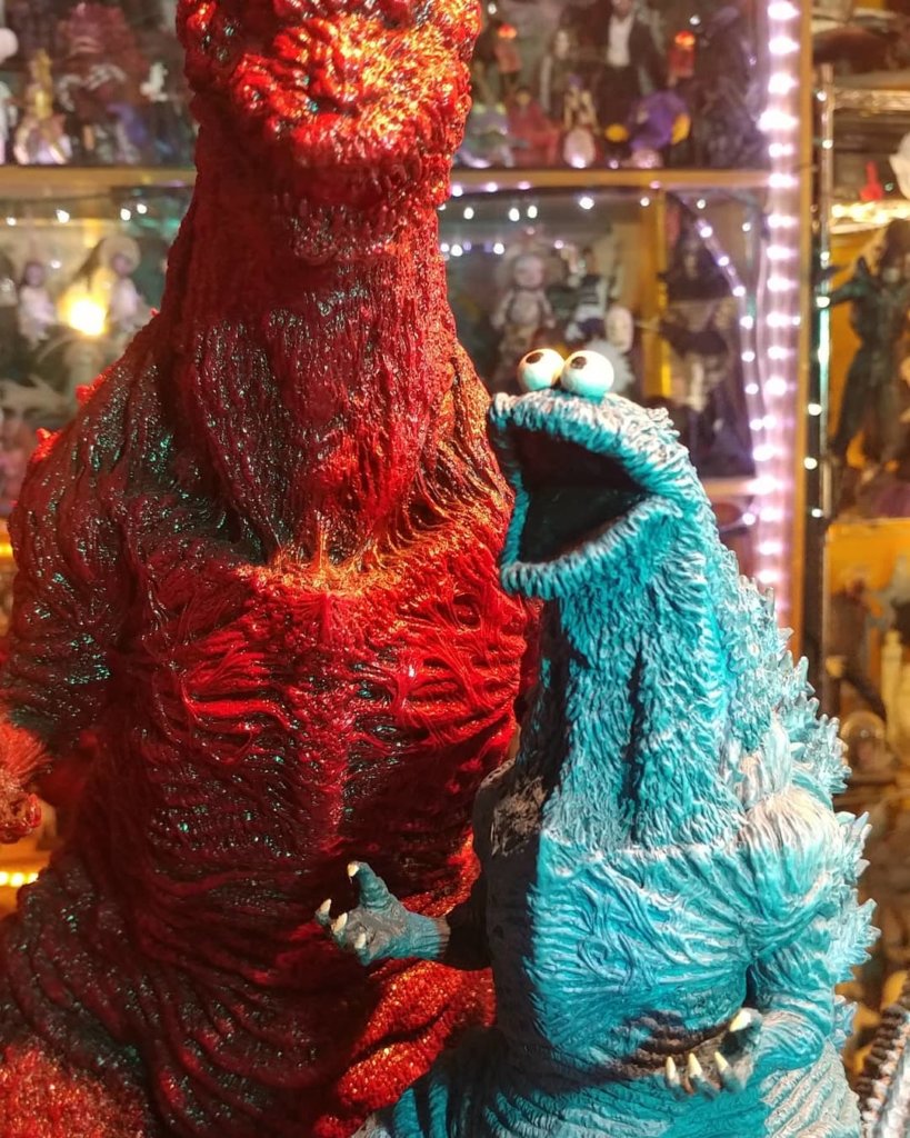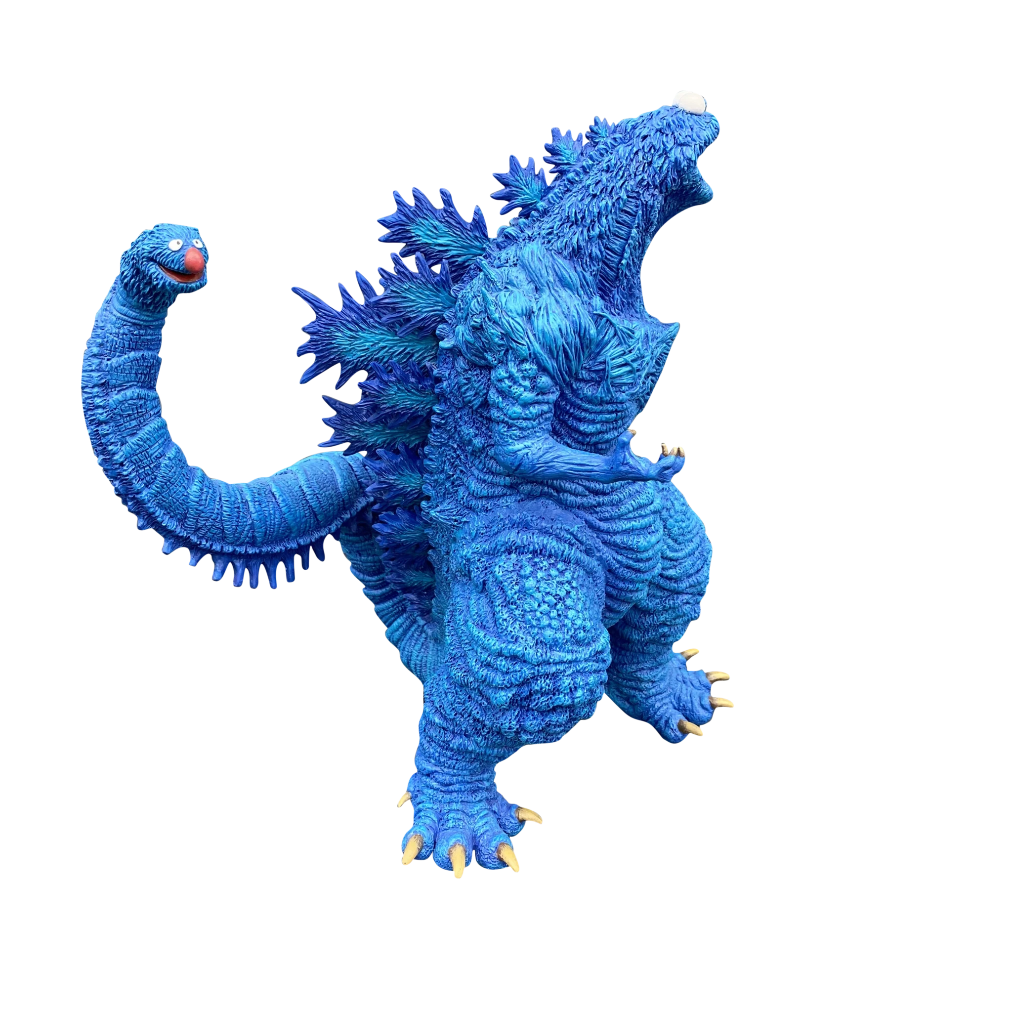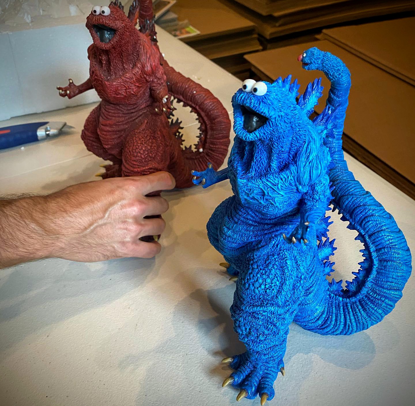 Shin-Cookiezilla is a wild kaiju born from sculptor Gabriel Marquez’ wildly talented imagination and sculpting abilities. Part radioactive lizard, part classic childhood puppet, Shin-Cookiezilla is all fun. And destruction.