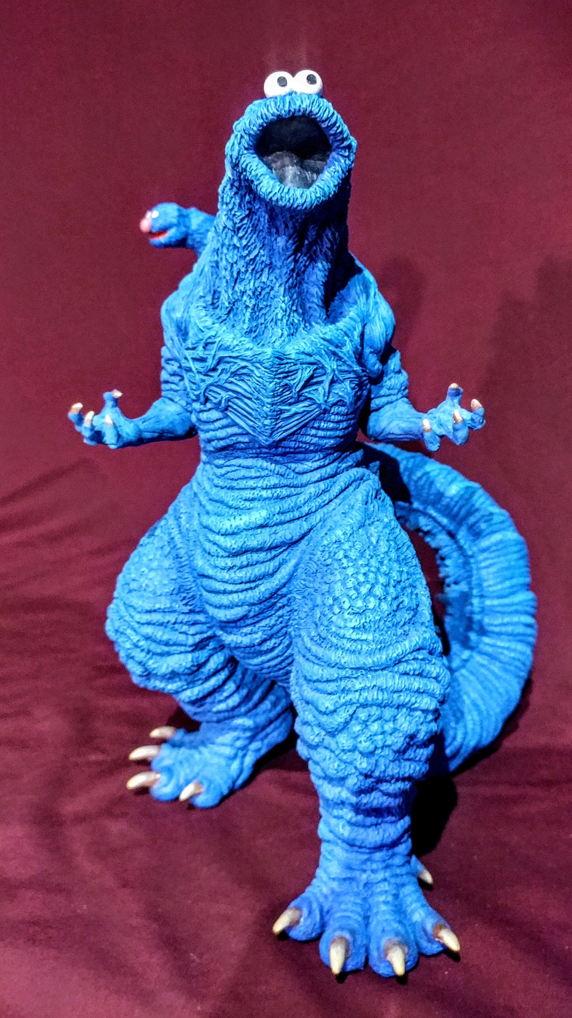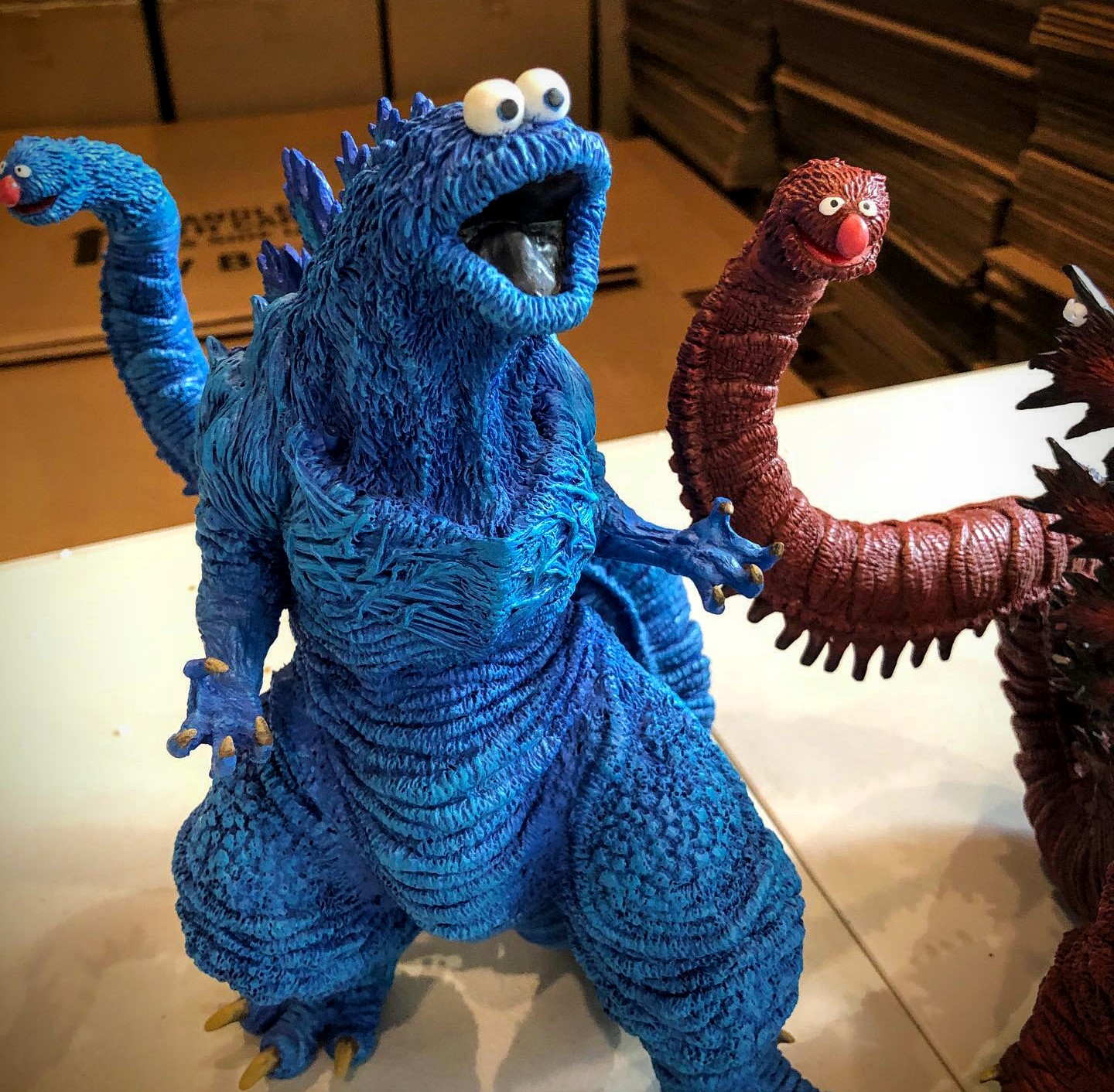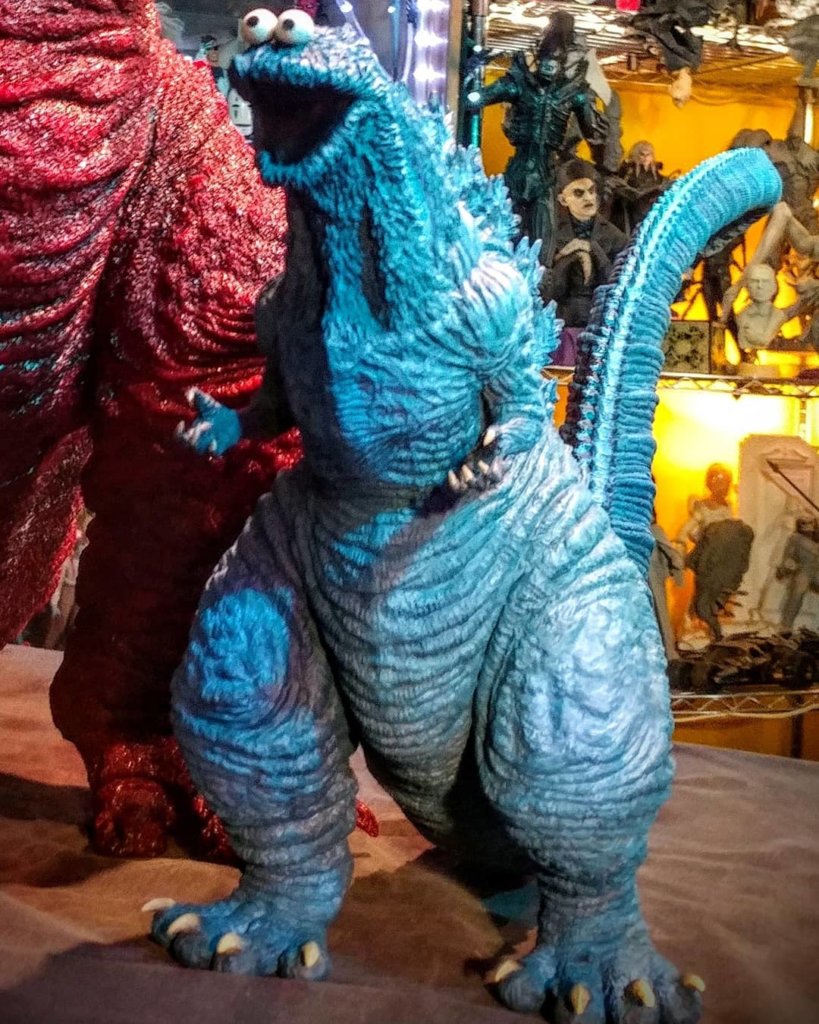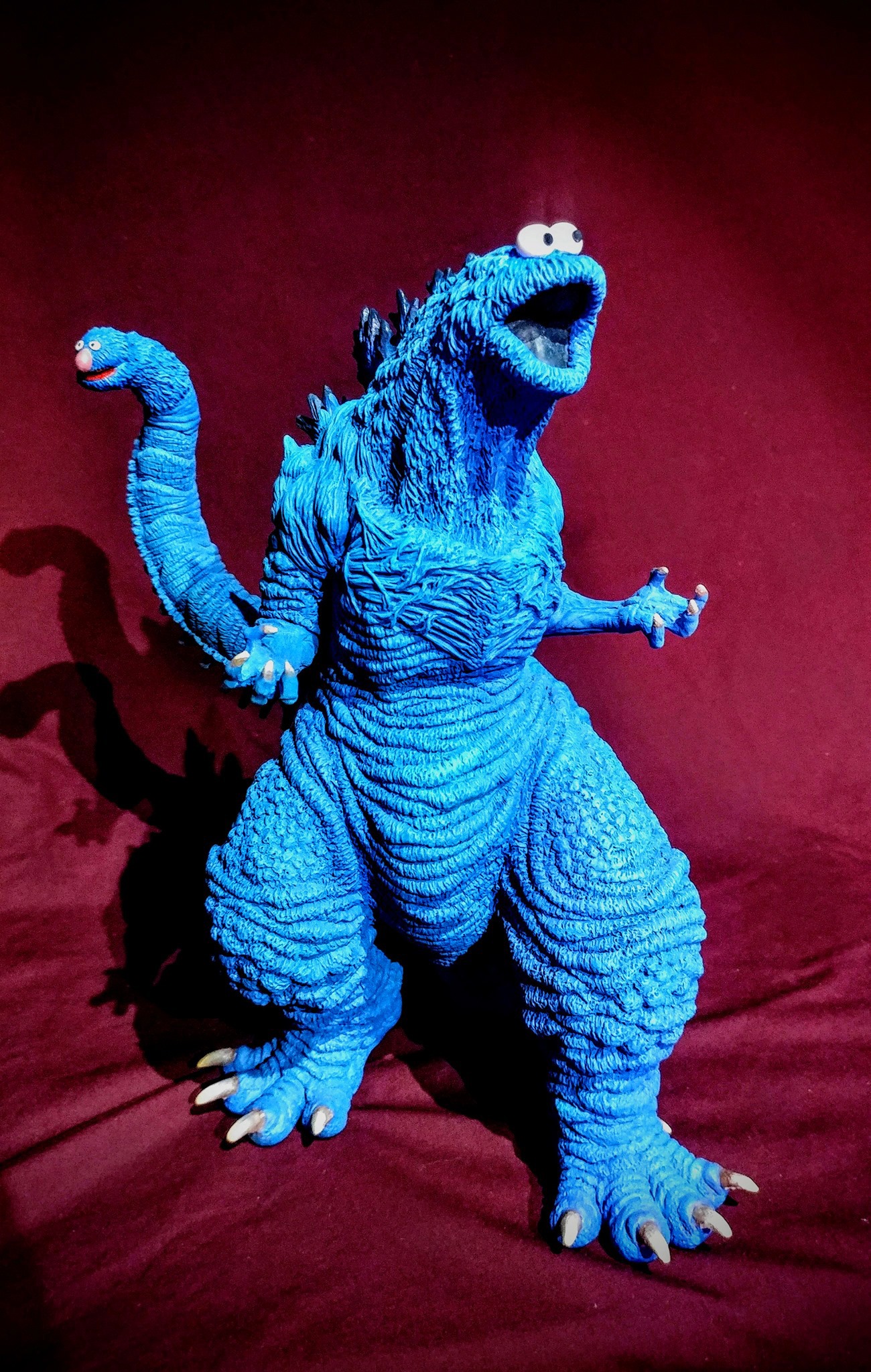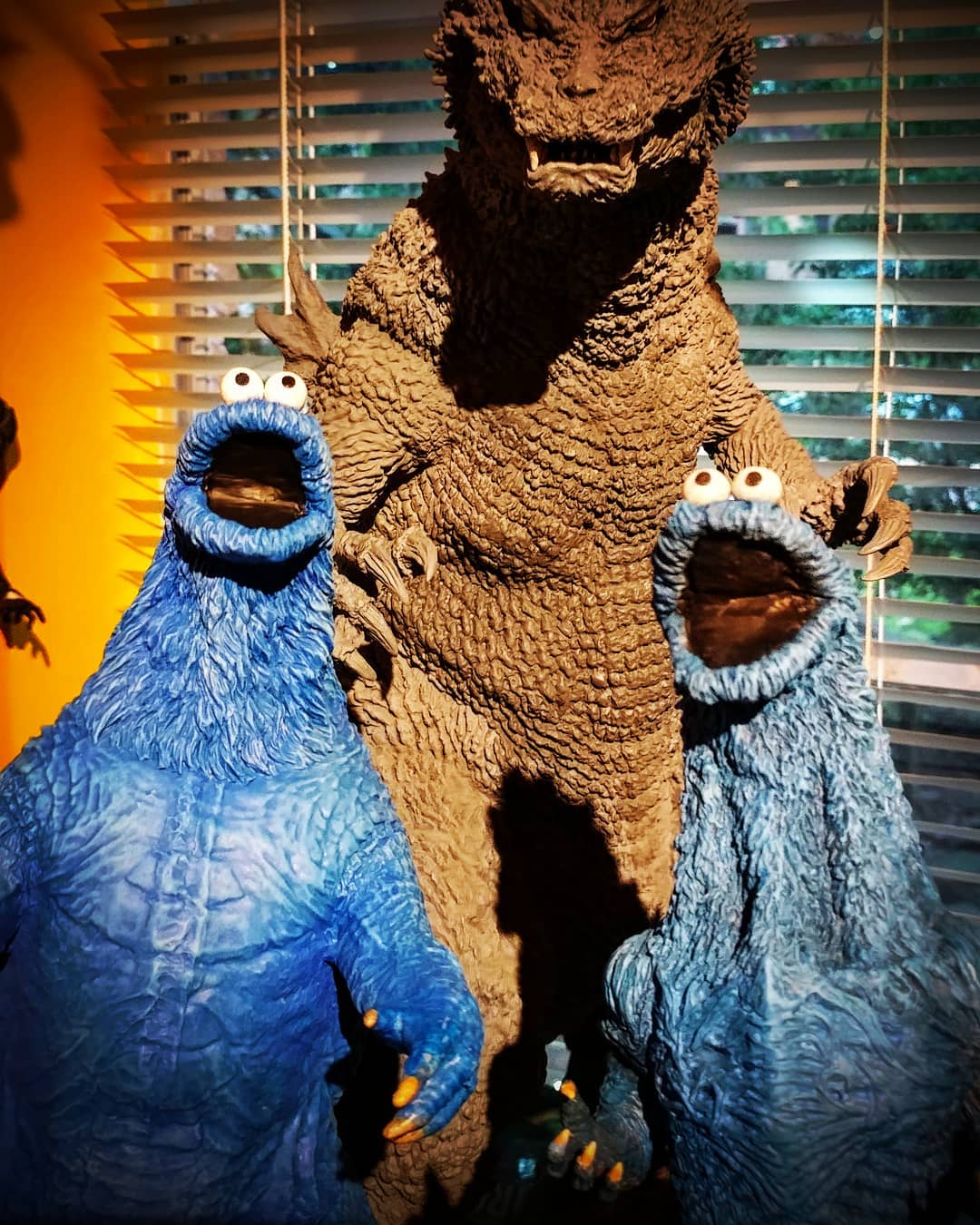 Shin-Cookiezilla is a wild kaiju born from sculptor Gabriel Marquez’ wildly talented imagination and sculpting abilities. Part radioactive lizard, part classic childhood puppet, Shin-Cookiezilla is all fun. And destruction.