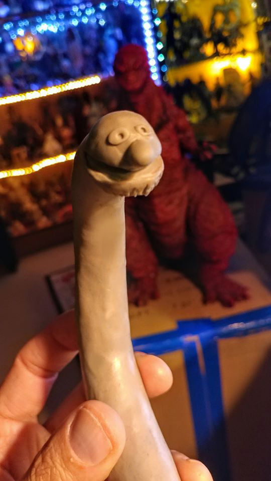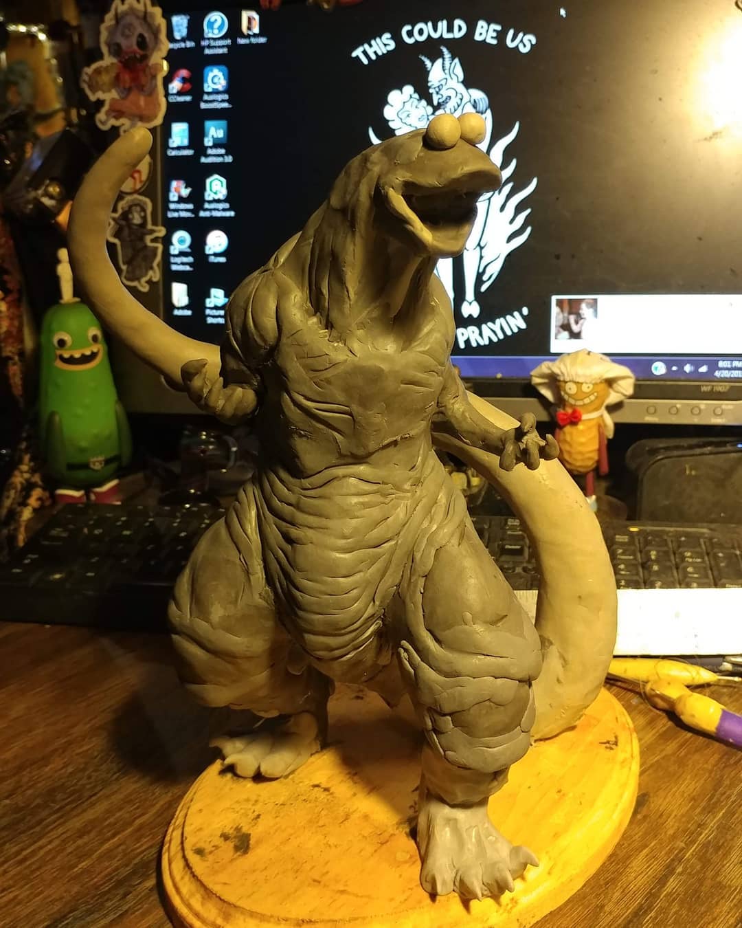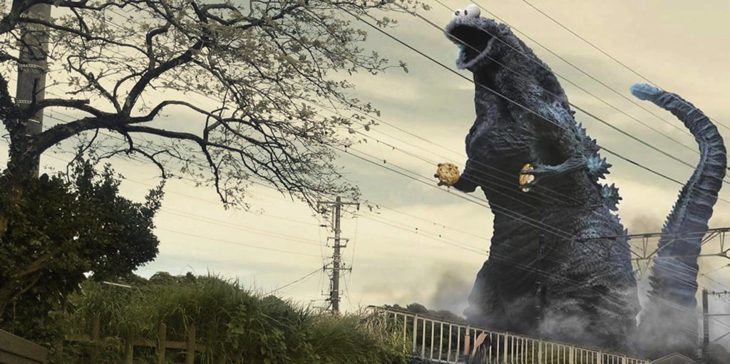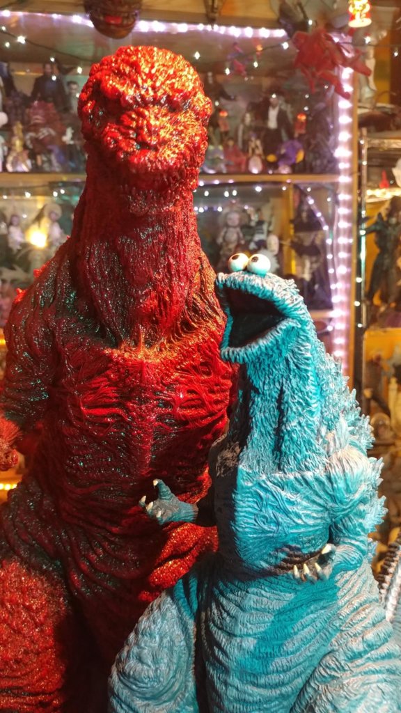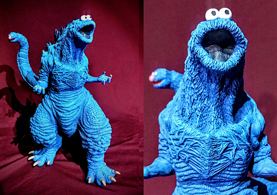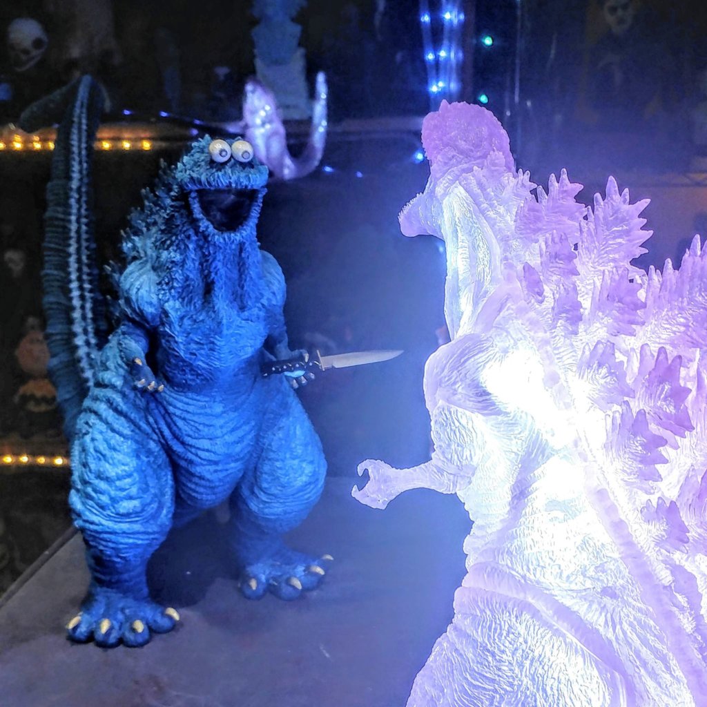 Shin-Cookiezilla is a wild kaiju born from sculptor Gabriel Marquez’ wildly talented imagination and sculpting abilities. Part radioactive lizard, part classic childhood puppet, Shin-Cookiezilla is all fun. And destruction.