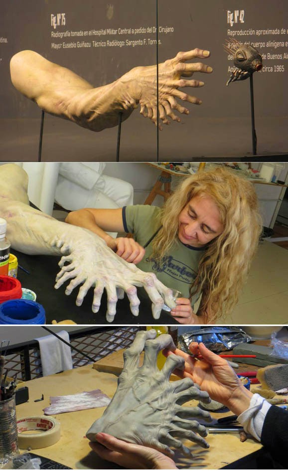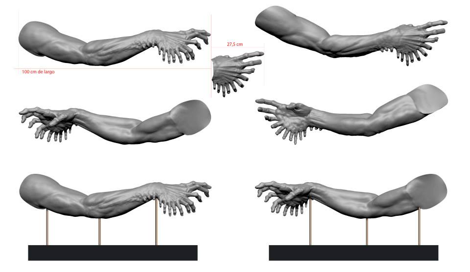 Re-diseño de personajes para Muestra ¨Huellas de una Invasión¨ Acá comparto imágenes de un proyecto soñado y que gracias a Martin Oesterheld, tuve la suerte de ser convocado para encargarme del re-diseño de los personajes de la Icónica Historieta de H.G. Oesterheld . También quiero agradecer especialmente a Hernan y Alejandra por el increíble aporte que hicieron para esta muestra, Cuando se me convocó a la primer reunión de producción supe inmediatamente que ellos tenían que formar parte del equipo. Idea Original y supervisión Artística de Martín Oesterheld. Dirección General: Martín Grossman. Dirección escenográfica: Adriana Maestri. Coordinación: Gustavo Kotik / Mercedes Urquiza Terminación del brazo del Mano (textura final y pintura) , la realización fisica, los mecanismos y la pintura del Teledirector y la pintura de los cascarudos, el cráneo del Gurbo y el Gurbo que está en la maqueta: Alejandra Jorquera Hernan Azcarate Tallado Cascarudos en tamaño real, Impresión 3D del Gurbo Maqueta: Gisela Kraisman. ( https://www.facebook.com/gisela.kraisman?fref=ts ) Renderisado cabeza Manos: Daniel Bel HernányAle Azcárate-Jorquera Alejandra Jorquera Art Adriana Maestri