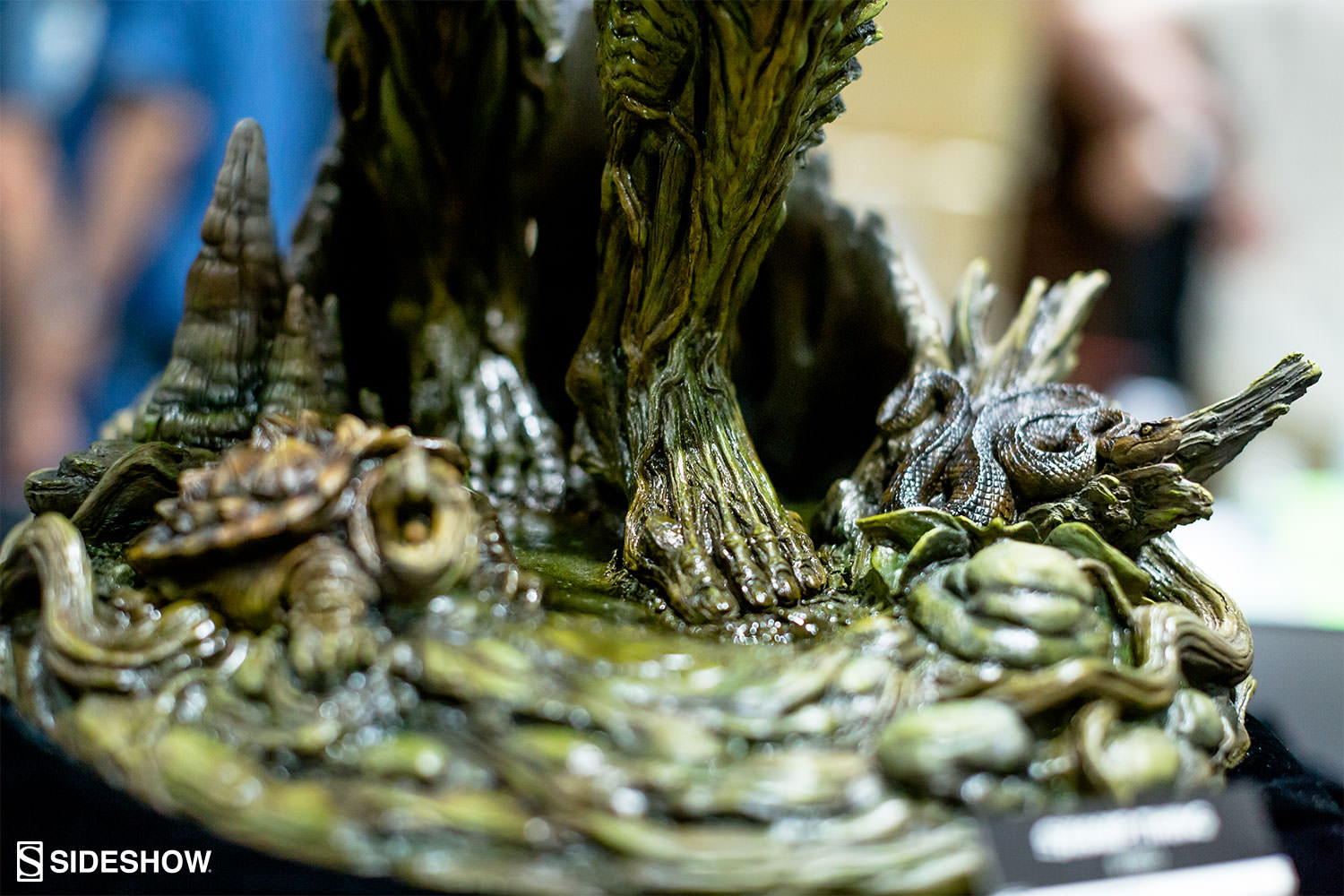The Swamp Thing Maquette measures 24” tall on an environmental polyresin base designed to emulate the muck and mire from which he has emerged. There is a clear water feature beneath his feet, as well as a muddy embankment with trees and various swamp fauna.