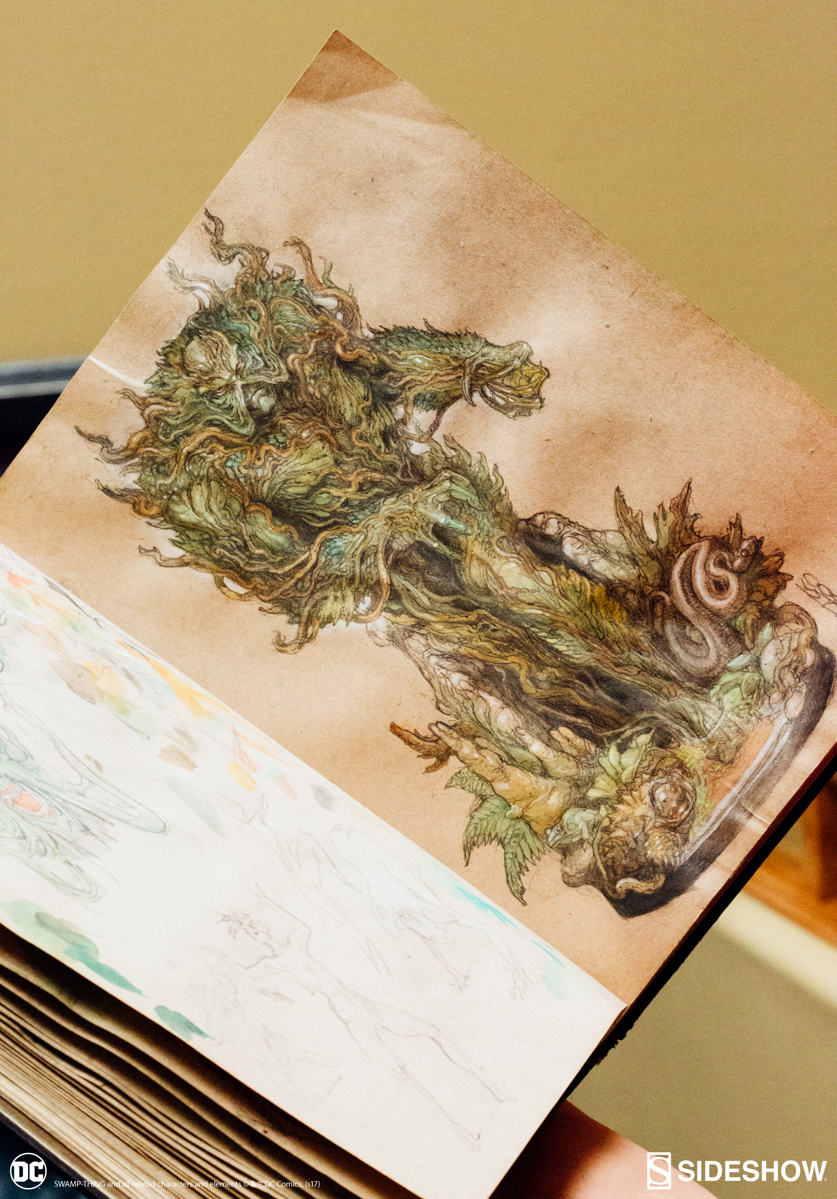 “The tuberous growths on Swamp Thing’s back,” Komoda said, “are meant to reference the hallucinogenic sweet potatoes the character produces in the comics.”