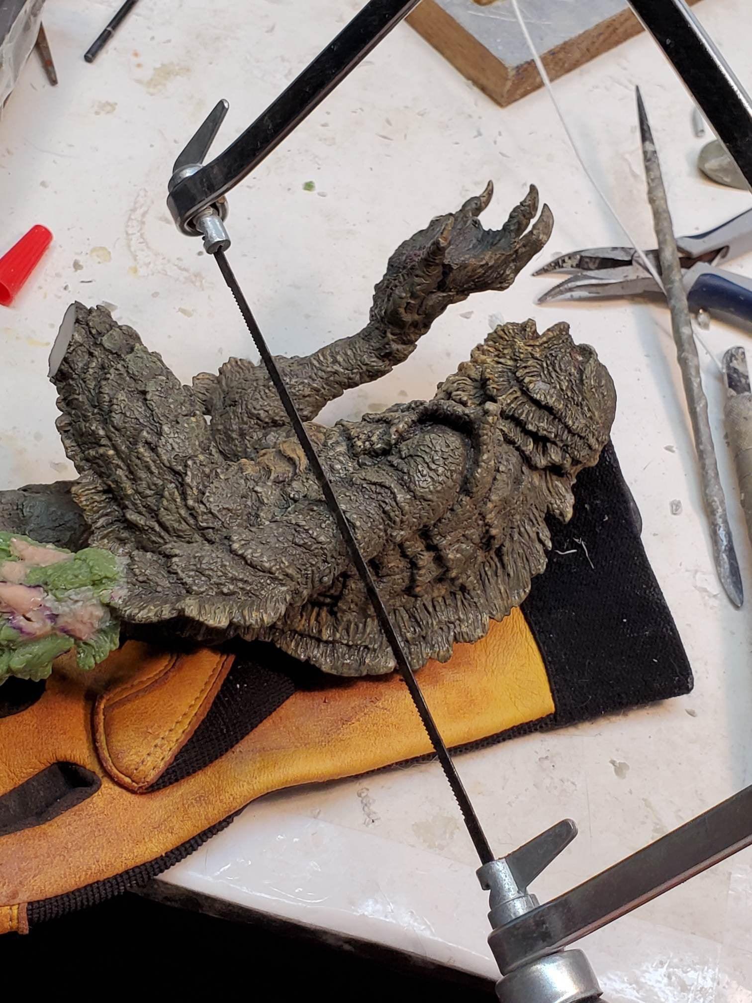 Fixing this guy up in preparation for producing kits. His arms are off in this shot. We have the original and one artist proof casting and we are combining the best bits of the two as well as completely re-sculpting some parts.