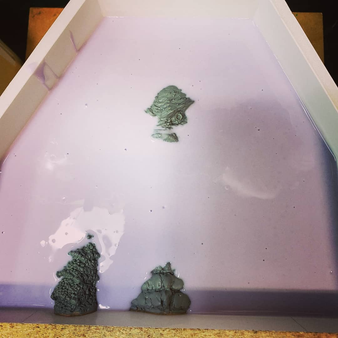 The original sculpture in pink Super Sculpey mixed with green Fimo.