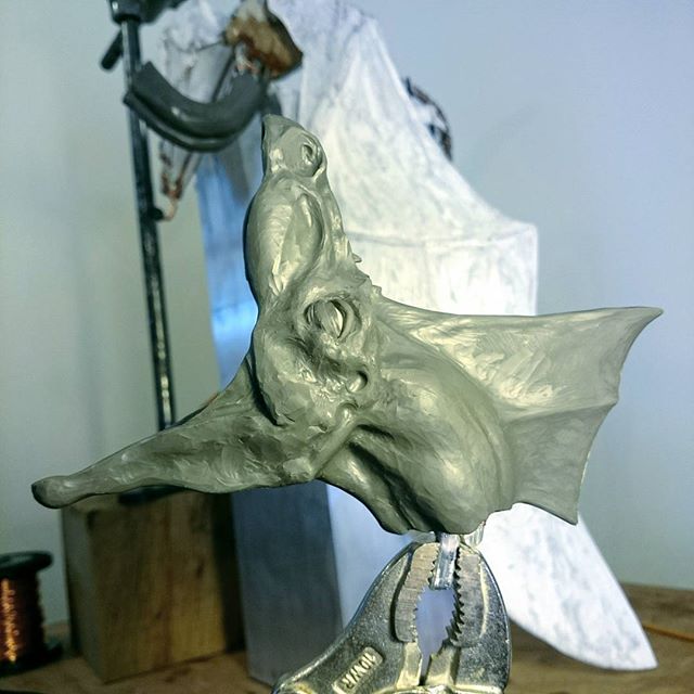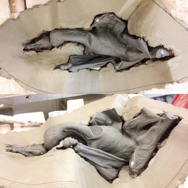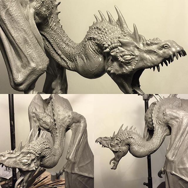 I have sculpted the dragon just prior to spitting fire, in full threat display. The eyelids are rolling up to protect the eyes; the nictitating membrane is also starting to move over, to further protect the eyes.