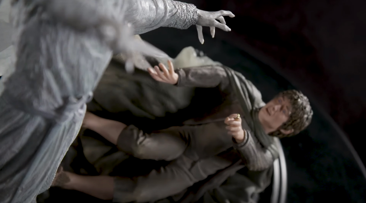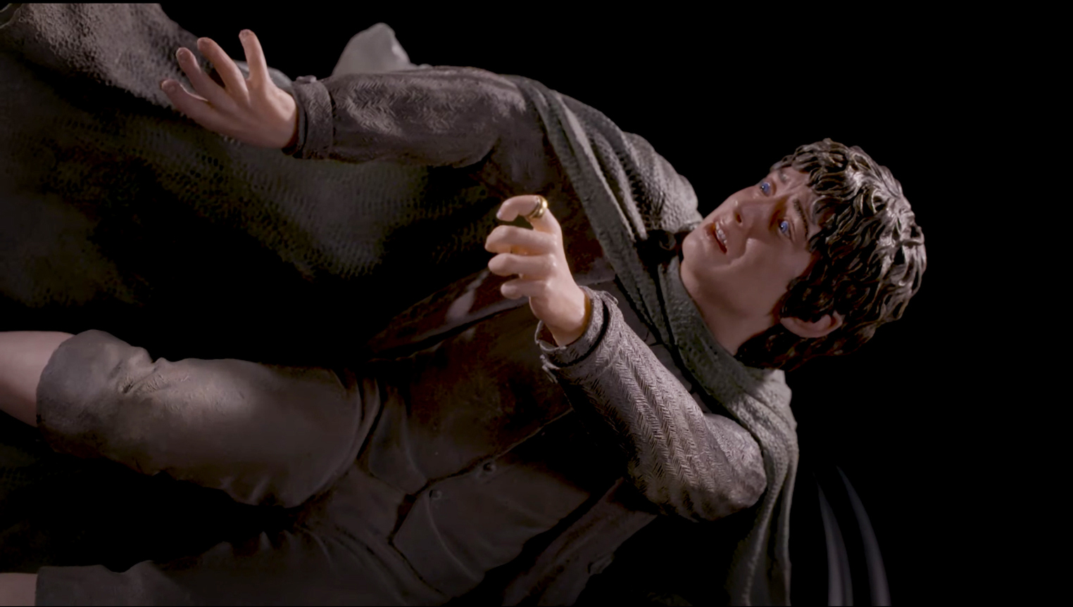 Having Frodo already knocked to the ground and the Wraith leaning over him really emphasized the peril. This statue has given us the chance to do something no one has done in previous collectible depictions of this scene or its characters, which has been to include some of the environment, whipped and distorted by Wraith-world effects. Peter Jackson crafted the Wraith-world to have a kind of tumultuous atmosphere, with a whipping spiritual wind that seemed to tug at the edges of everything in that space. This is great because it has afforded us the opportunity to imbue the statue with a sense of movement and energy. It’s exciting to know that soon we’ll be able to reveal how sculptor Jane Wenley and the team recreated this incredible scene as a piece of collectible art.