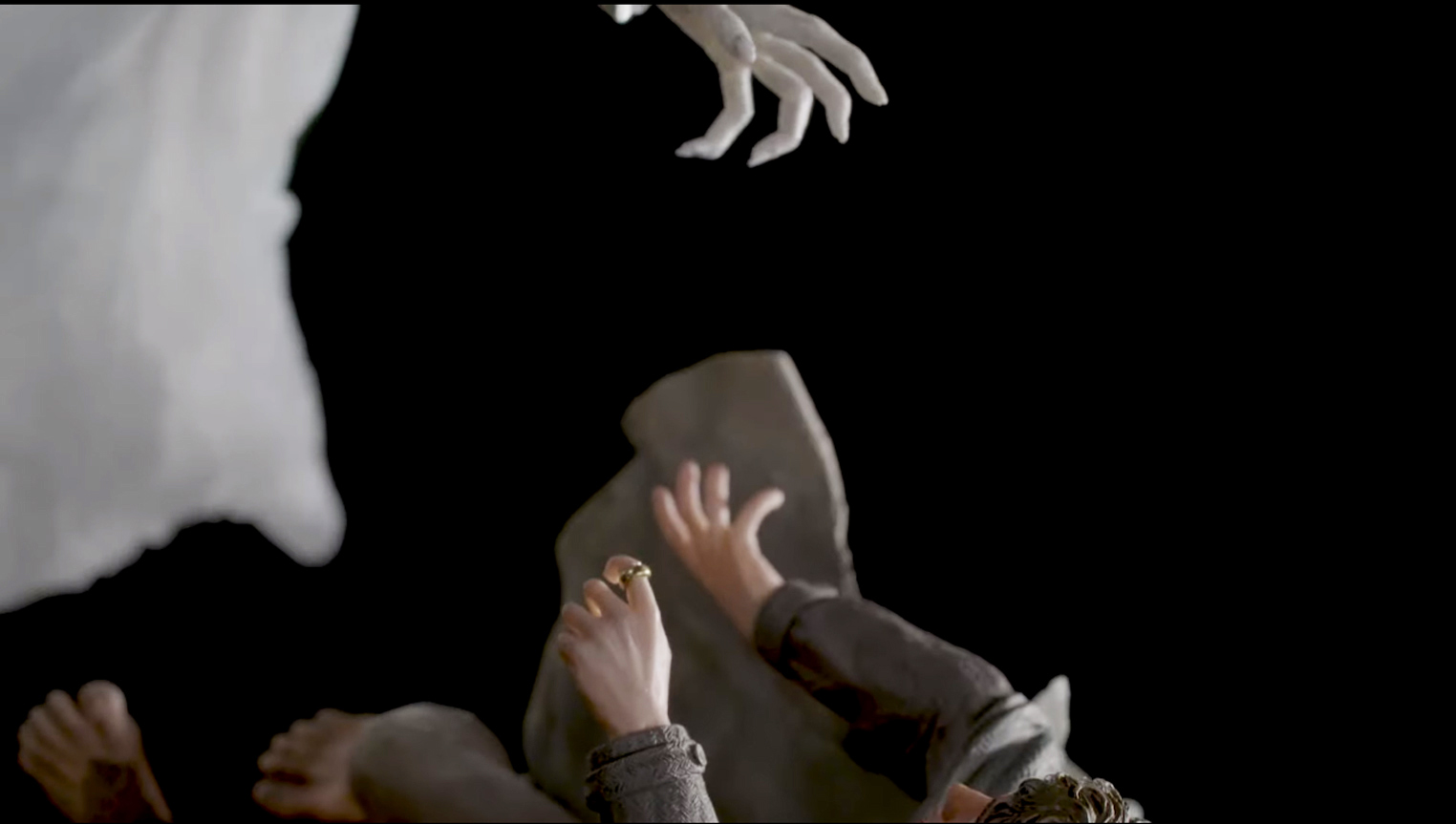 : Elements whipped & distorted by Wraith-world effects create the sense the Witch-King is in a different elemental space, distanced from the Hobbit;