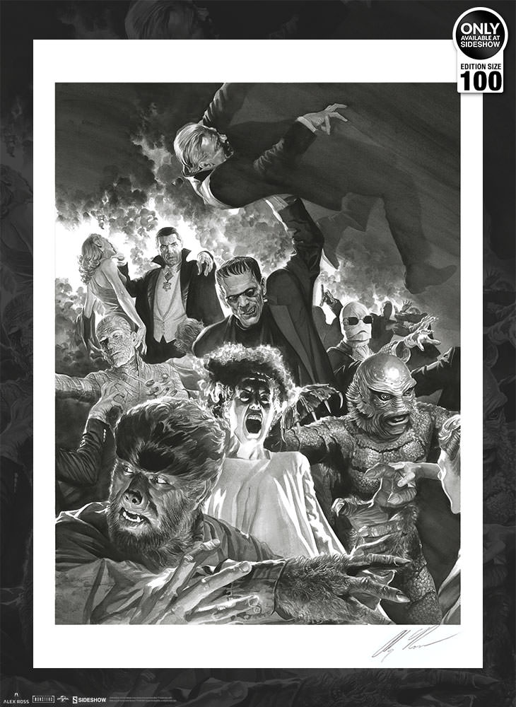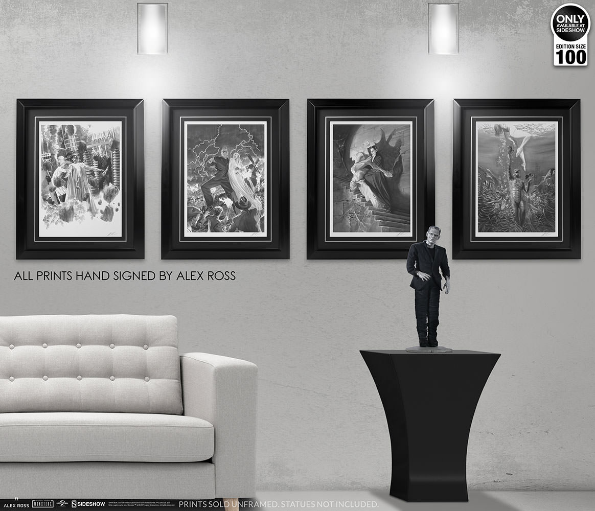 Sideshow and Alex Ross Art are proud to announce a new exclusive set of limited edition fine art lithograph prints inspired by the Universal Monsters from comic book legend Alex Ross.