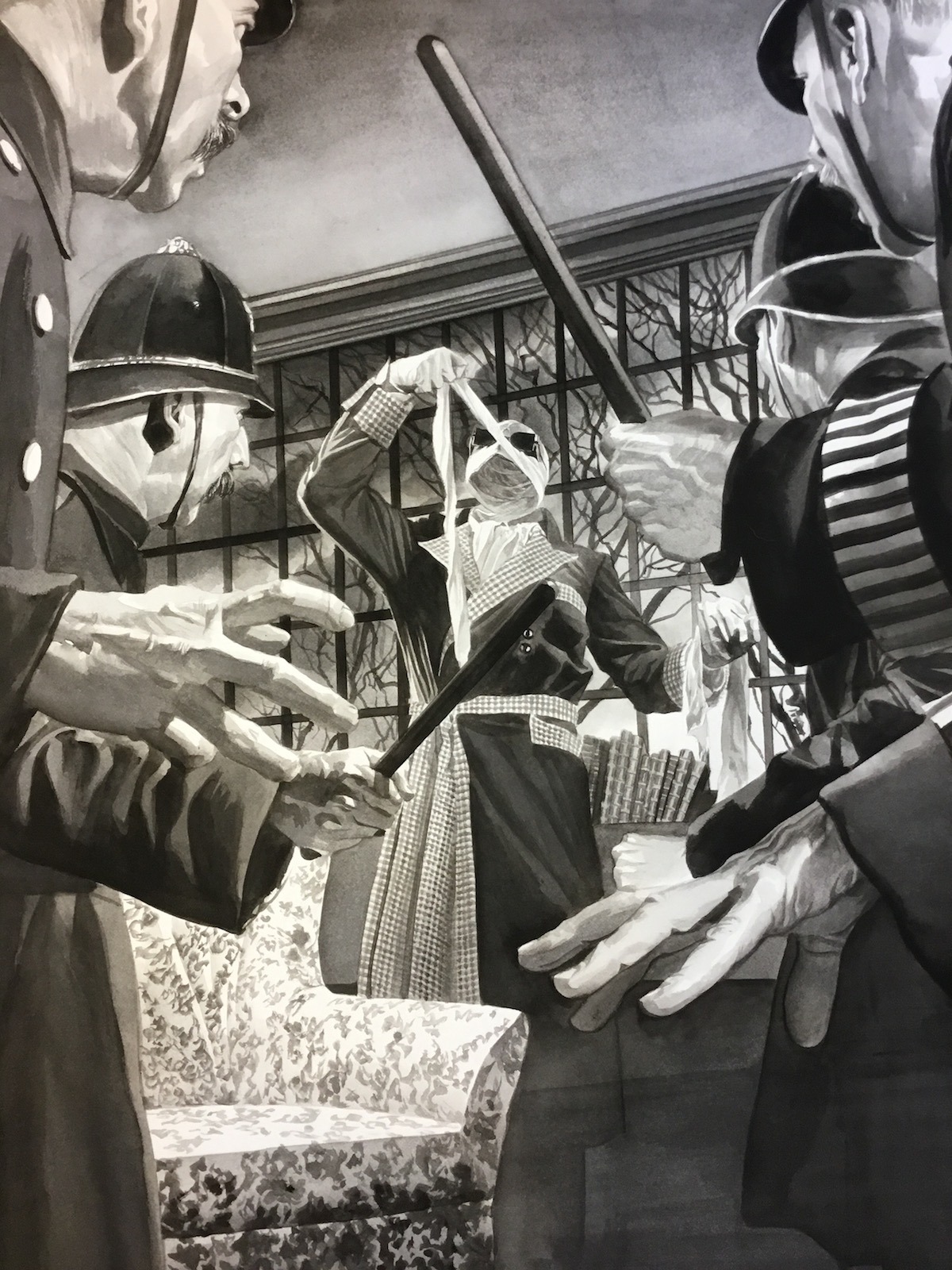 In recent years, Ross has applied his artistic skills to outside projects with comic book roots, including a limited-edition promotional poster for the Academy Awards. In 2015, Alex was chosen by Apple Corps LTD to be commissioned as the first artist in over 30 years to paint the Fab Four. Driven by the Beatles legendary music and inspired by the generation’s new trends in art, “Yellow Submarine” is a classic of animated cinema. Alex has often been referred to as ‘the Norman Rockwell of comics’ yet his “Yellow Submarine” piece reveals the similarly powerful influence of master surrealist Salvador Dali, whom Alex has also recognized as a guiding influence on his style.