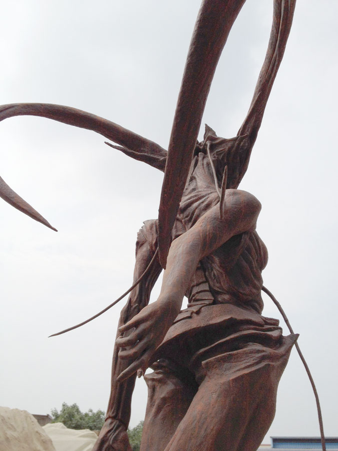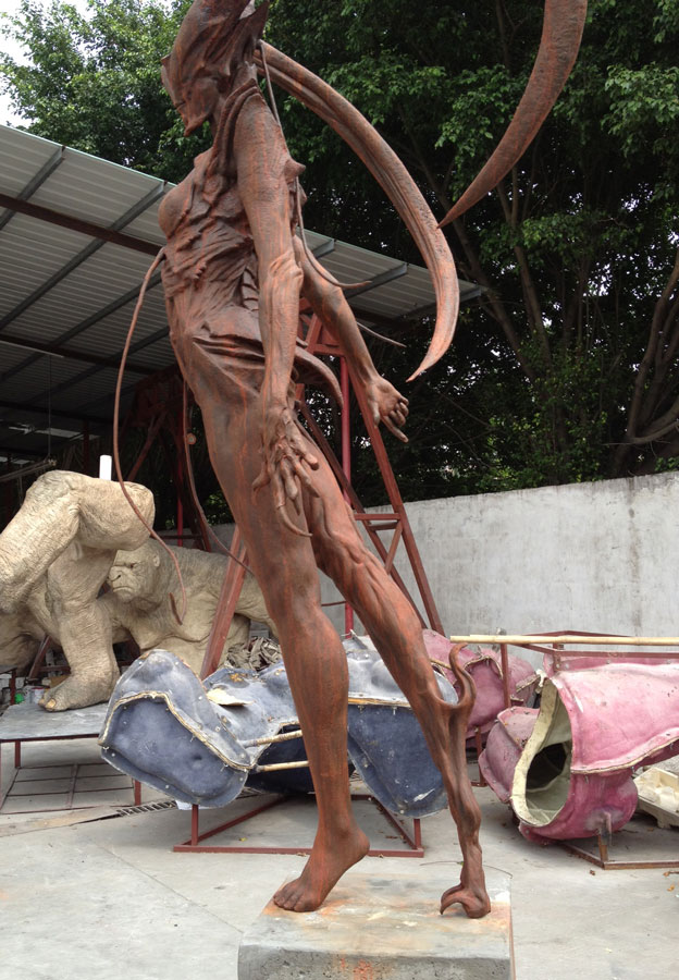 A pic from the studio of the life sized bronze demon girl figure. she stands off the base around 6ft.
