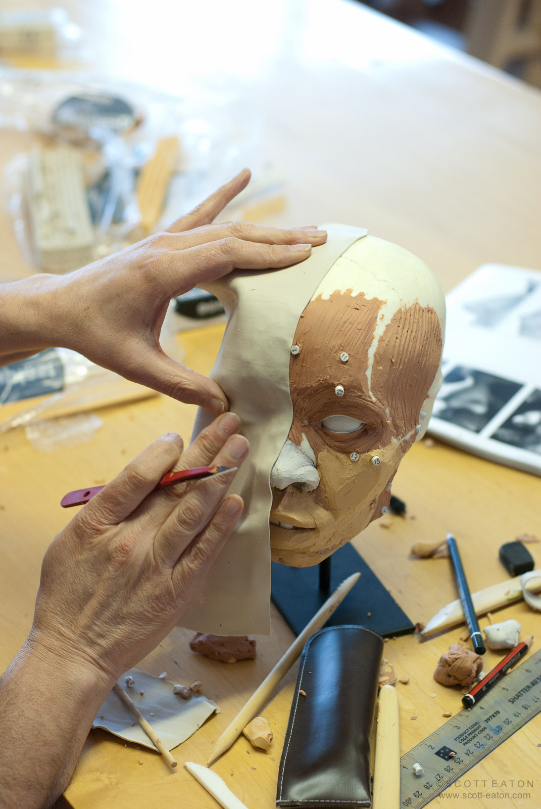 Over three days, ten artists got a chance to build a face from the inside out, gaining insight into how soft tissues modify the structure established by the skull to create the final surface forms that we see in life. The course draws heavily on reference from plastic surgery, medical imaging, forensic reconstruction, and classical portraiture techniques. Upcoming WorkshopThe gallery below shows the step-by-step progression of the reconstruction exercise.