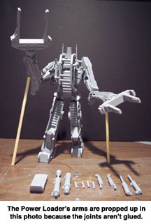 - Material: Mostly resin, but it will include rubber tubing for the hydraulic hoses, metal mesh for the roll cage over the figure’s head, styrene rod for some details on the Loader. It will also have a clear, vacu-formed dome for the emergency beacon on the top.