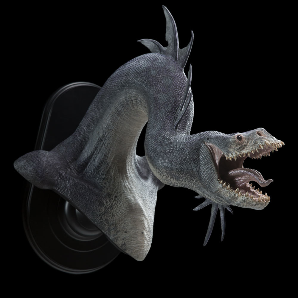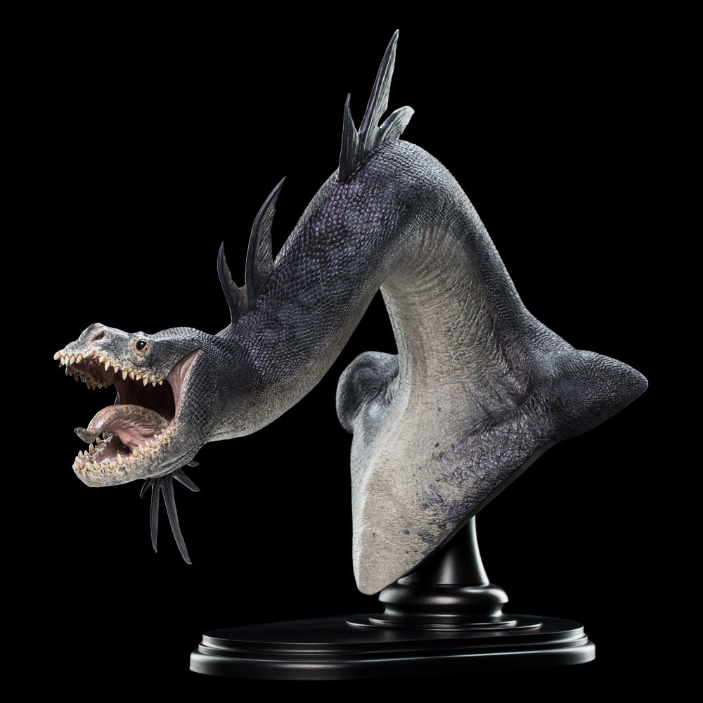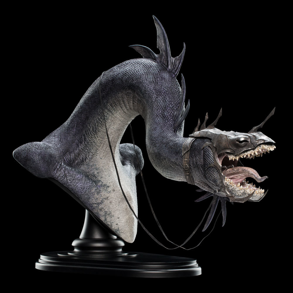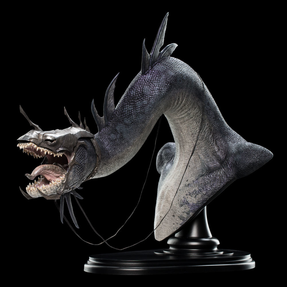 Two decades after he helped design the creature for The Lord of the Rings, Weta Workshop sculptor Jamie Beswarick revisited the Fell Beast, this time capturing its snarling visage as a highly detailed polystone bust. Created using the same traditional physical sculpting techniques honed on the trilogy, the bust can be wall-mounted or displayed on its stand; a masterpiece of fantasy film art.