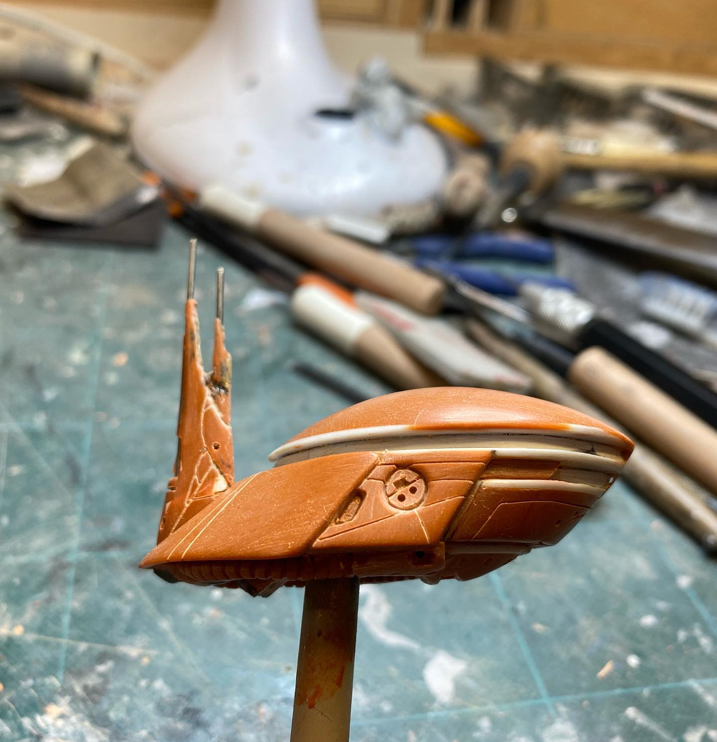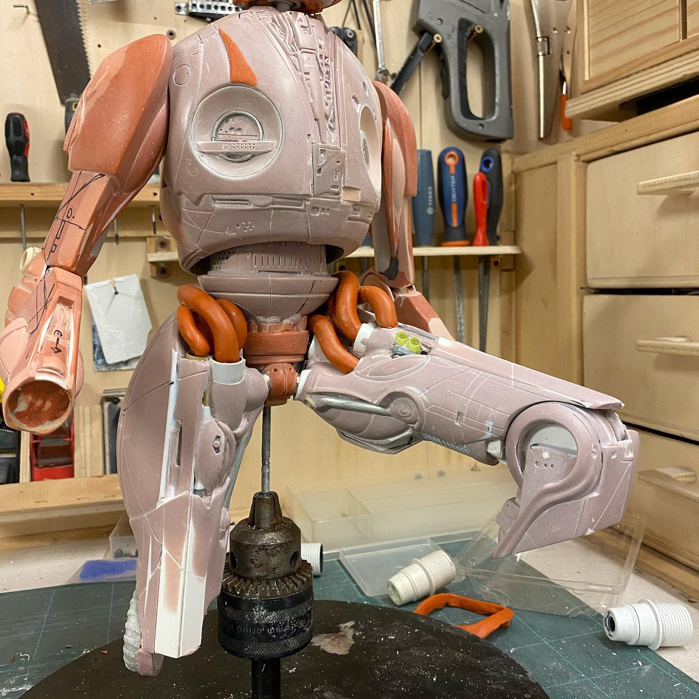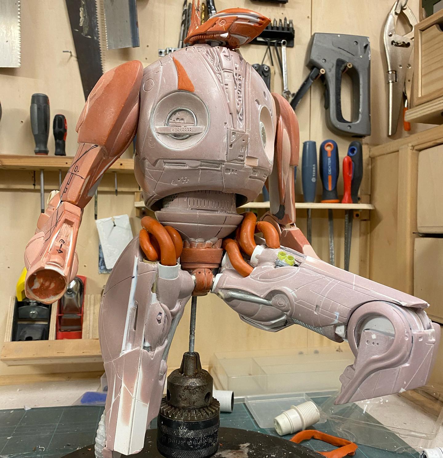 So the figure lacks of lower legs information, but i think this add even more fascination to this design. The sculpture was done by Aves Clay pink and orange on a foam frame.