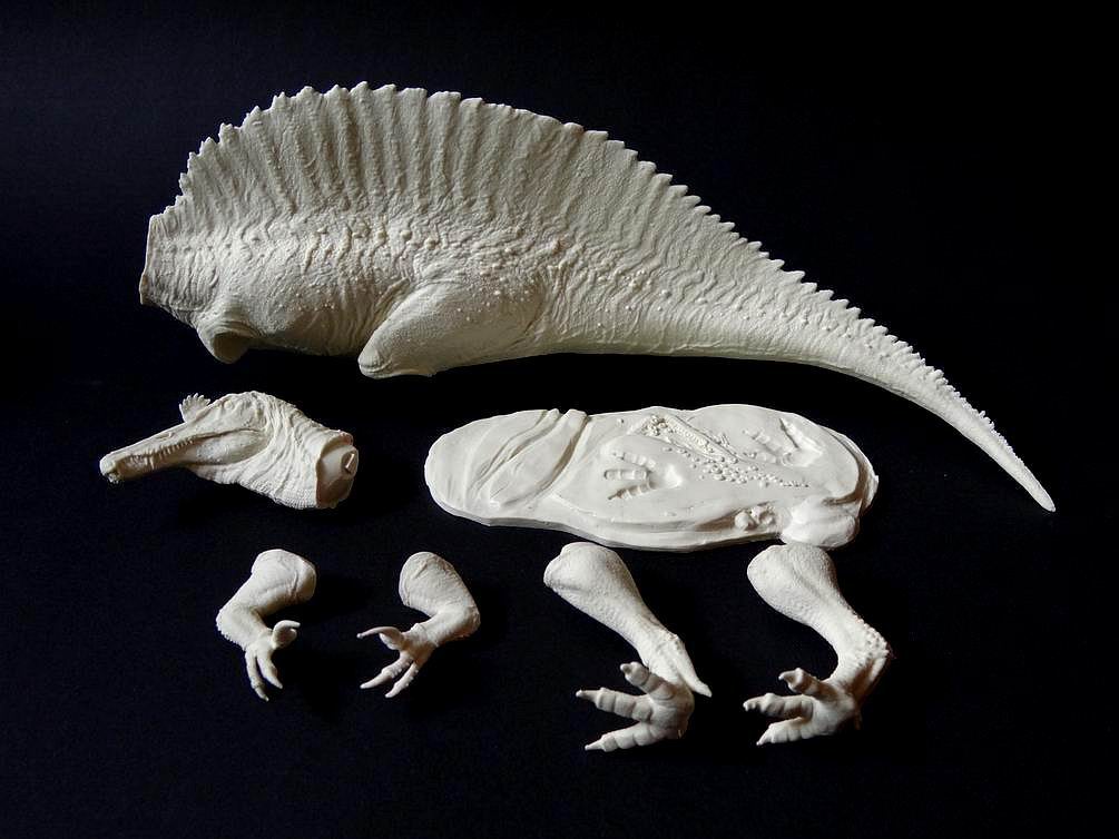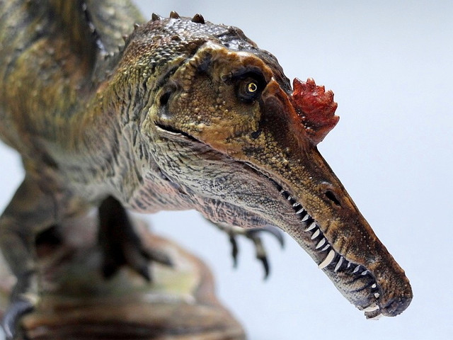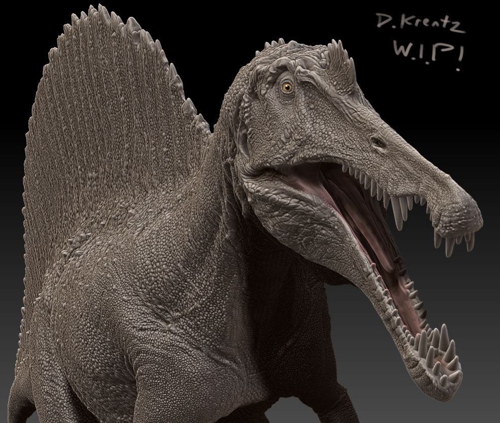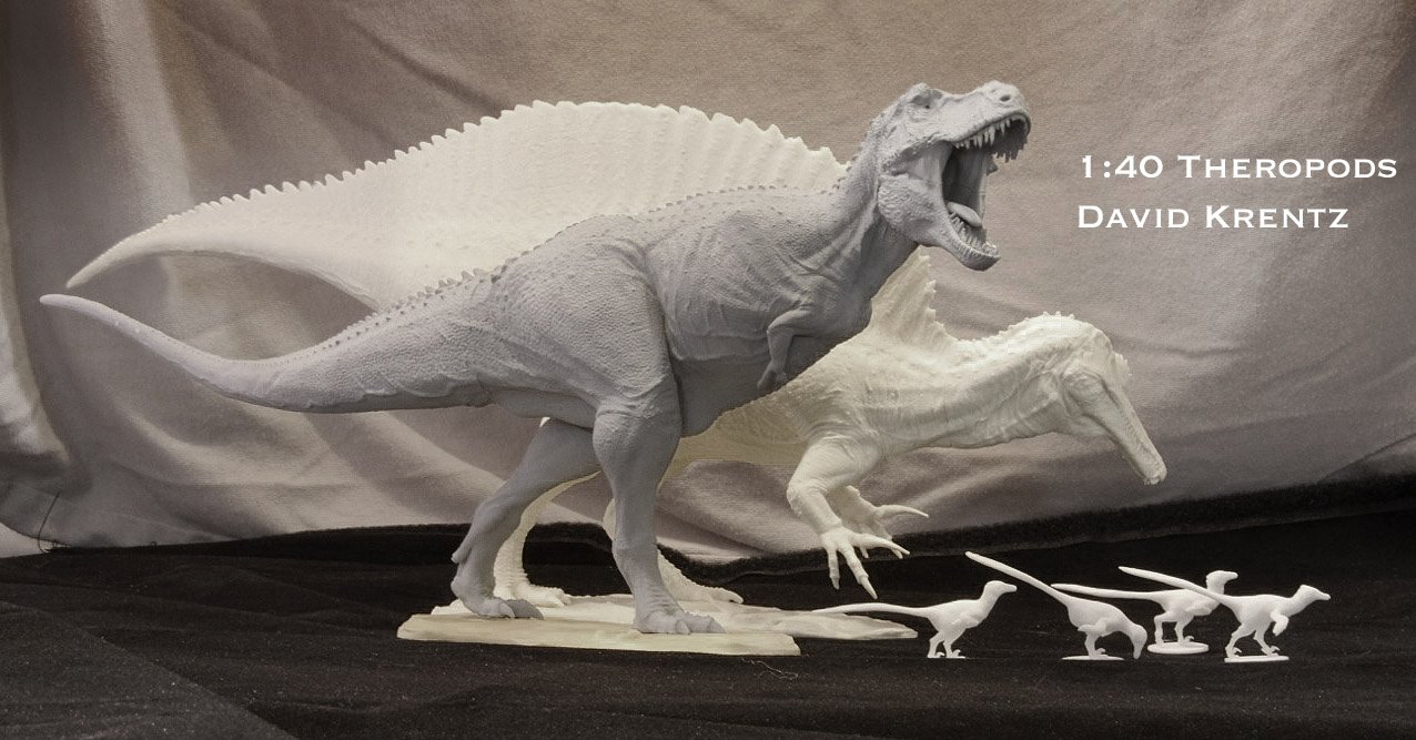 World-renowned paleoartist David Krentz, whose work can be seen in Disney' Dinosaur, Discovery's Dinosaur Revolution, and the Walking With Dinosaurs 3D movie, released this 1:40 scale model of Spinosaurus in 2014. David crafted the figure as a three dimensional computer model, allowing the integration of massive surface textures and tremendous detail. The model is then "printed" as a physical piece, and cast in resin for all to enjoy.