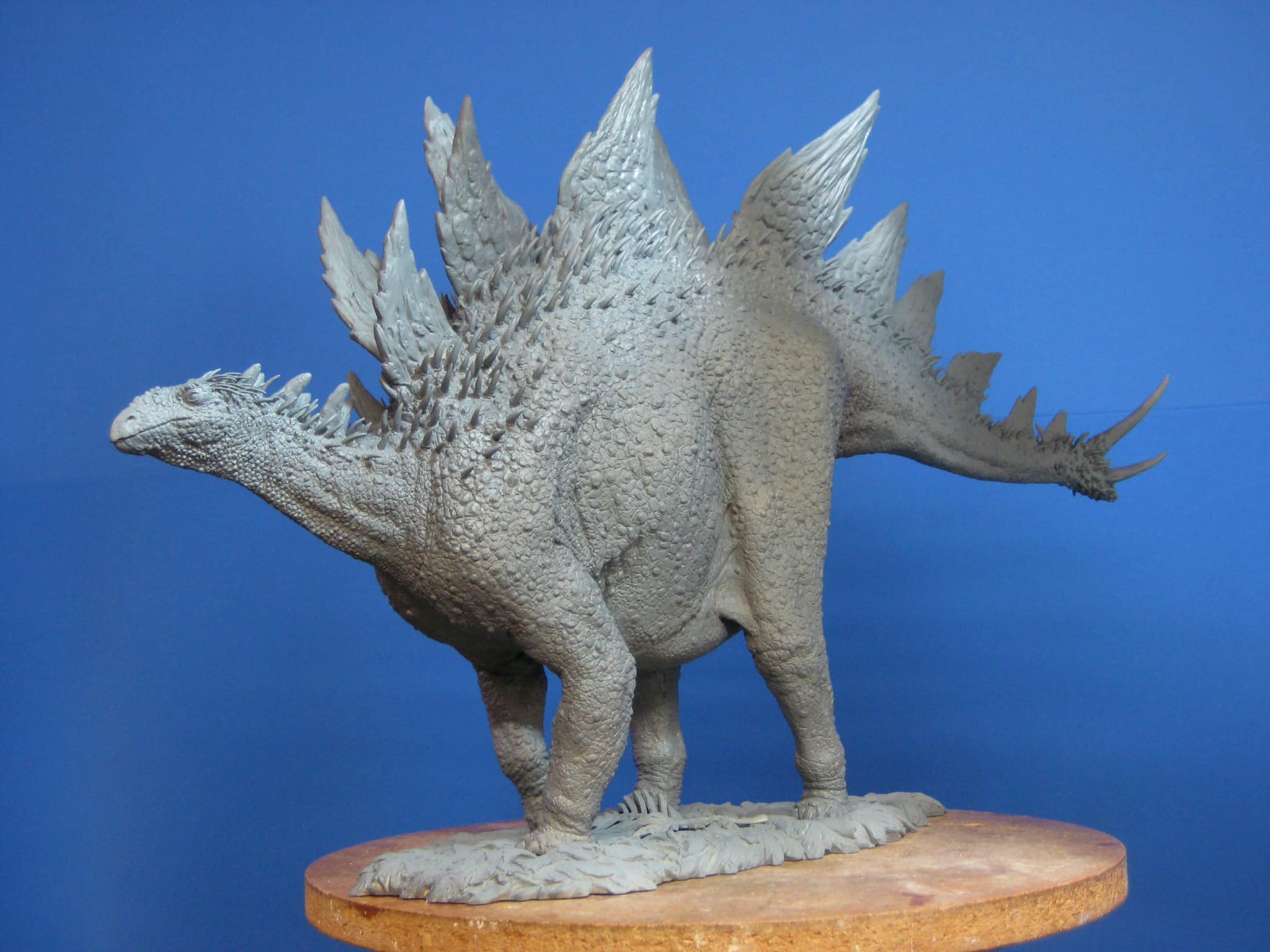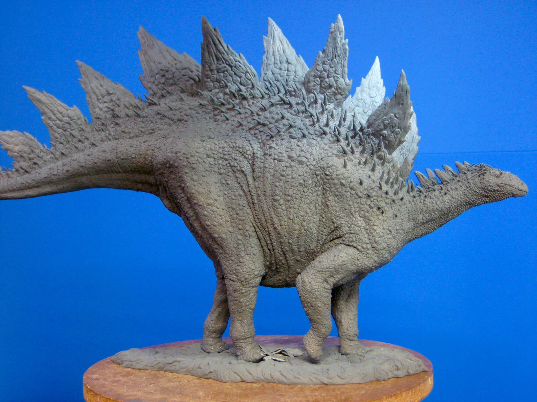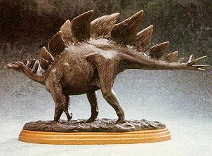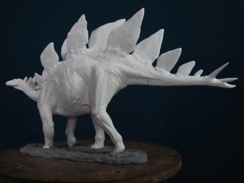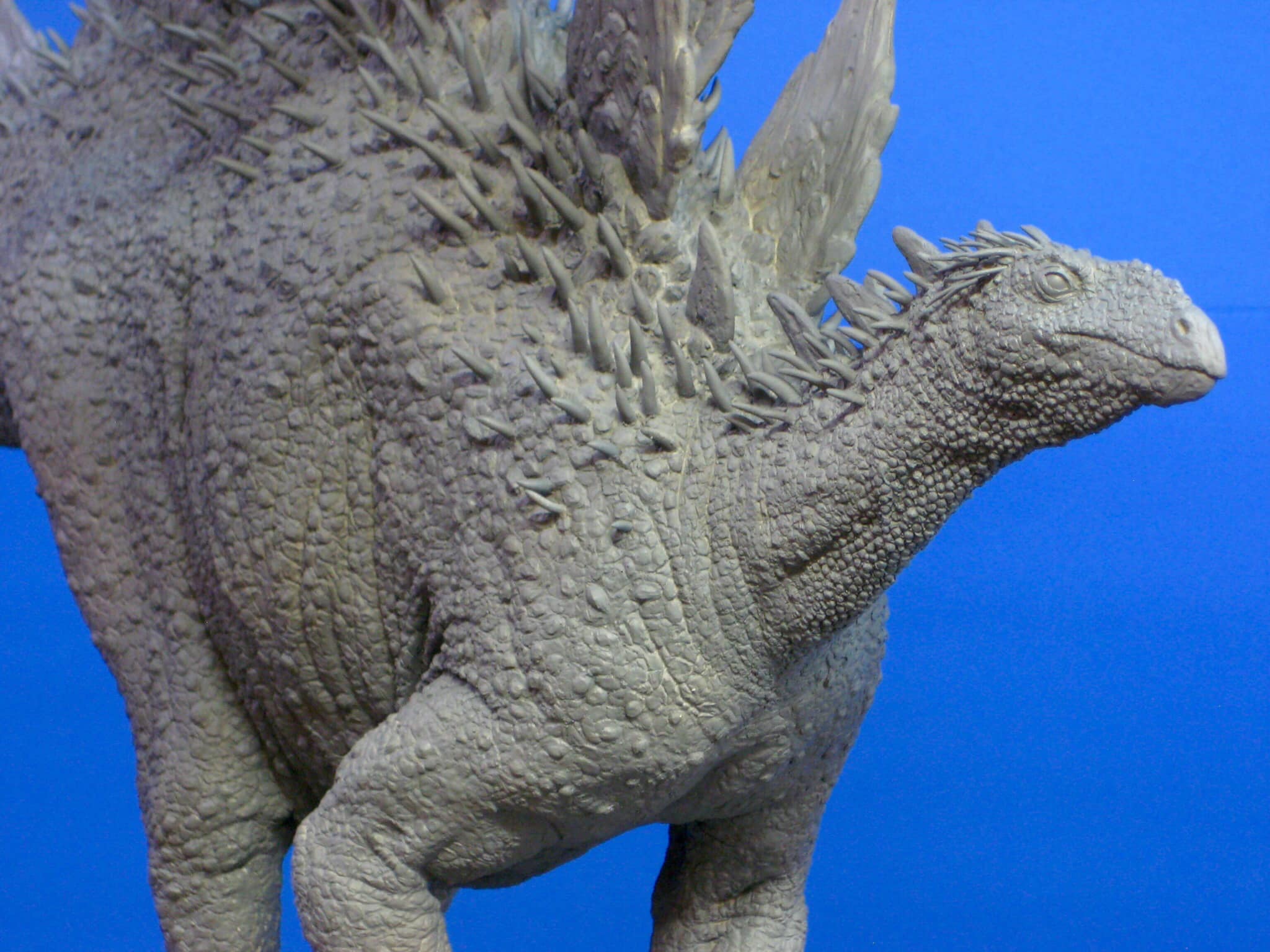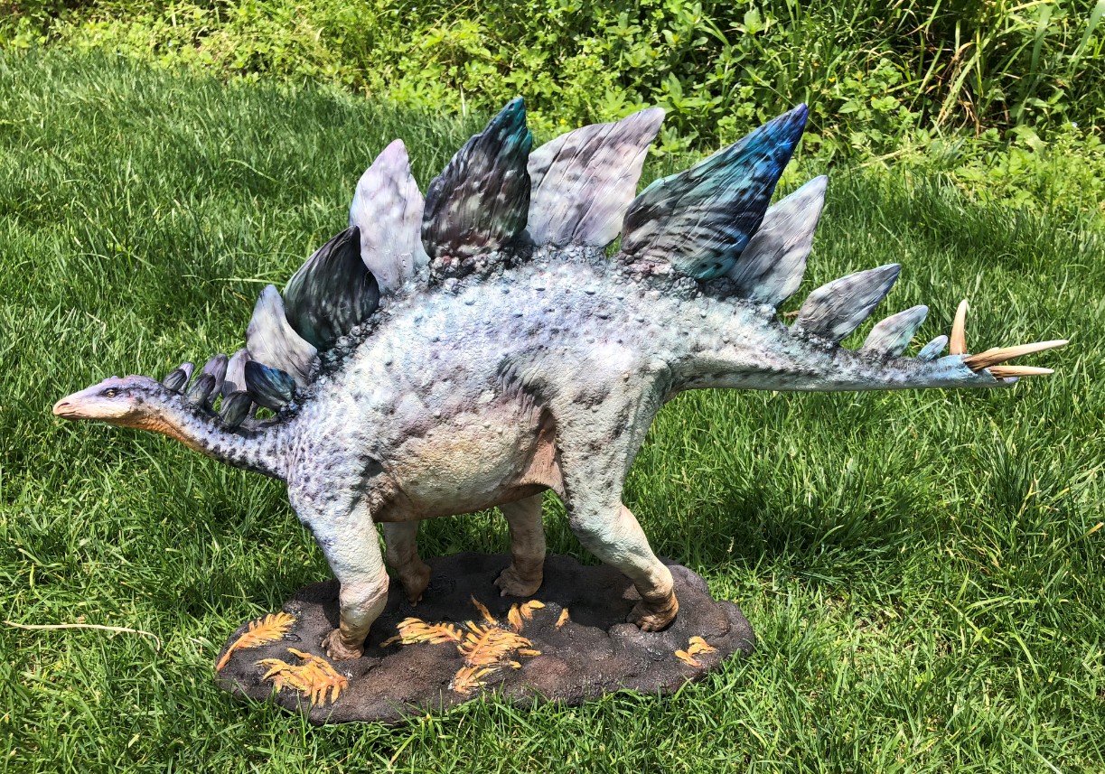 This 30" long Stegosaurus stenops was done around 2014 I think and I decided to just indulge myself and add various protective armaments that would seem appropriate on a large herbivore wandering through a world filled with packs of hungry carnivores. As far as I know, there's no fossil evidence for any of these dermal protections, except for the heavy scales on the throat.