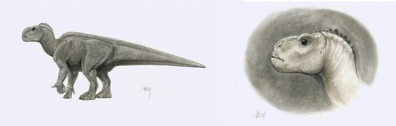 이구아노돈은 두 마리를 조형해볼까 싶다. 첫번째 베르니사르텐시스(bernissartensis)는 후경에서 가장 최신의 학문적 증거 자료를 반영하지만 고전적인 캥거루 포즈를 취한 모습으로 그리고 전면에 위치한 두번째 만텔리사우루스(Mantellisaurus)는 선두에서 언덕 아래를 내려가는 모습으로. 당연하게도, 이것은 과거 내가 디자인 작업에 참여한 (디즈니 영화 다이노소어 등장한) 한쌍의 커플 알라다(Aladar)와 니라(Neera)를 연상시킬 것이다.