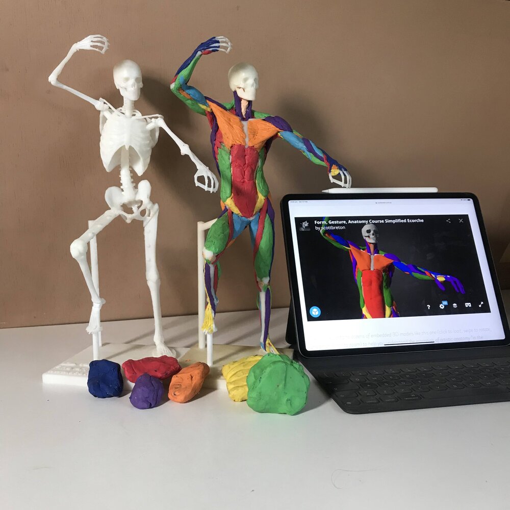 : Involve your hands and spatial sense as you model them onto the 3D printed skeleton - this is the most fun and intuitive way to grasp the way the forms relate to one another