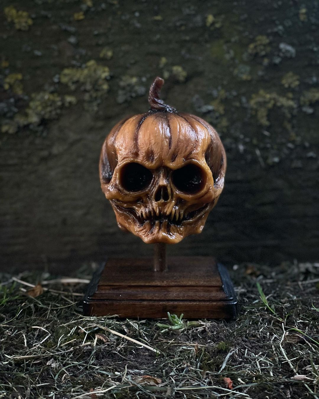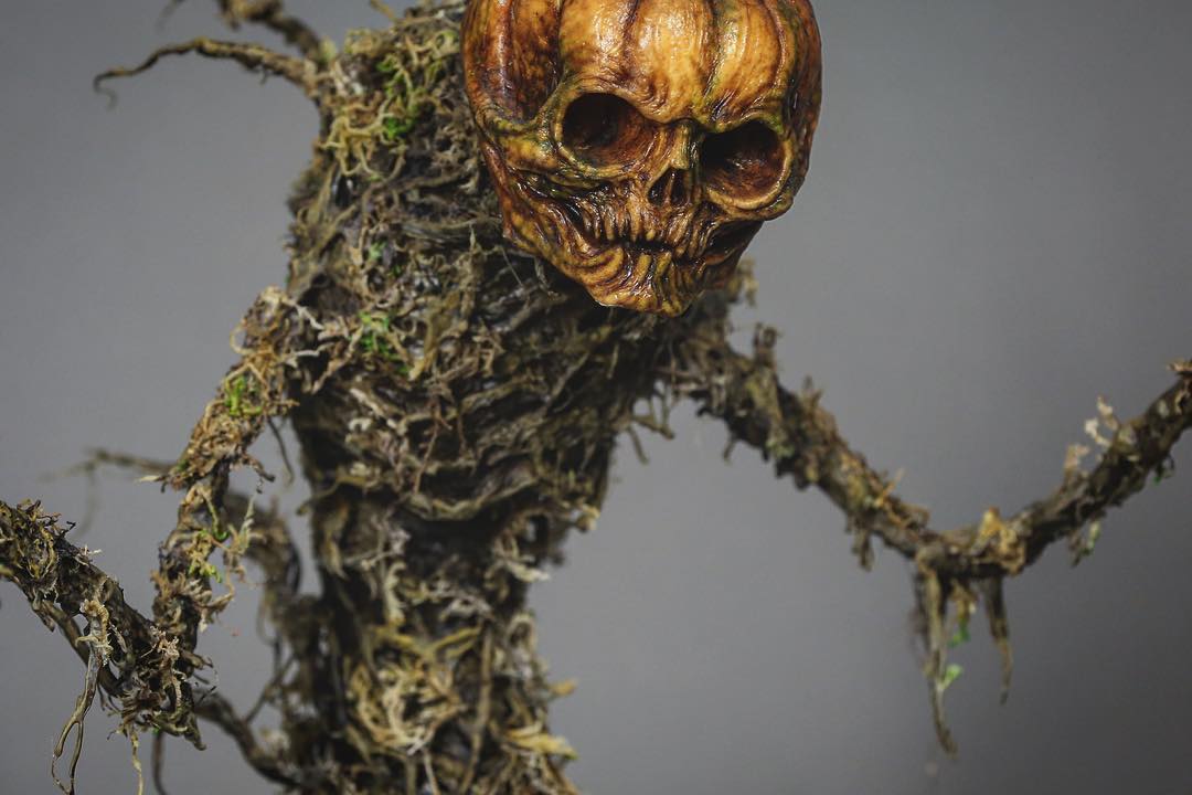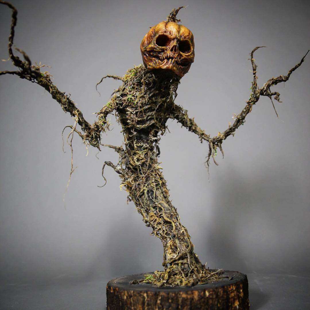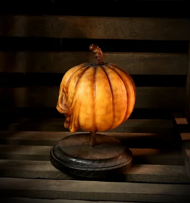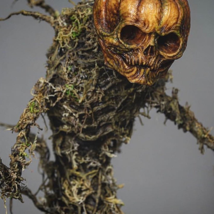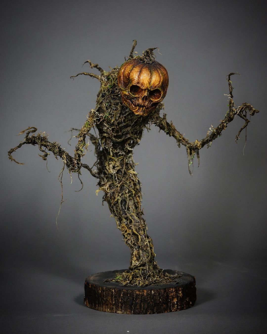 Using castings from our original mini pumpkin mold, Oswald comes to life in these one of a kind characters. His head is made from a dense urethane, his body is vines, wires, and moss. This character is not out of a mold, slight variances will occur. He is about 16 inches tall on his 1.5 inch tall base. His wingspan is around 17 inches.