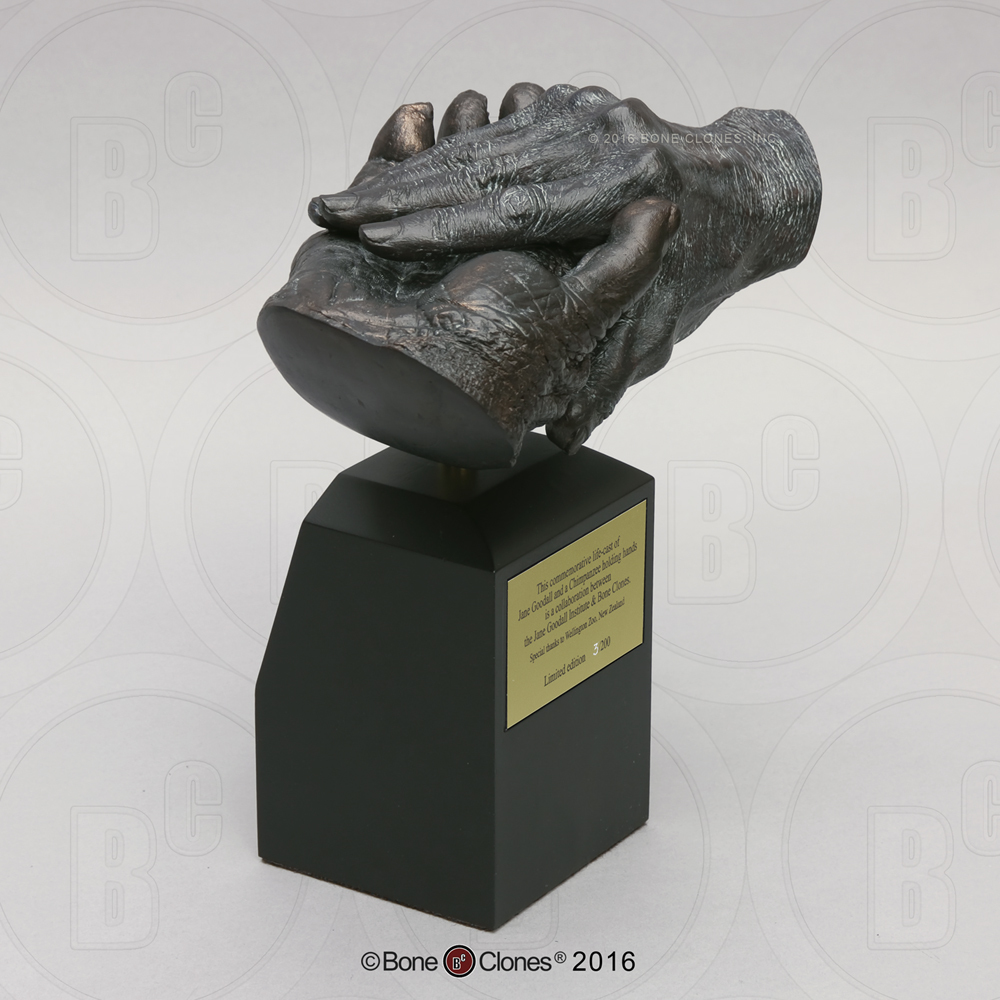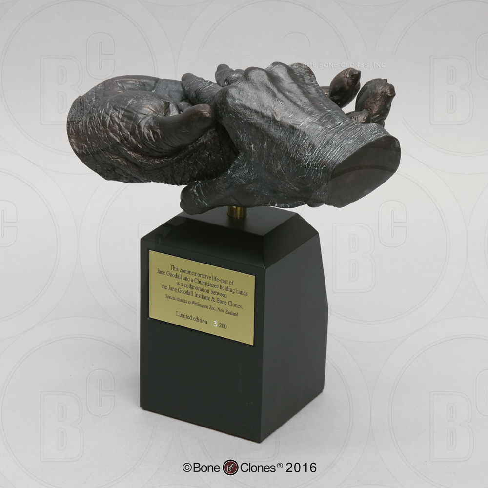 Jane Goodall and Chimpanzee "Hand-in-Hand" Life Cast on Base