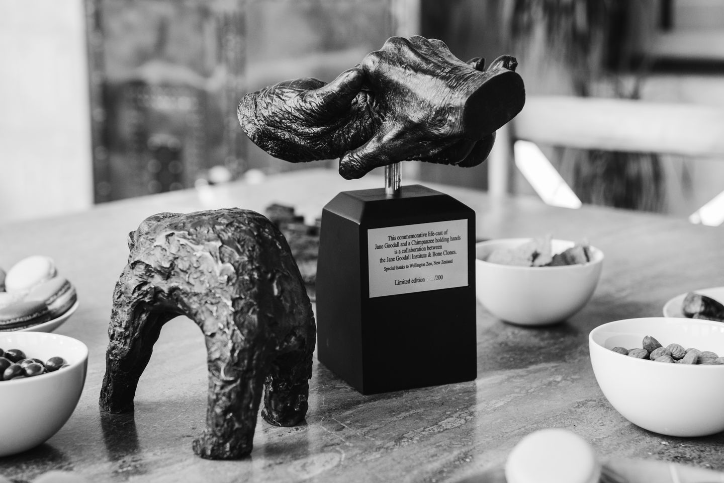 Last year our friend Gino Acevedo, who is a creative art director and visual effects artist best known for his work on the Lord of the Rings films, approached us with a proposal: would we be interested in producing a life-cast statue of Jane Goodall and a chimpanzee - specifically, her hand holding a chimpanzee's hand - to help raise money for her foundation?
