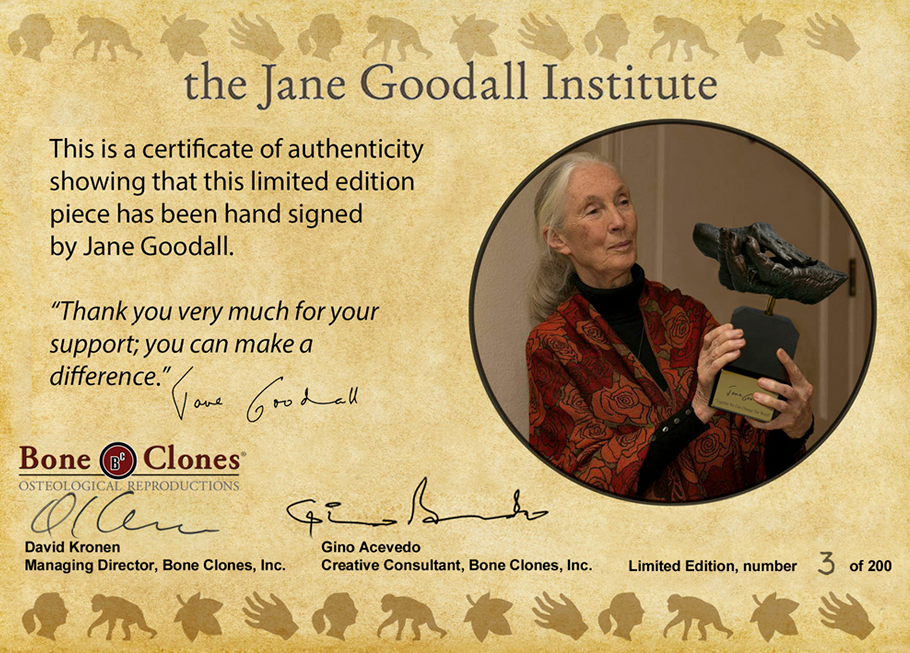 Life Cast on Base - Limited Edition of 200 personally hand-signed by Dr. Jane Goodall, and individually numbered.